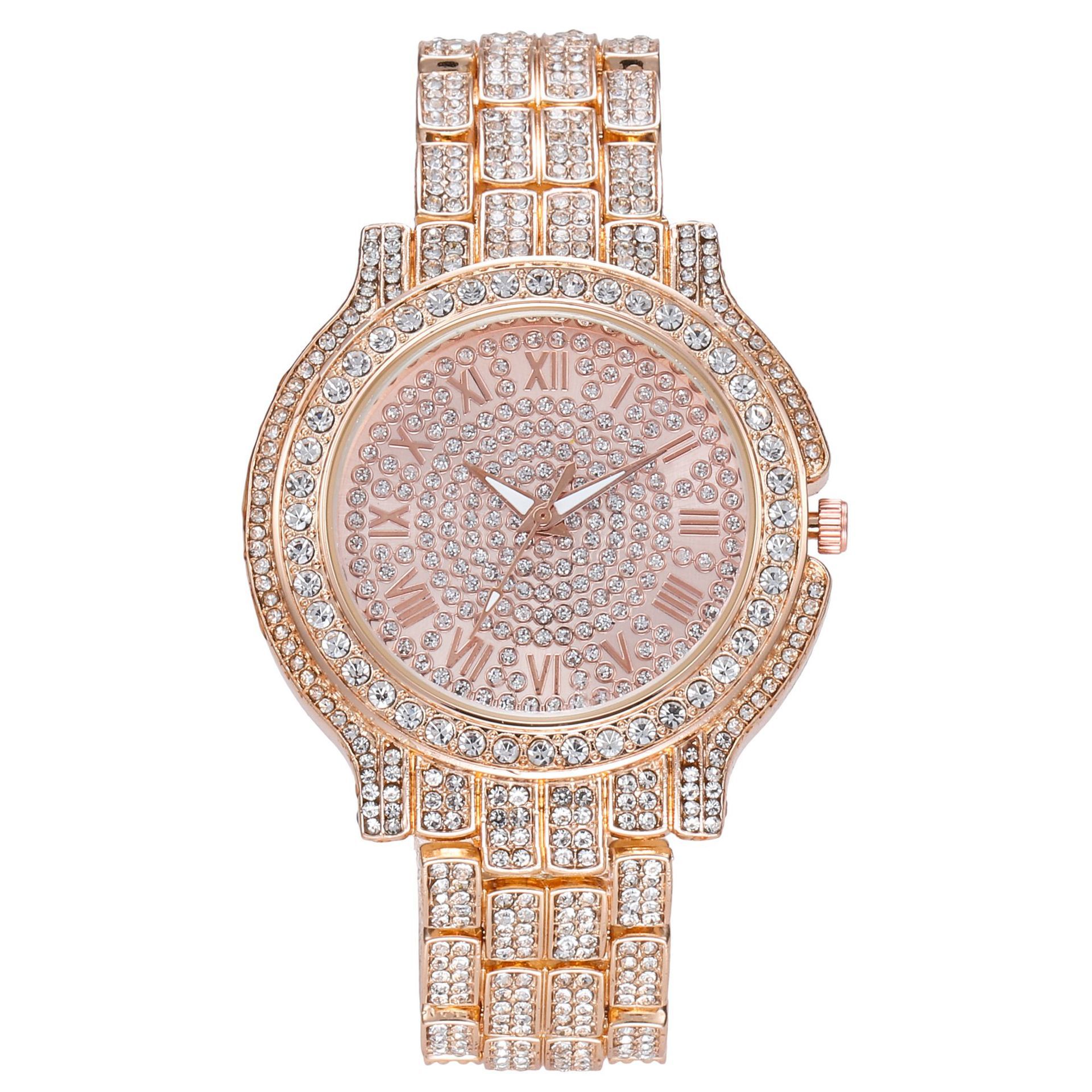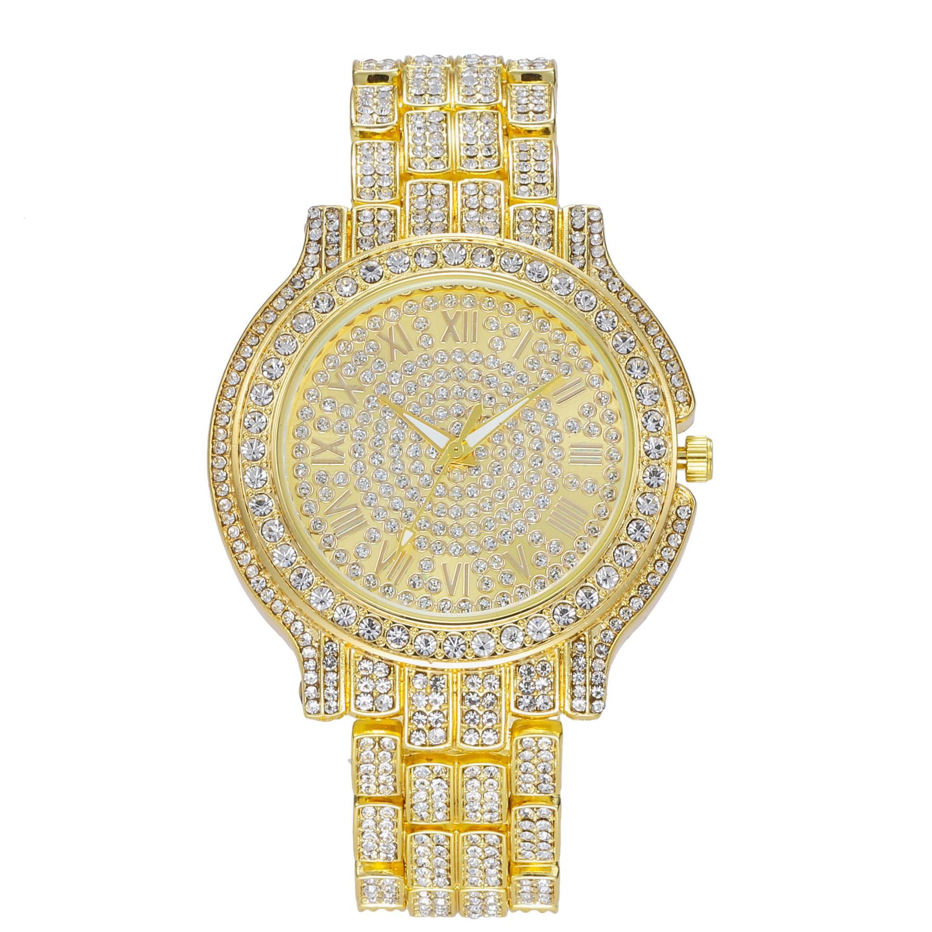 wish爆款新款时尚钢带镶钻潮男男士手表满天星水钻罗马数字石英表