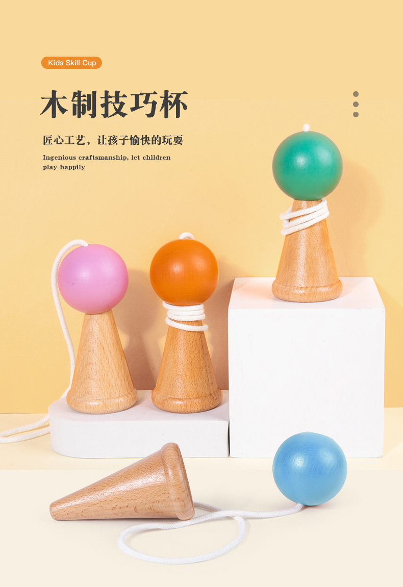 木制儿童版剑玉技巧球传统玩具技巧杯手眼协调感统训练抛接球玩具
