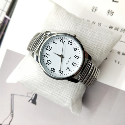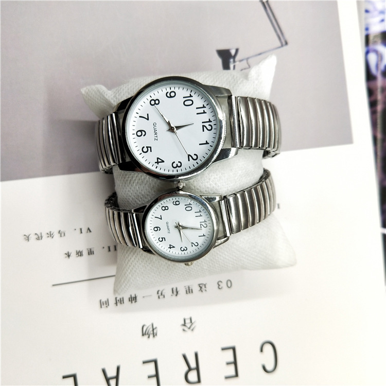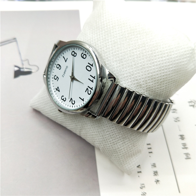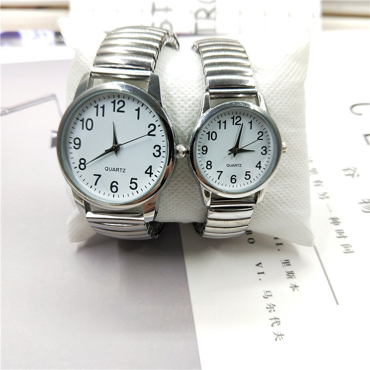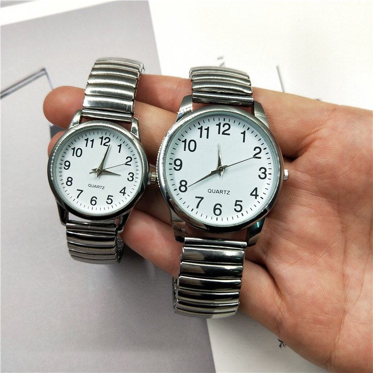 中老年人手表老年人表男表女大数字弹簧钢带情侣石英腕表批发