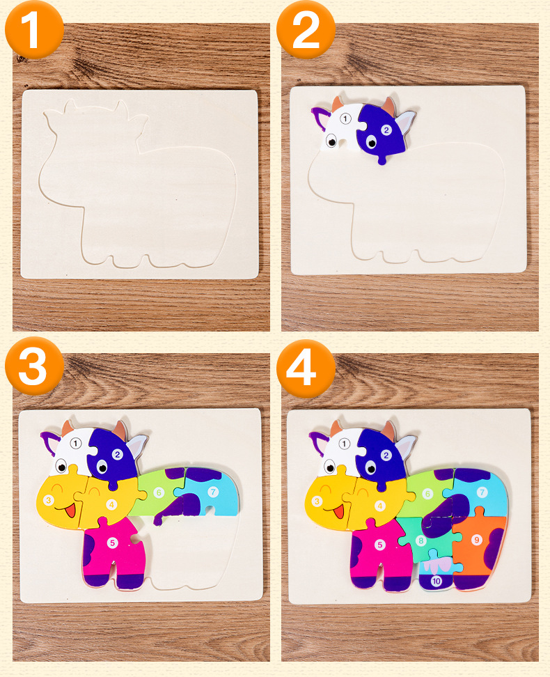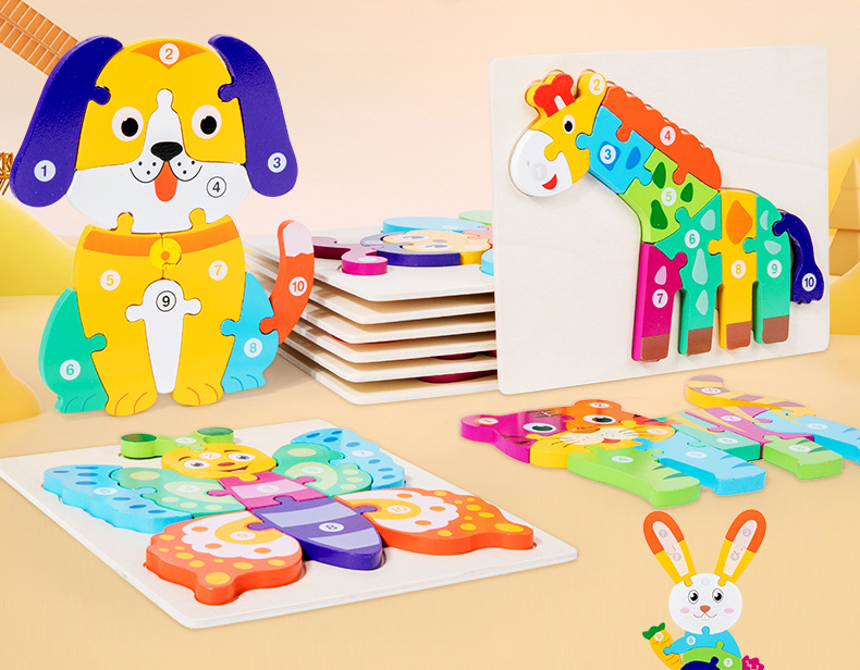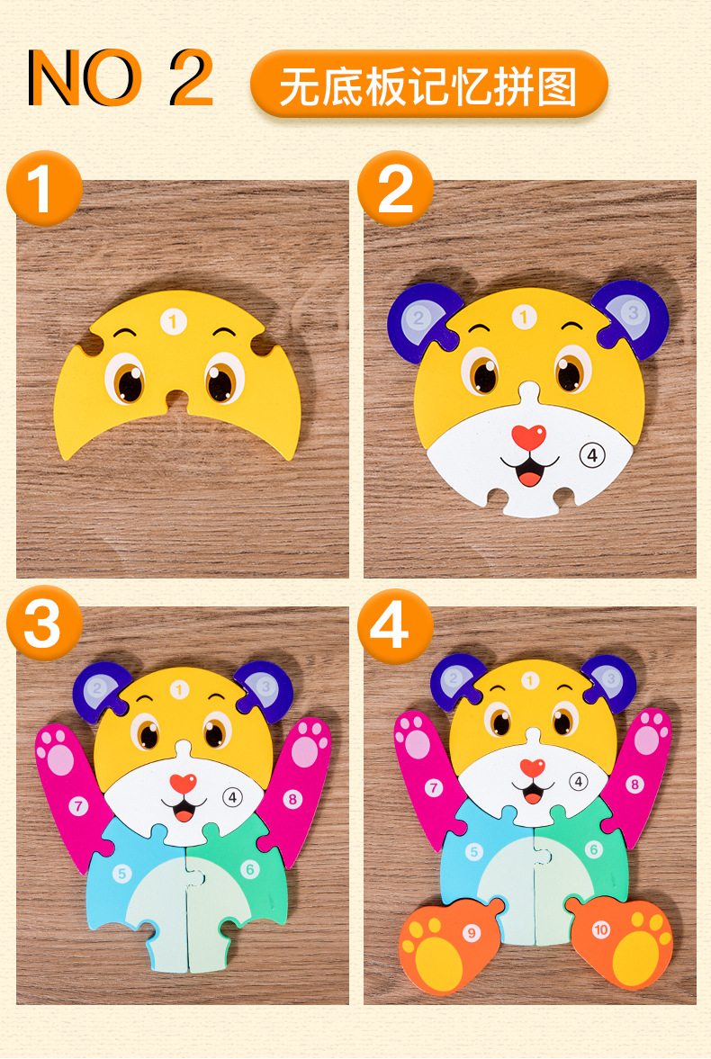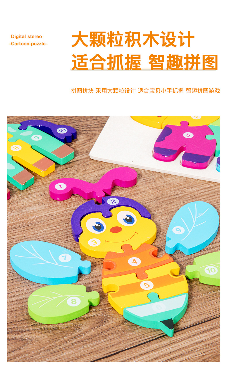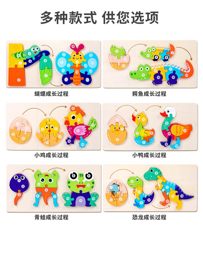 儿童木质动物成长立体拼图宝宝益智早教认知卡通拼图智力开发玩具