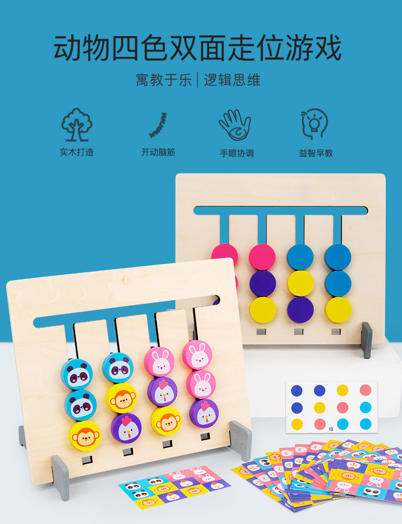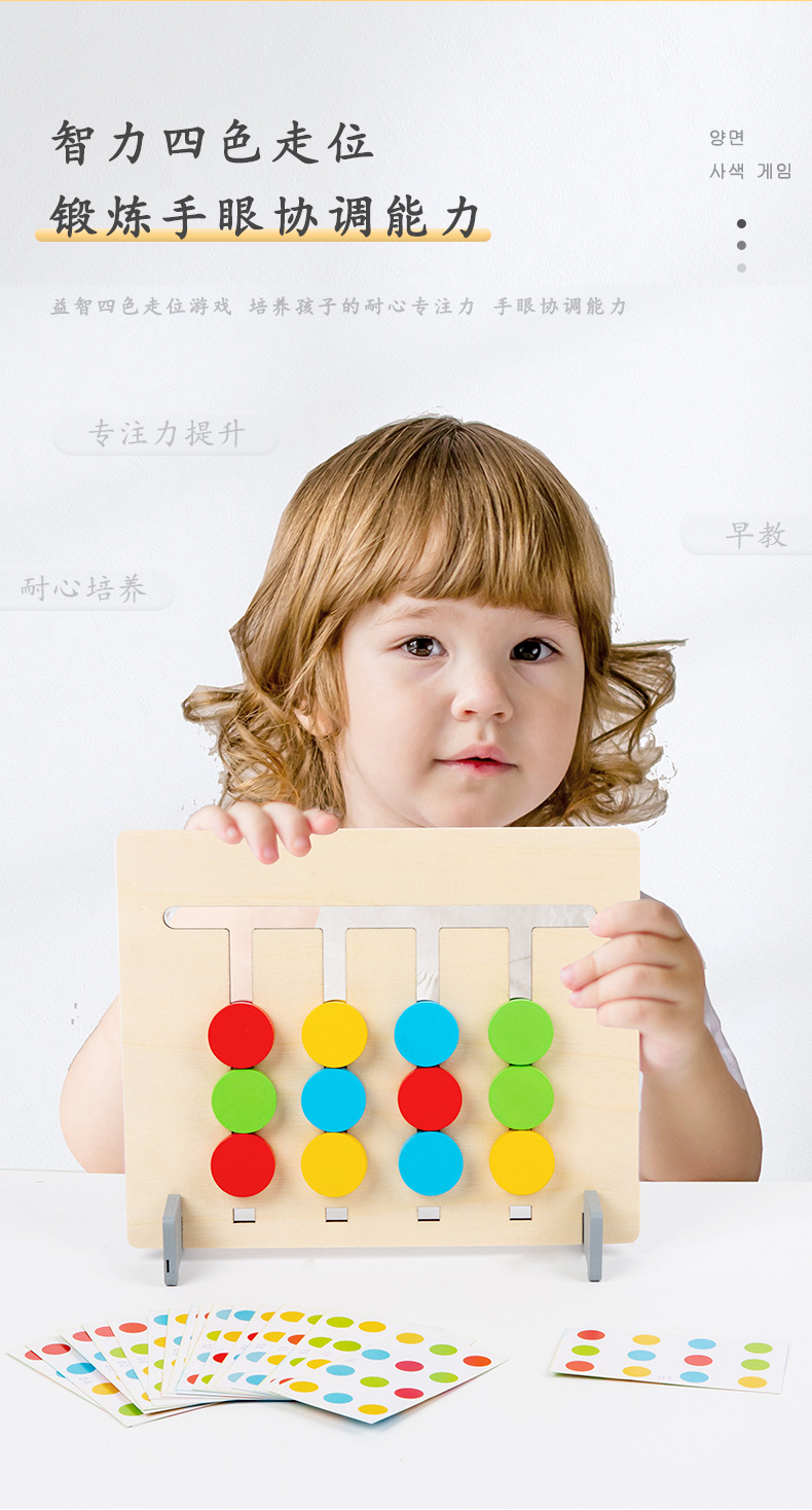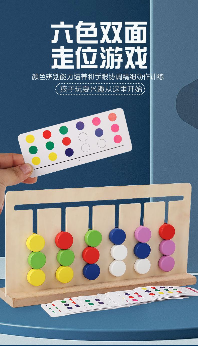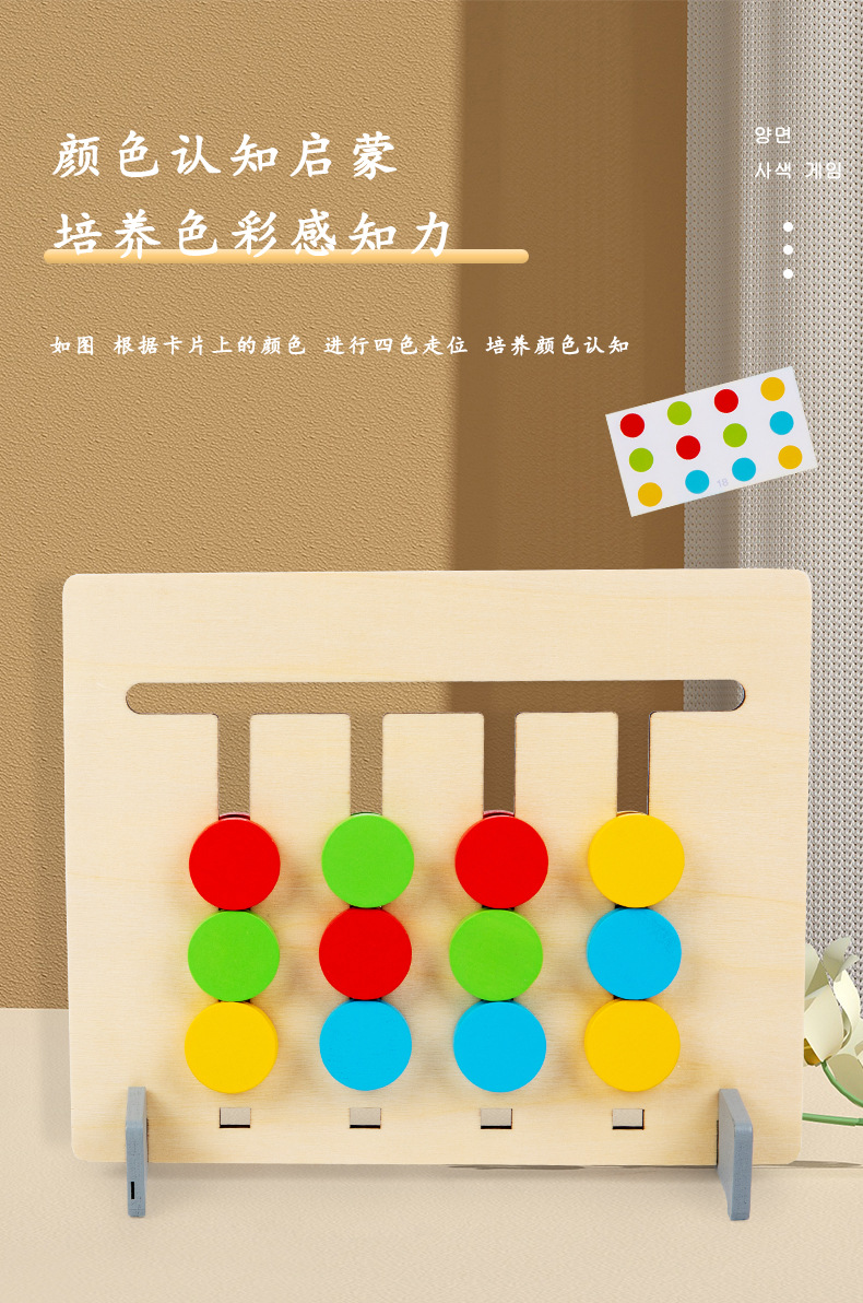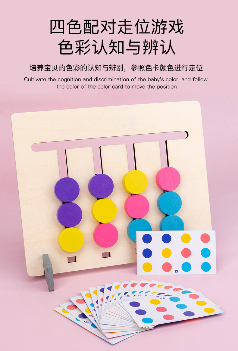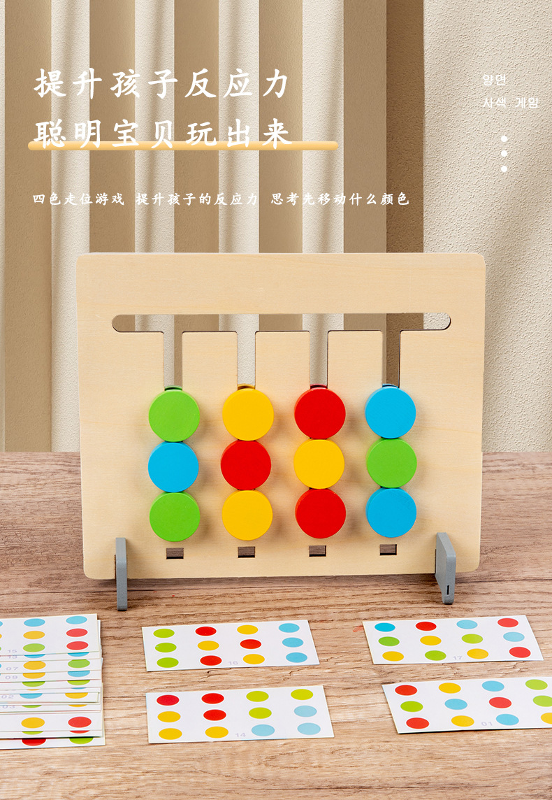 儿童早教木制四色游戏颜色分类走位游戏宝宝逻辑思维训练益智玩具