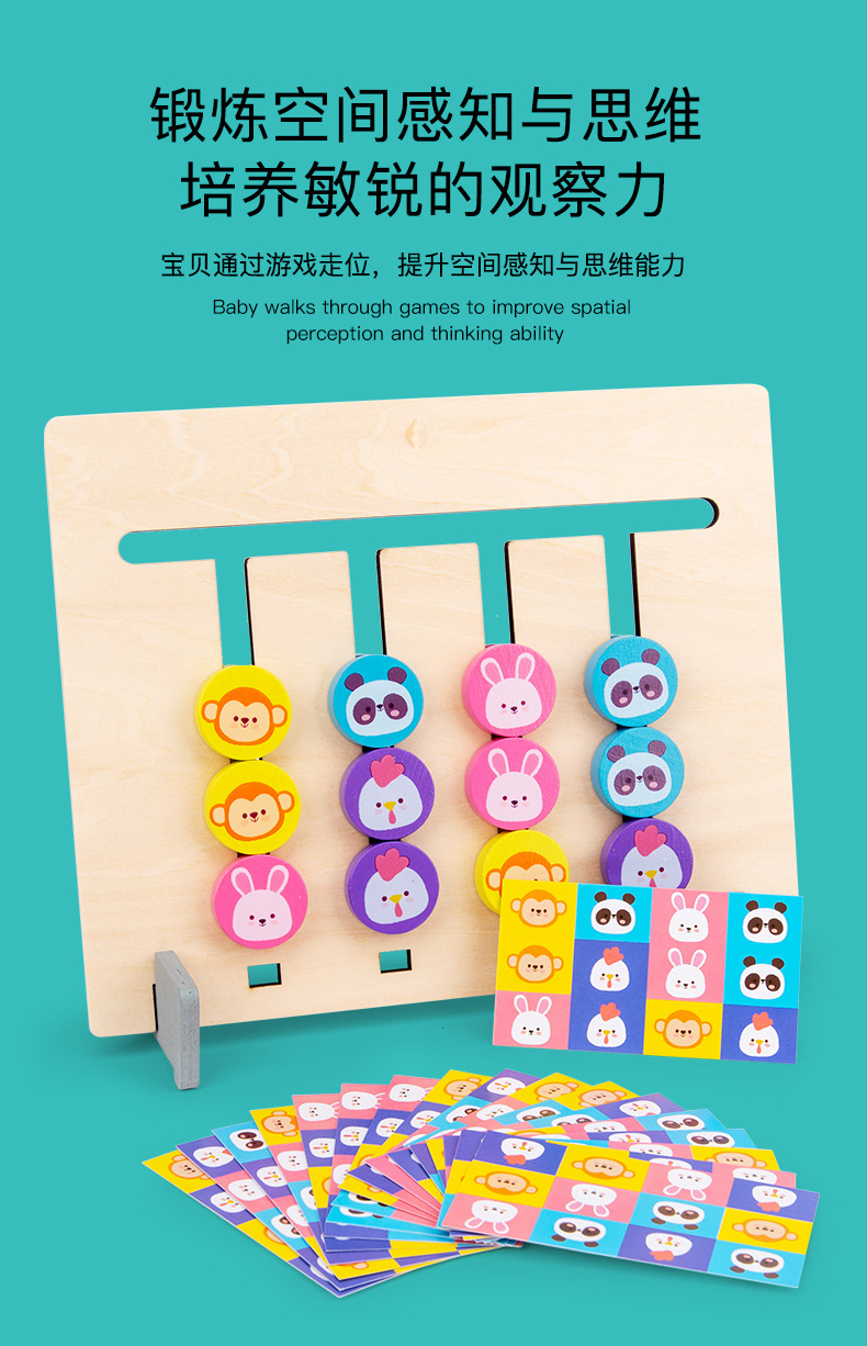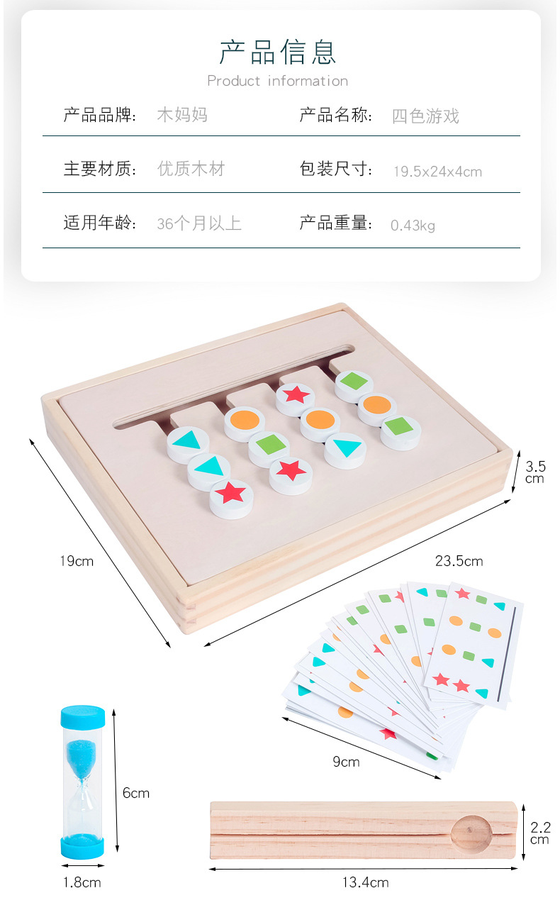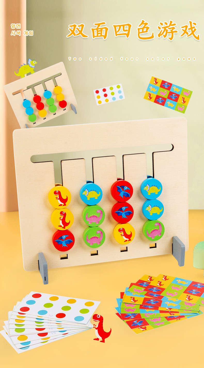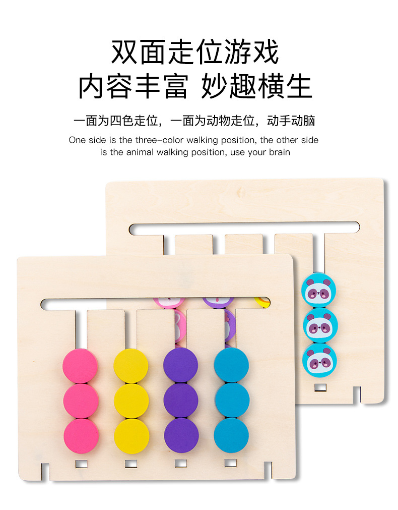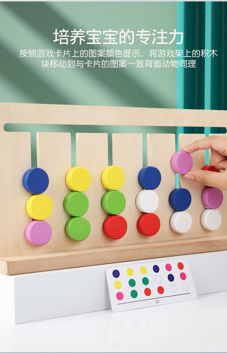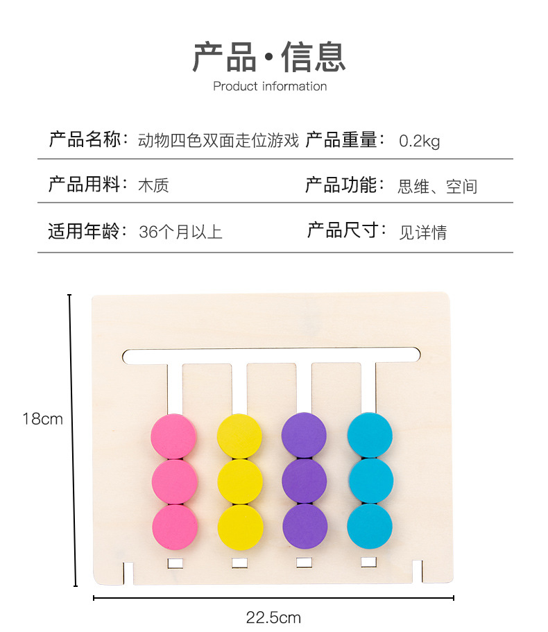 儿童早教木制四色游戏颜色分类走位游戏宝宝逻辑思维训练益智玩具