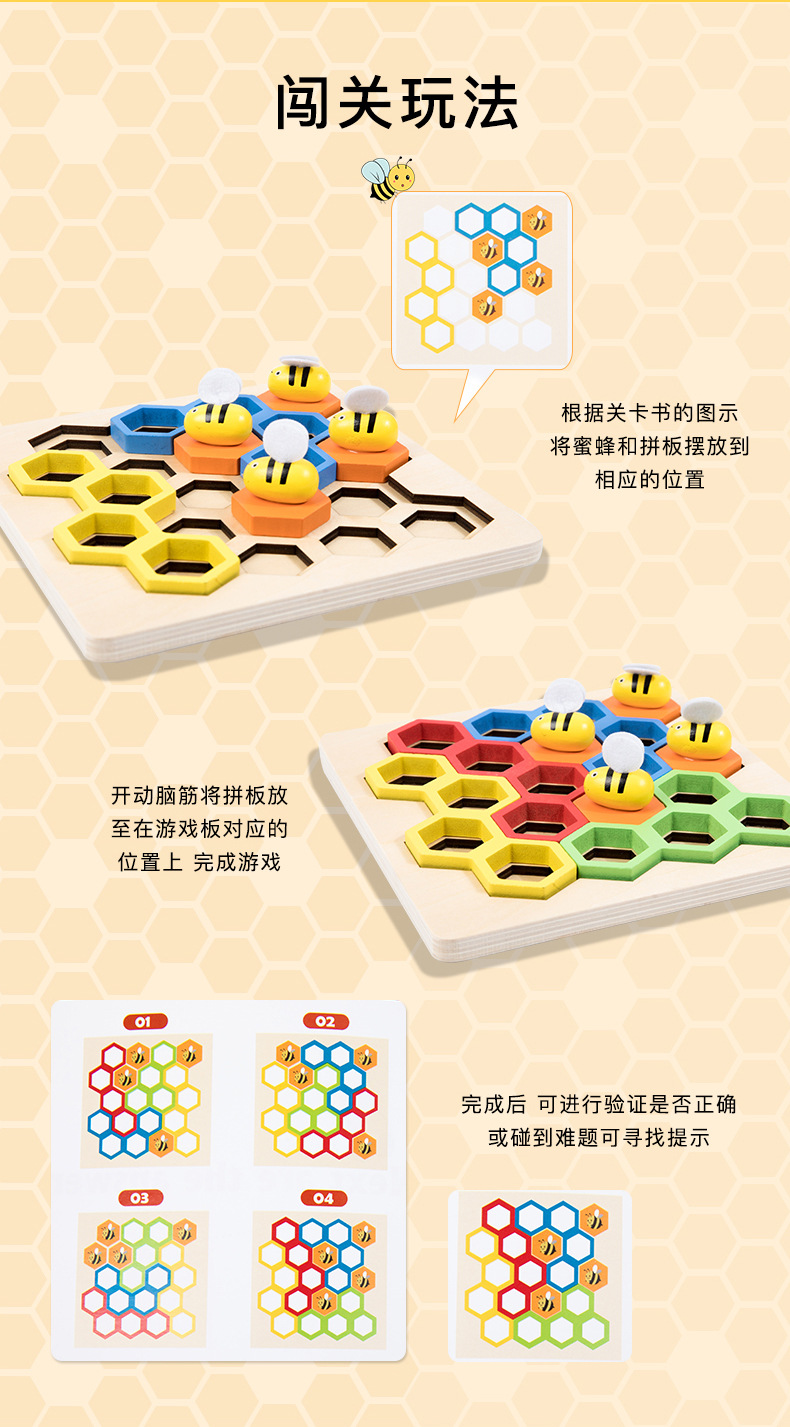 蜜蜂闯关游戏儿童早教逻辑思维专注力训练桌游幼儿园宝宝益智玩具