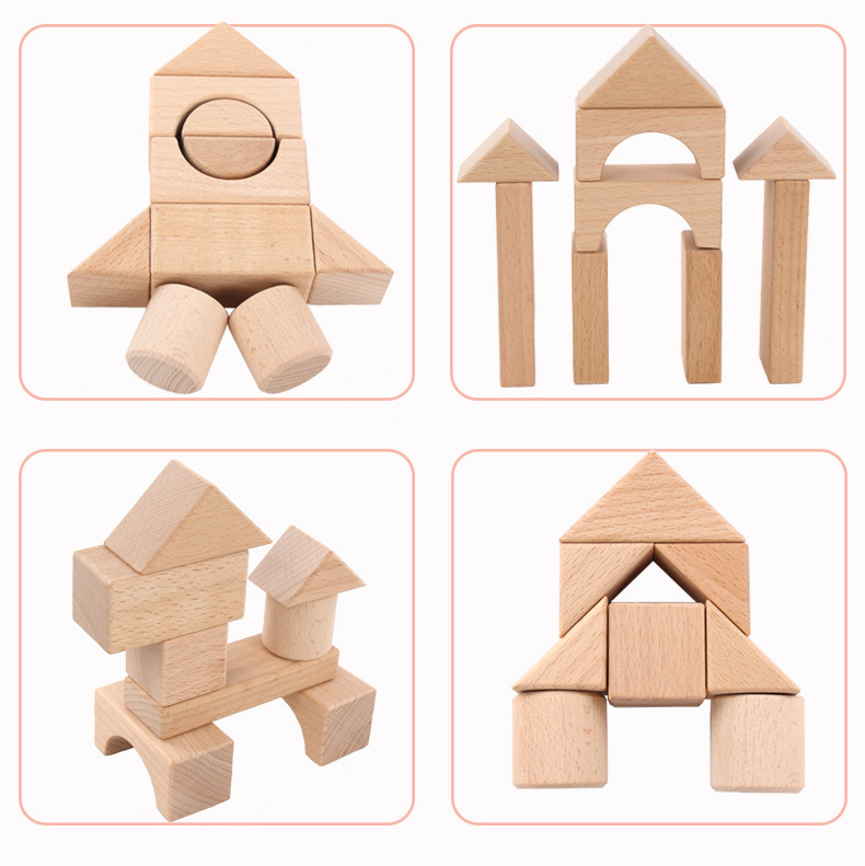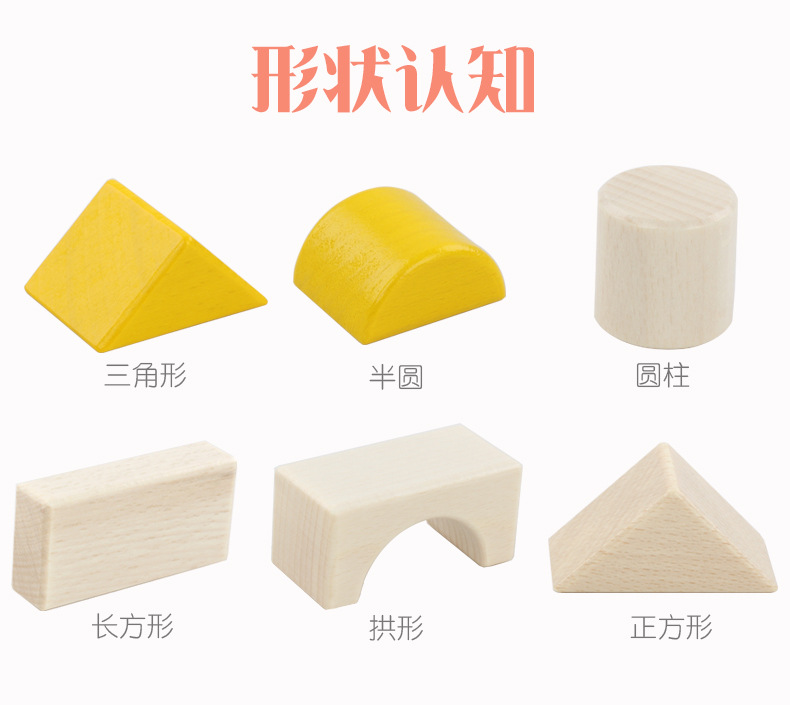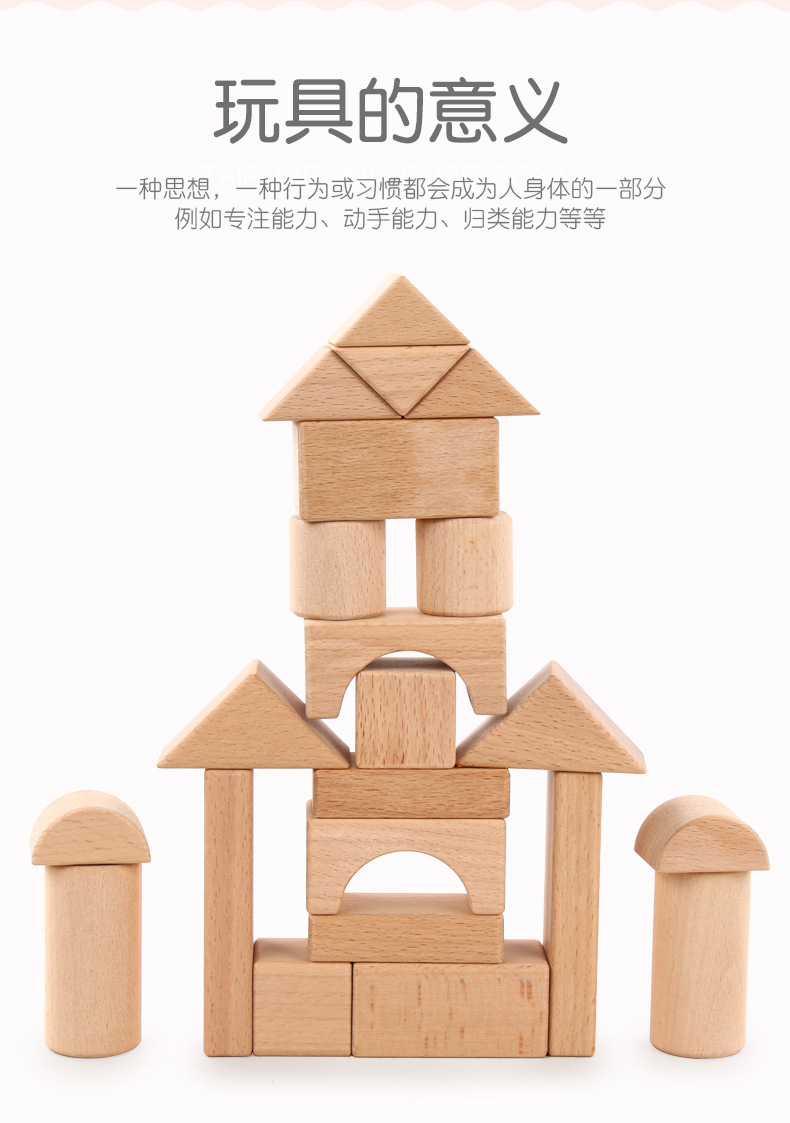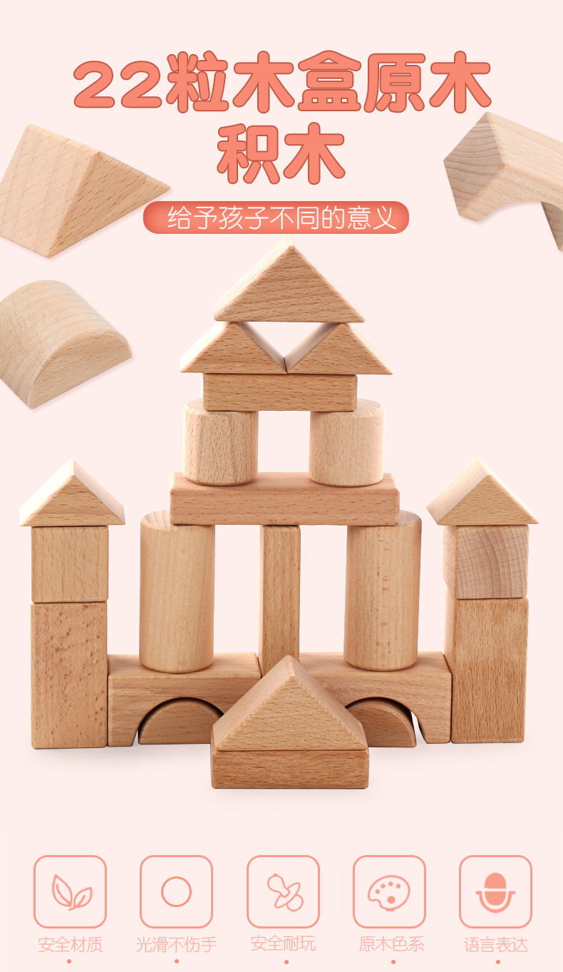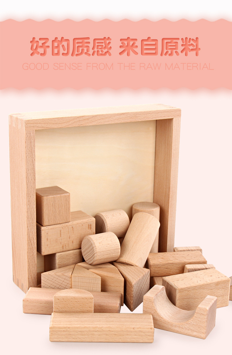 儿童木质积木宝宝早教形状认知木盒装大颗粒榉木彩色积木益智玩具