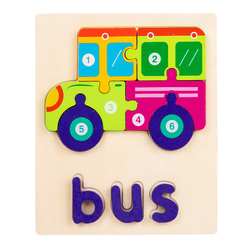 跨境木制元音字母拼图儿童早教英文字母单词认知立体拼图益智玩具