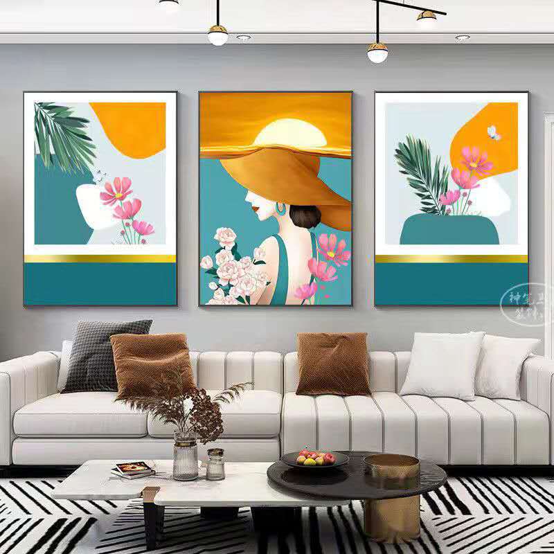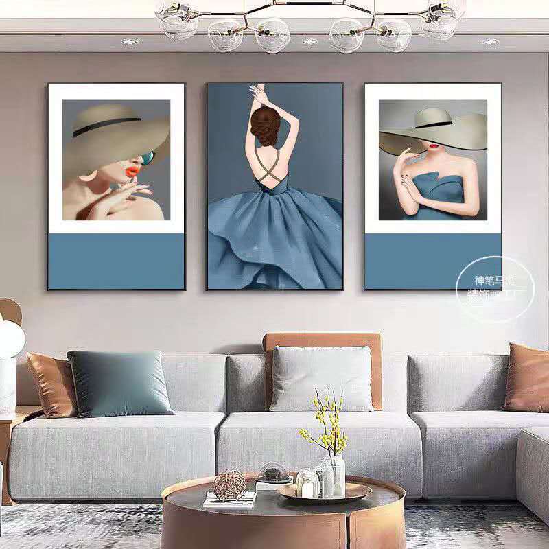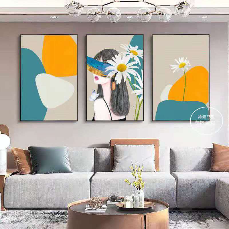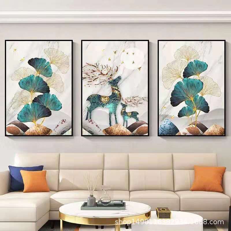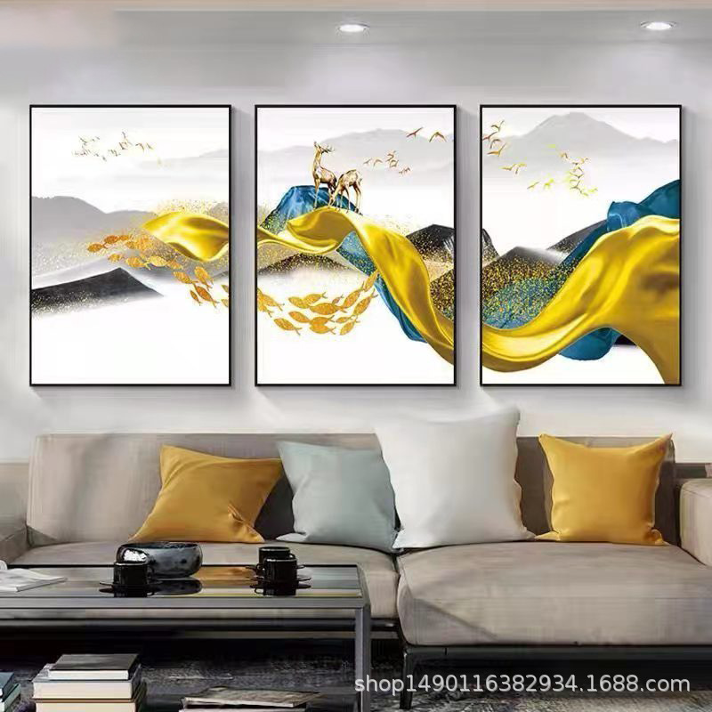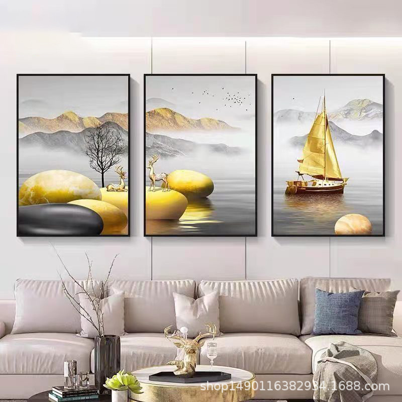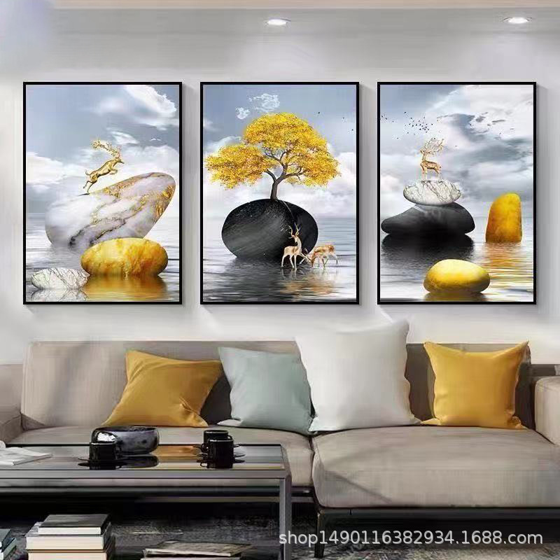石来运转客厅装饰画现代简约沙发背景墙上挂画大厅壁画轻奢三联画
