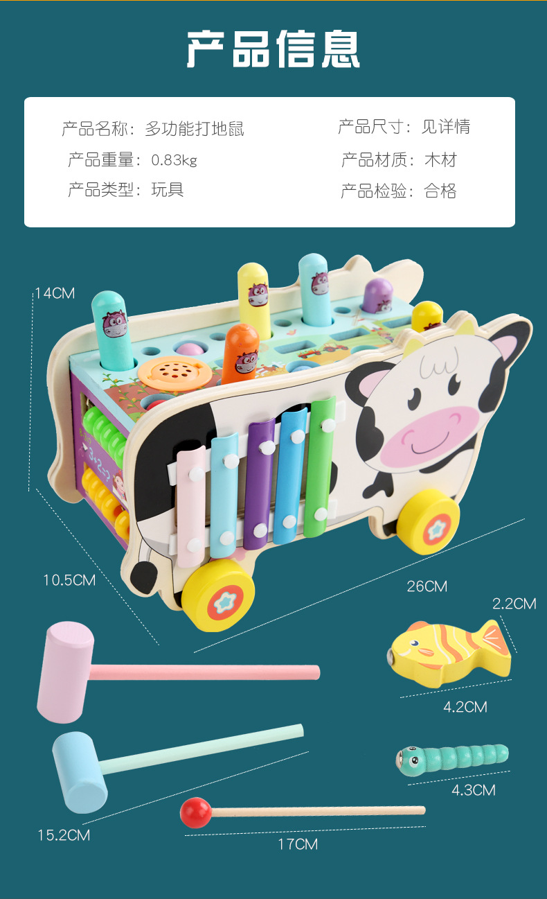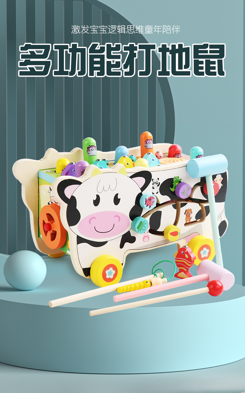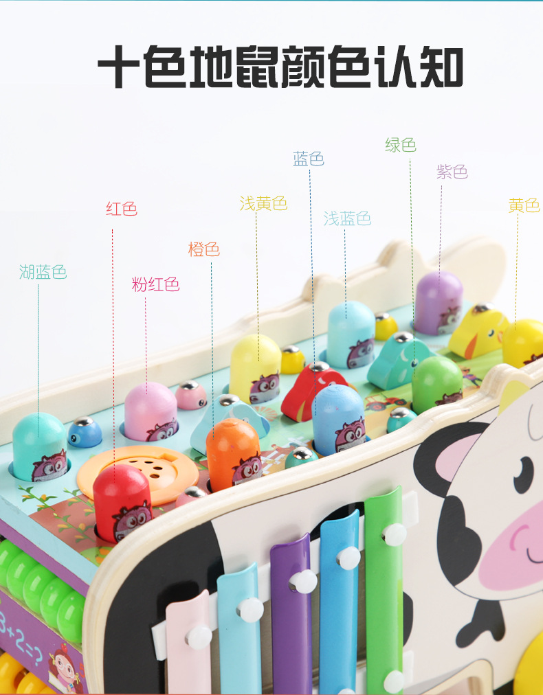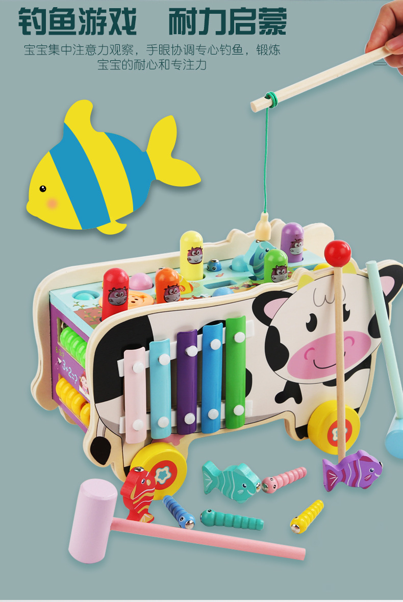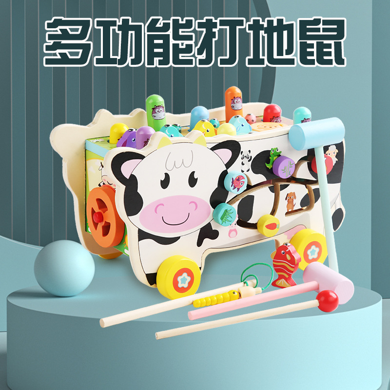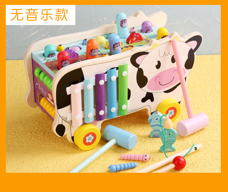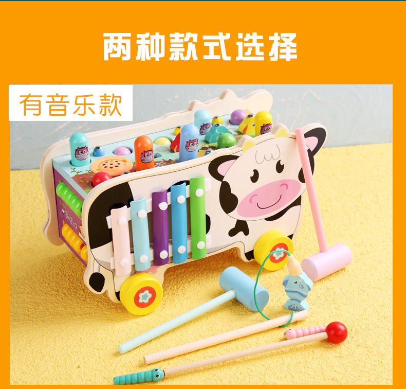 新款木制儿童早教奶牛音乐打地鼠敲琴钓鱼亲子互动打老鼠益智玩具