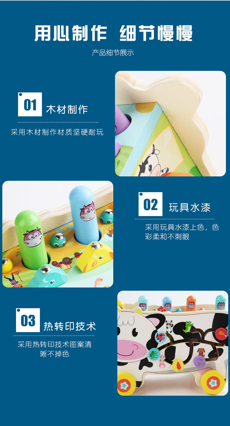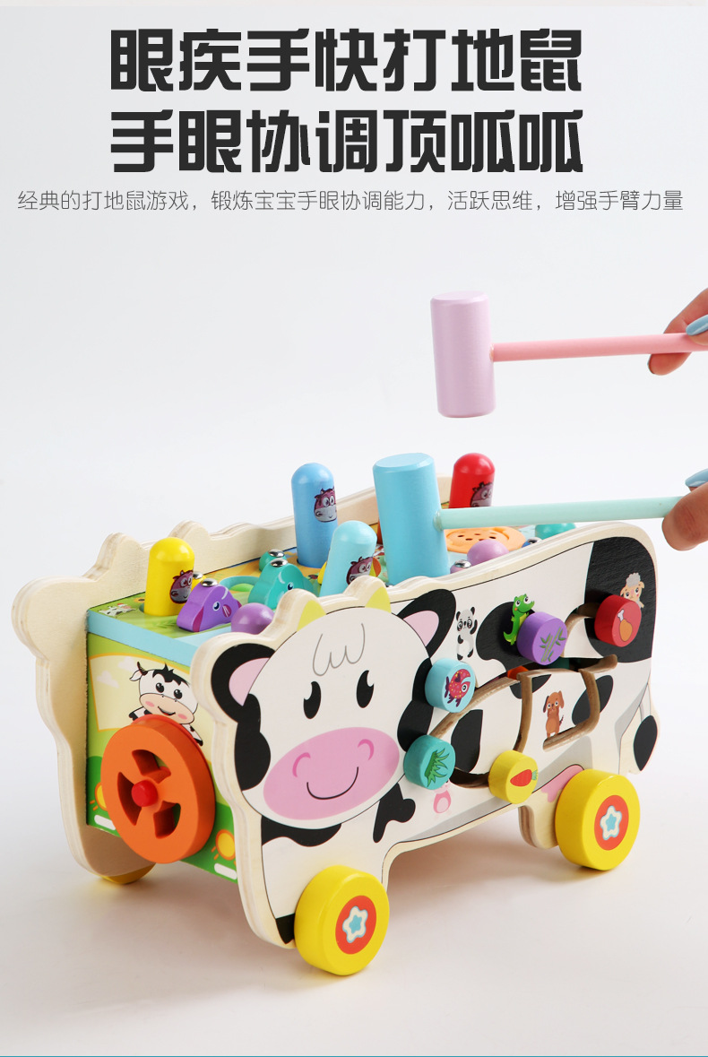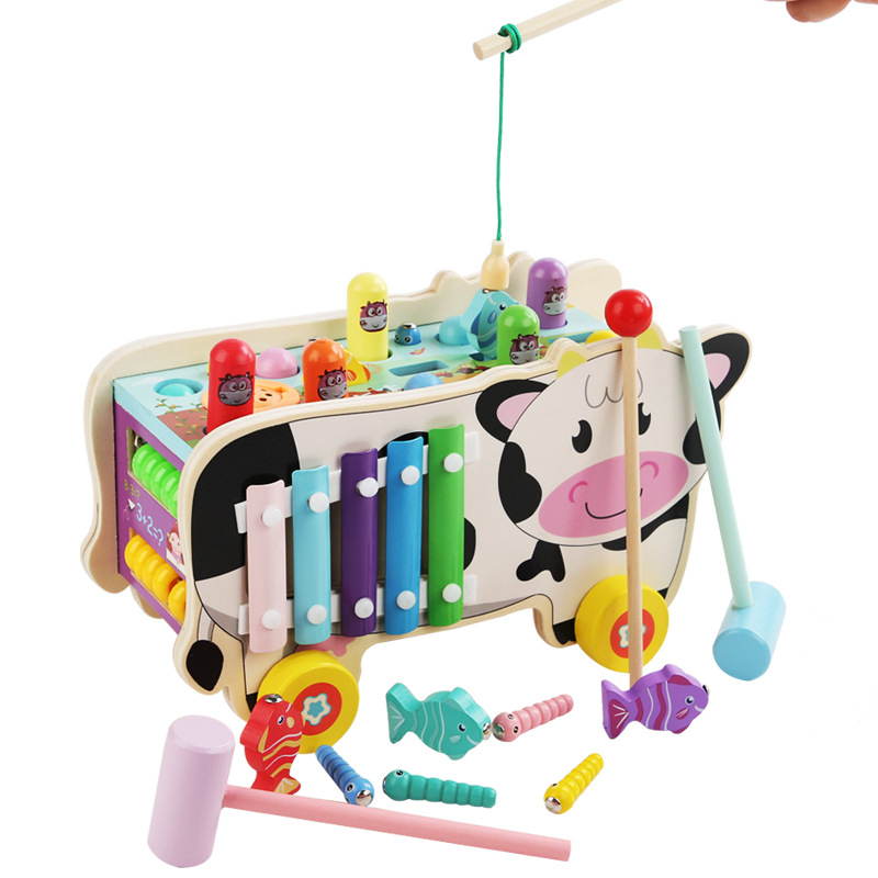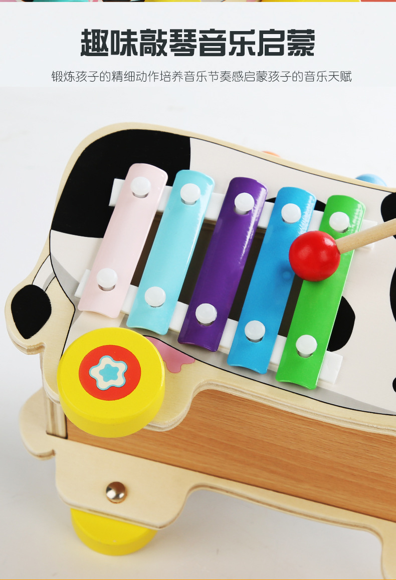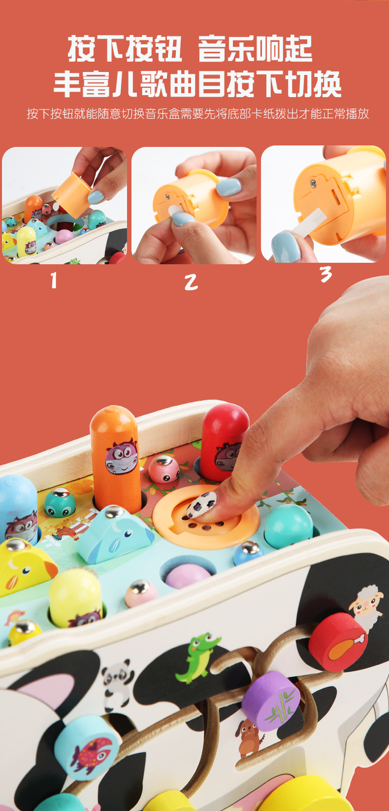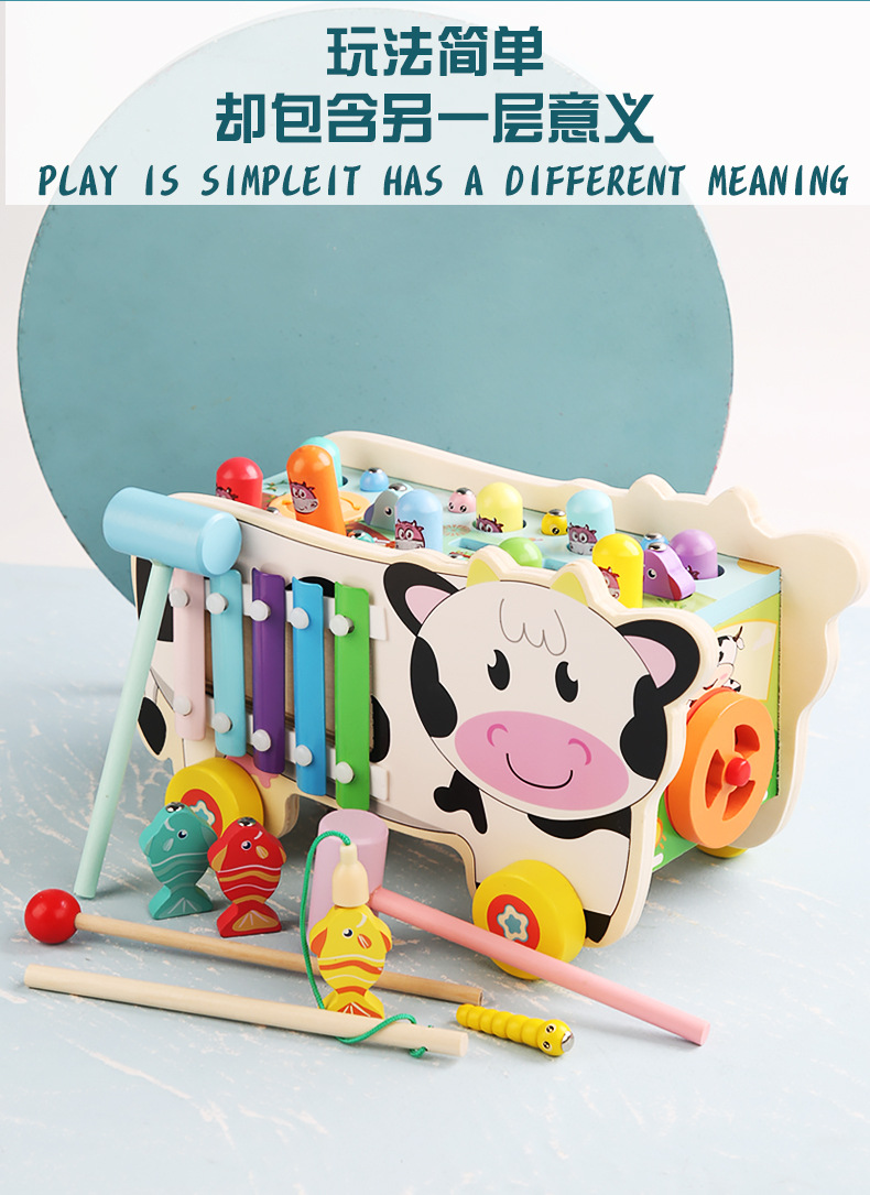 新款木制儿童早教奶牛音乐打地鼠敲琴钓鱼亲子互动打老鼠益智玩具