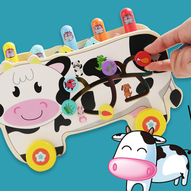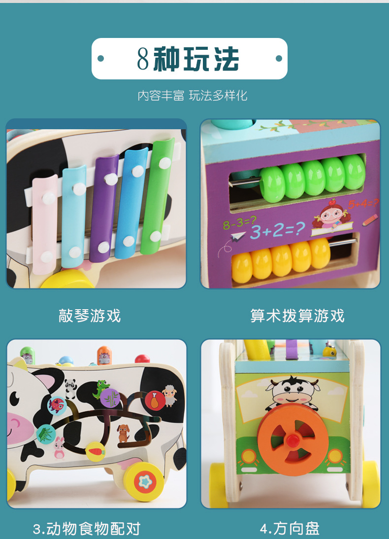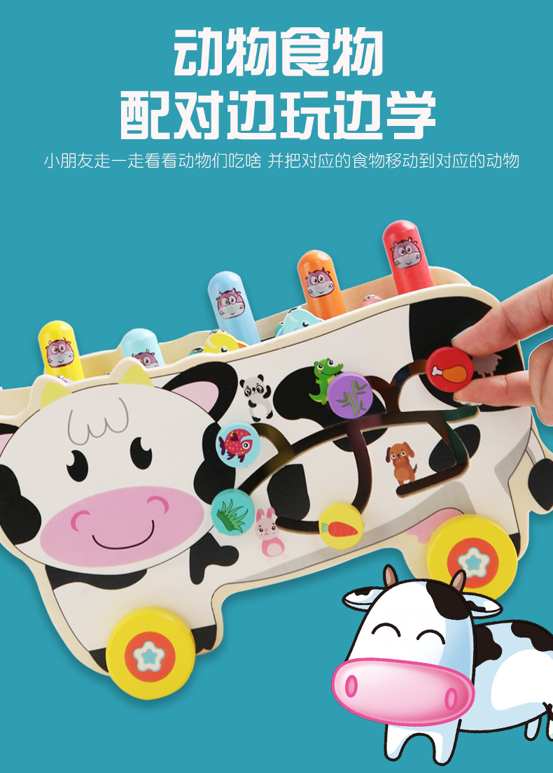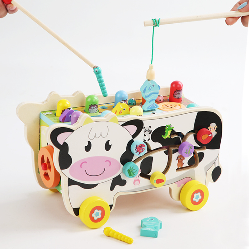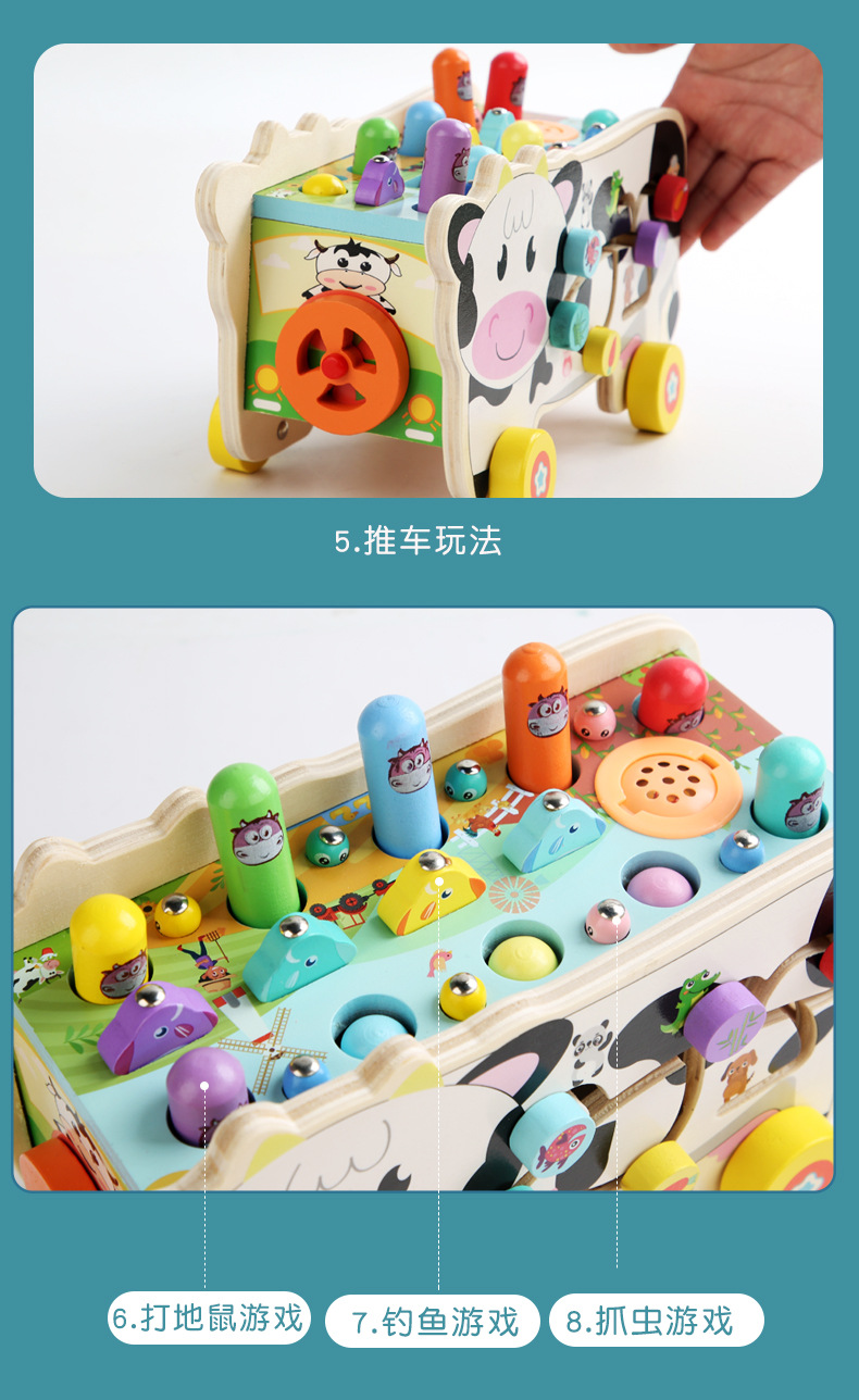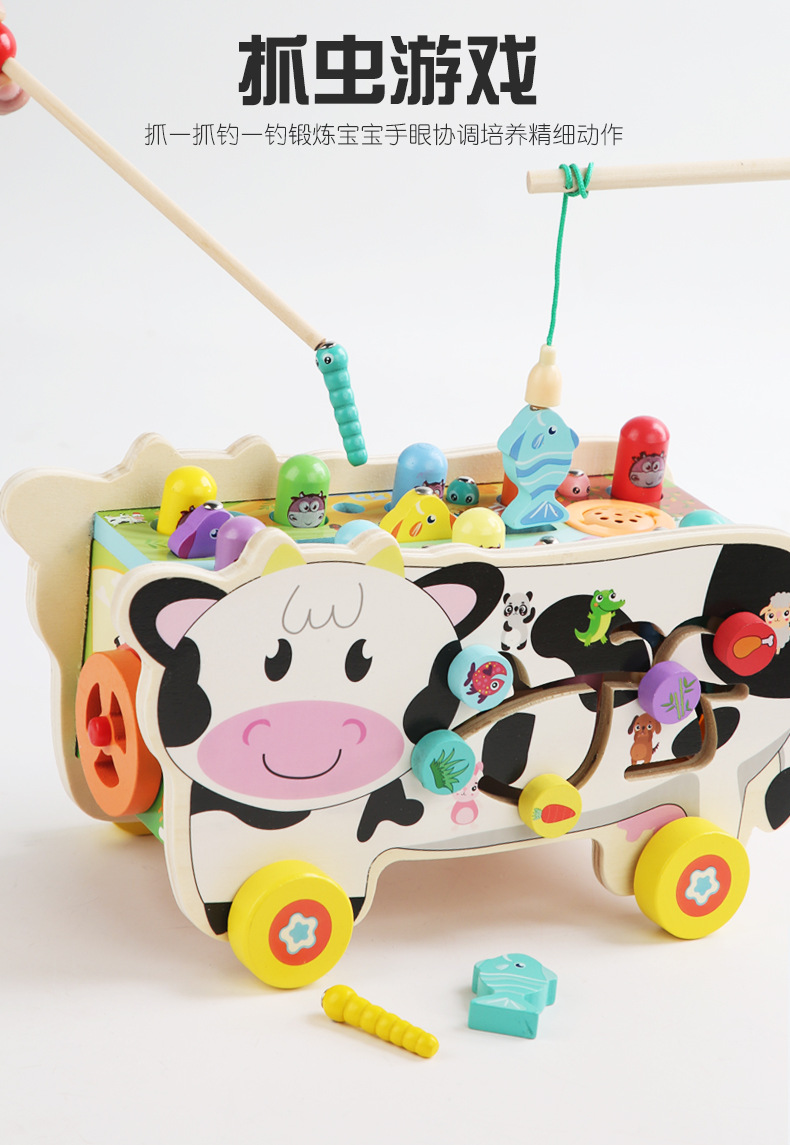 新款木制儿童早教奶牛音乐打地鼠敲琴钓鱼亲子互动打老鼠益智玩具