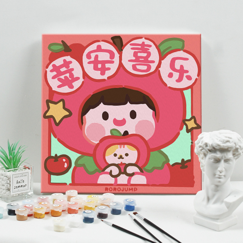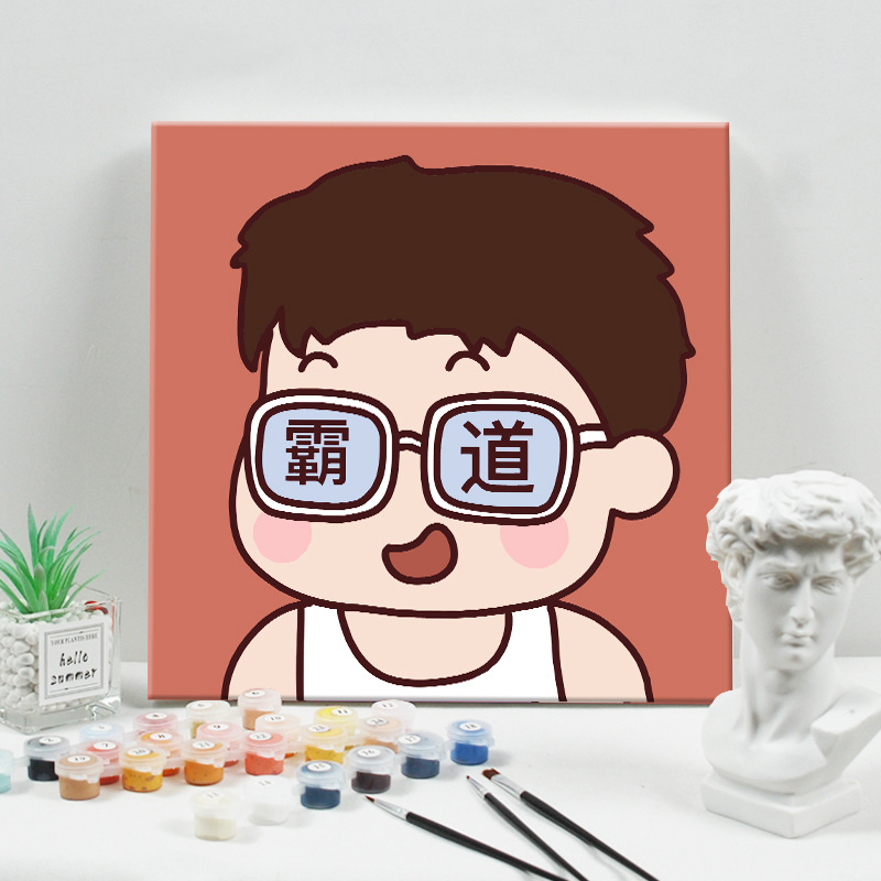 数字油画diy手绘填色丙烯解压绘画只想搞钱系列文字卡通油画批发