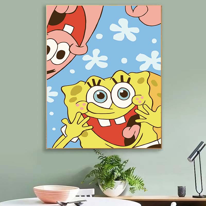 海绵宝宝diy数字油画可爱手绘画手工减压油画小富婆装饰画批发