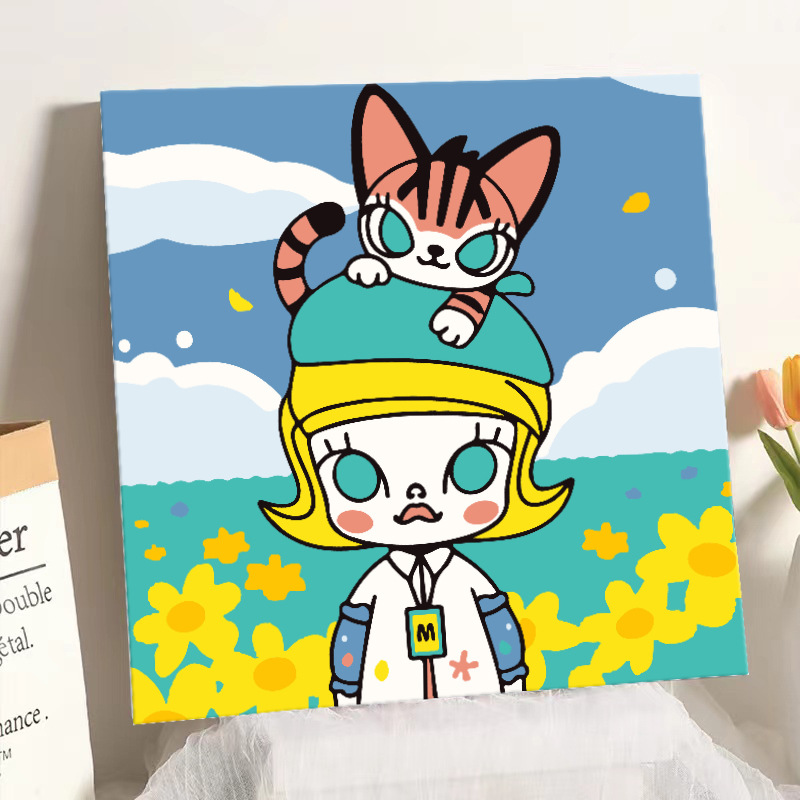 diy数字油画儿童卡通丙烯画暑期涂鸦手工填色油彩画装饰挂画批发