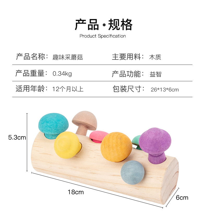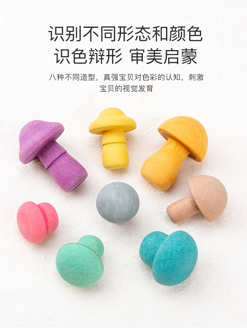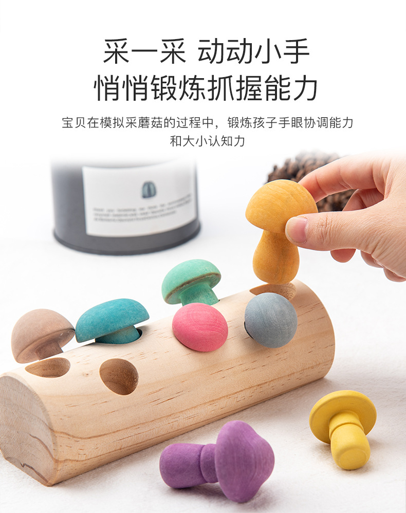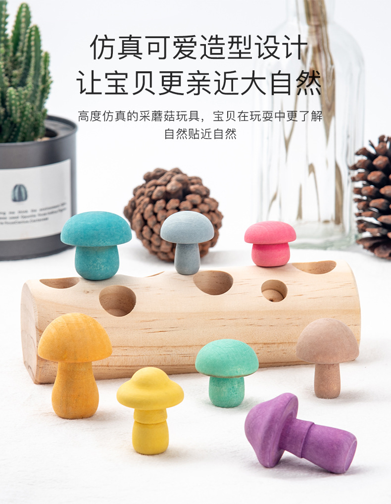 儿童木制仿真采蘑菇游戏马卡龙色宝宝趣味早教专注力训练拼插玩具