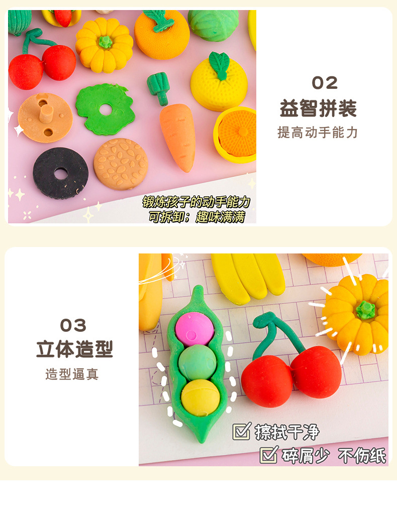 益智可拆卸卡通橡皮擦幼儿园礼品奖励橡皮多款混可爱文具礼物橡皮