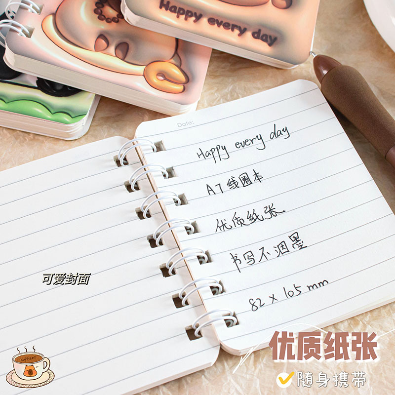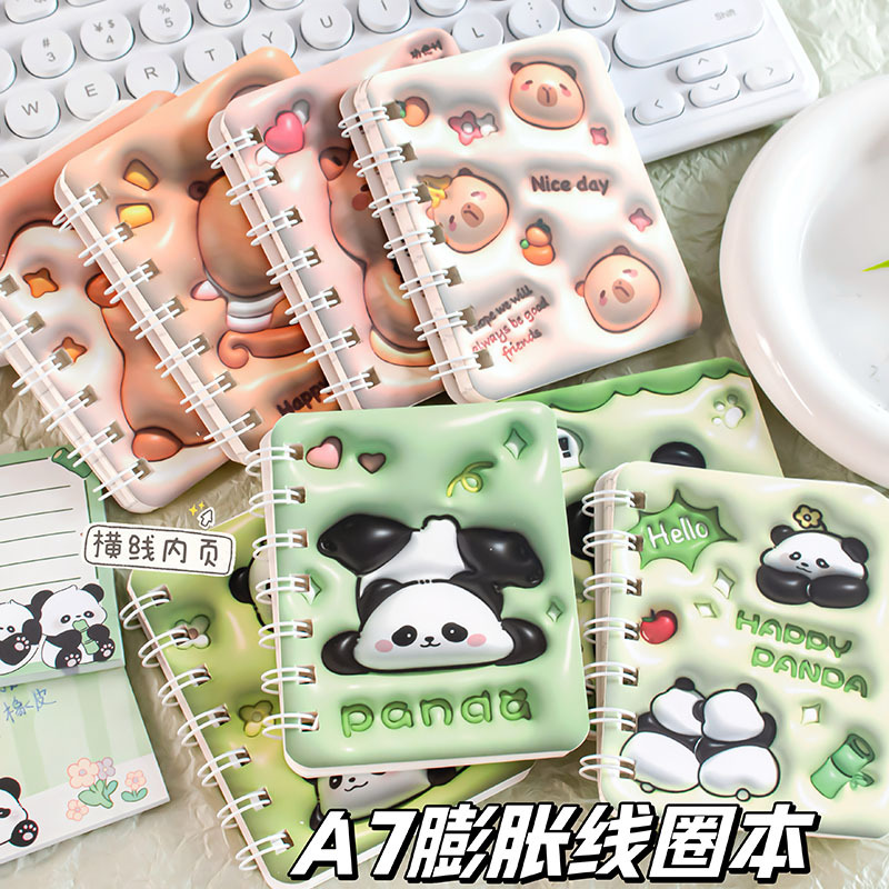 A7膨胀线圈本可爱熊猫卡皮巴拉高颜值少女心横线记事口袋便携本子