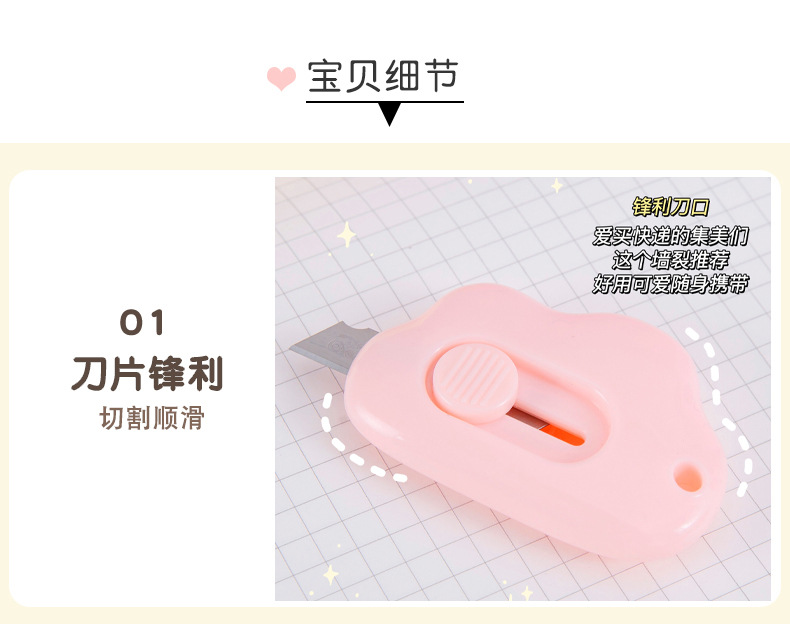 云朵卡通小号美工刀便捷小学生diy手工裁纸刀拆快递包裹小型小刀