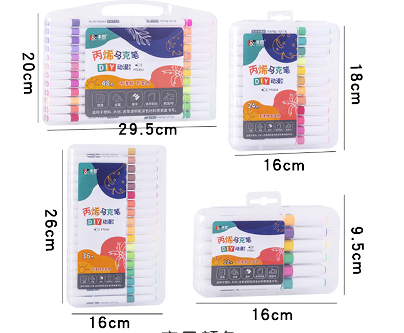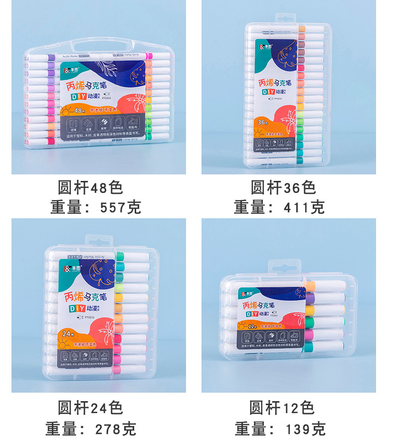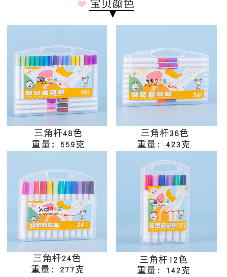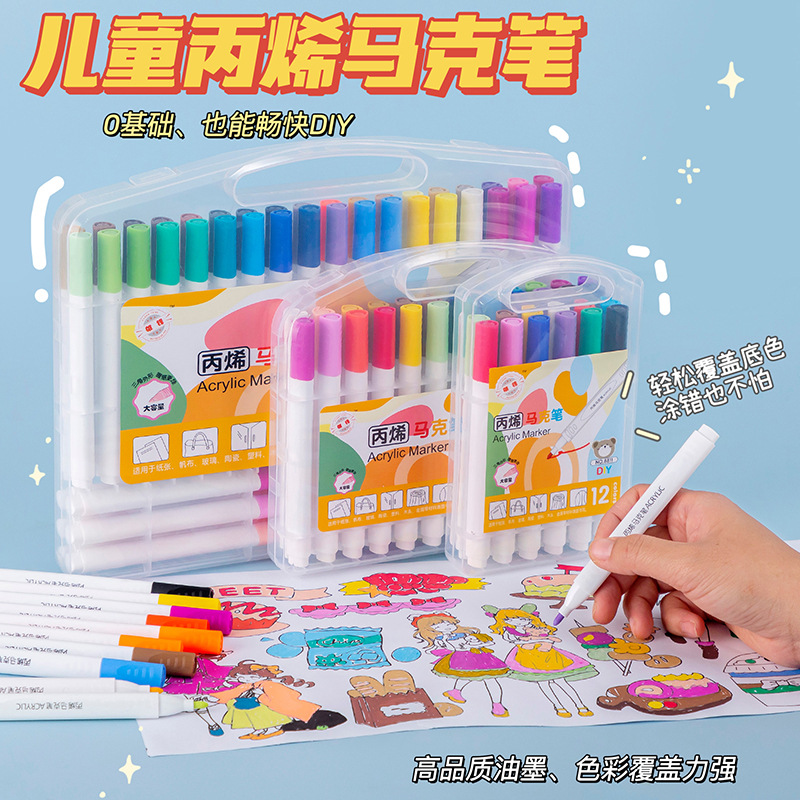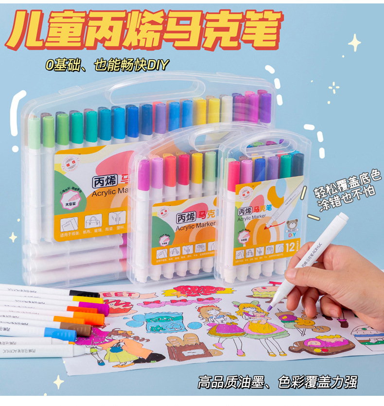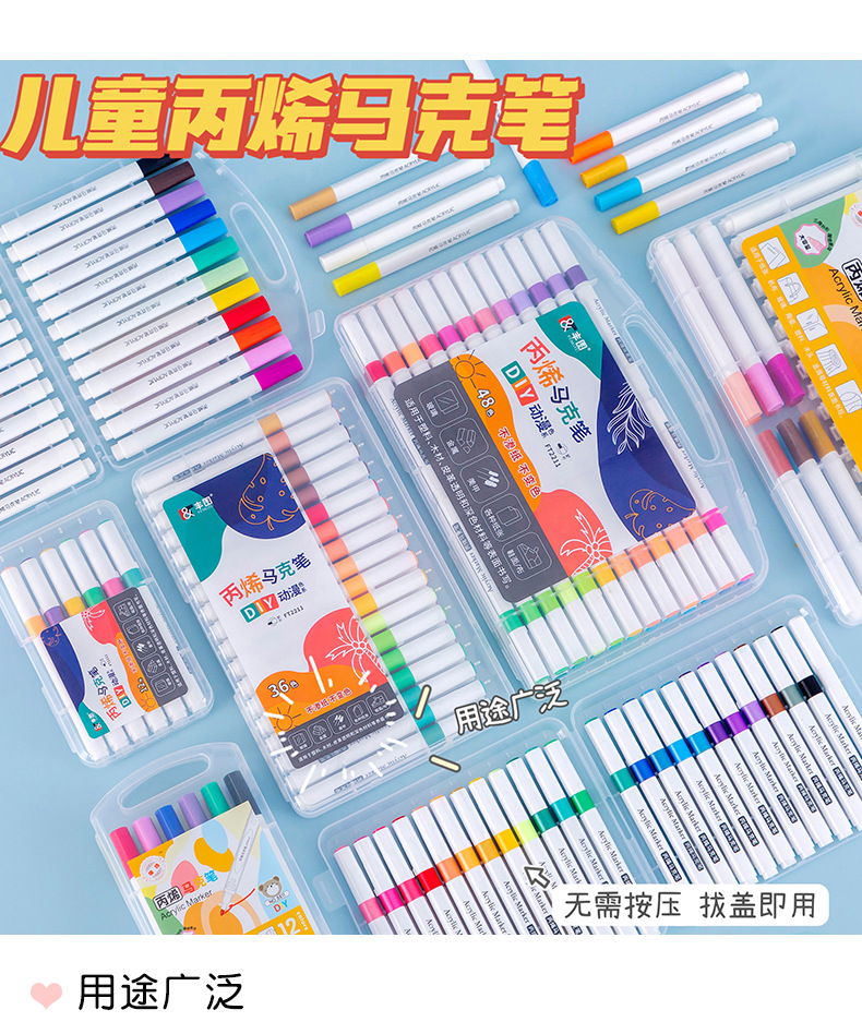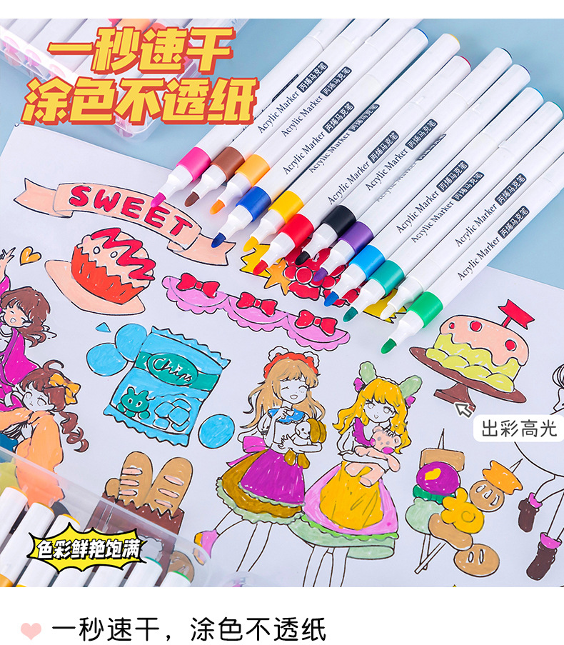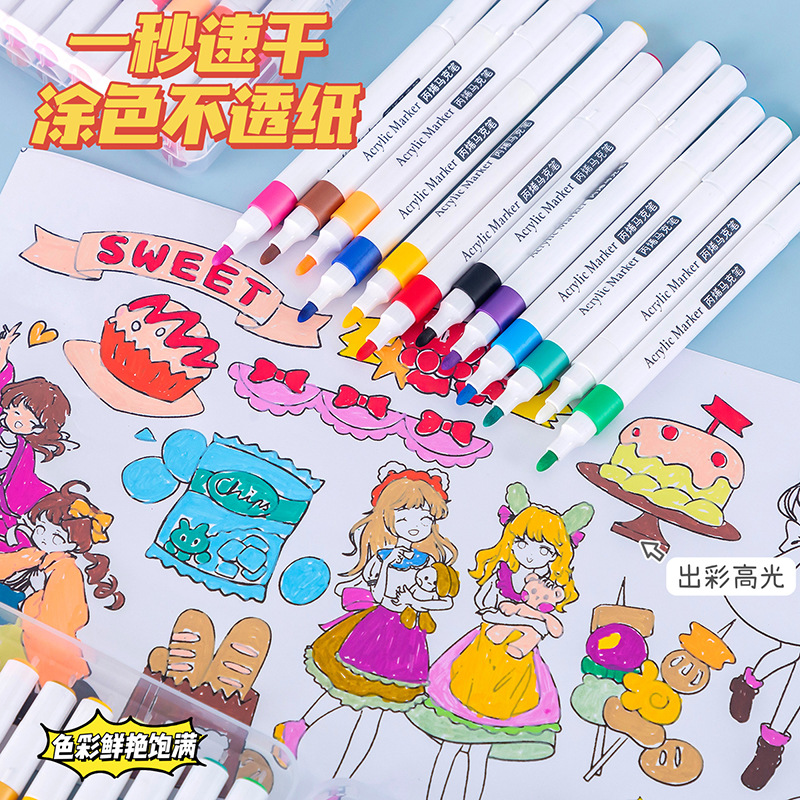 丙烯马克笔48色大容量学生美术专用防水不印纸不晕染绘画笔可水洗