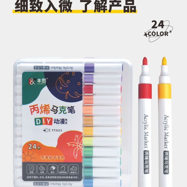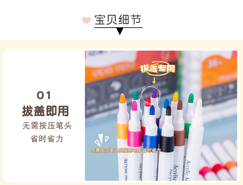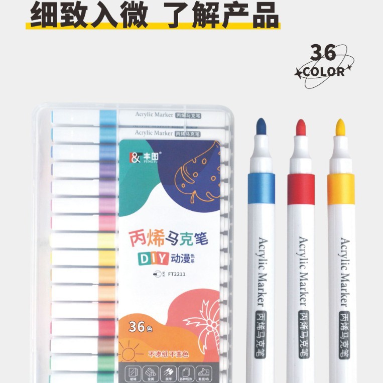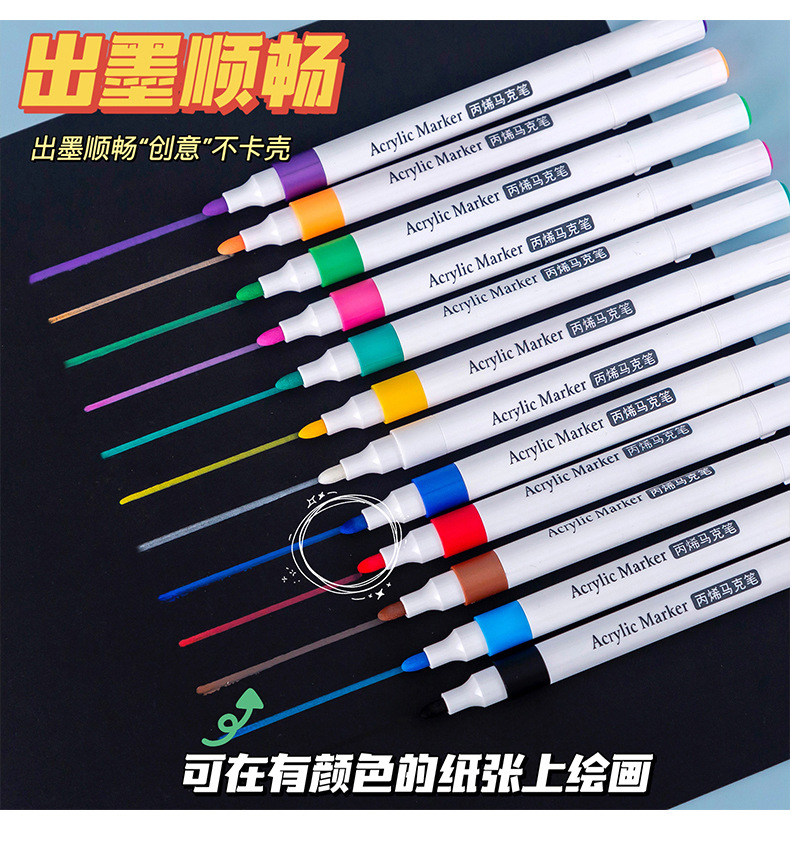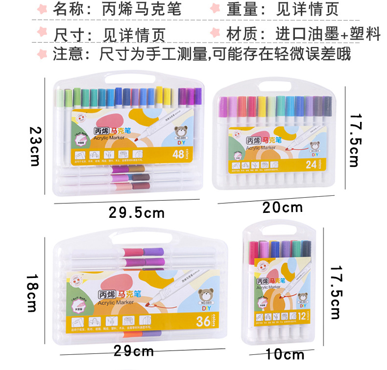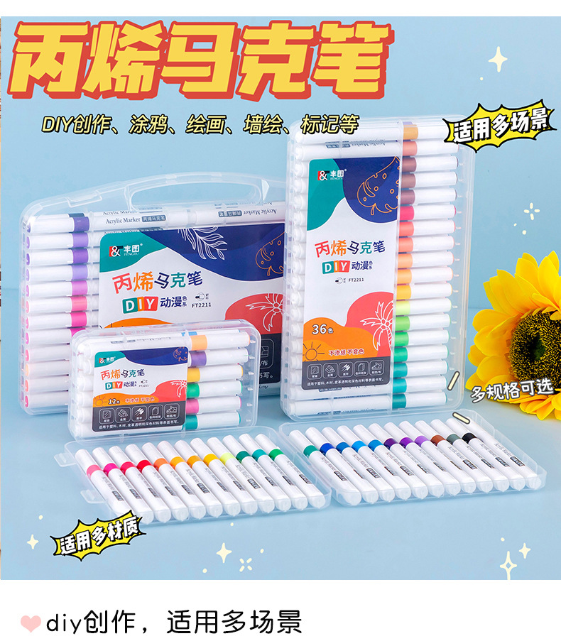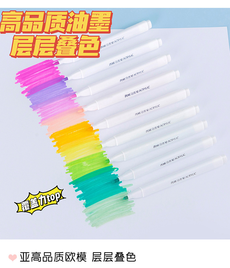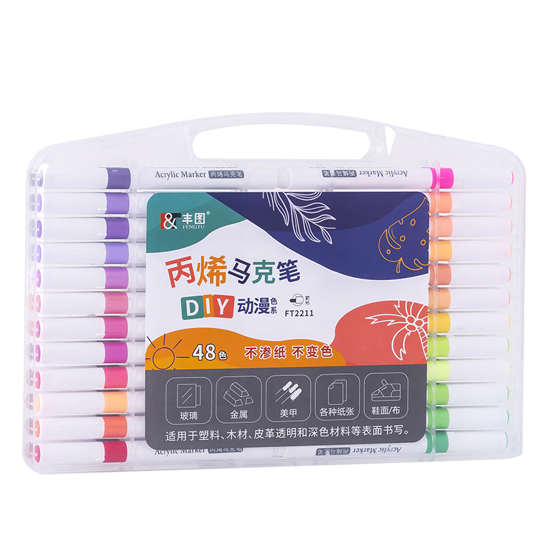 丙烯马克笔48色大容量学生美术专用防水不印纸不晕染绘画笔可水洗