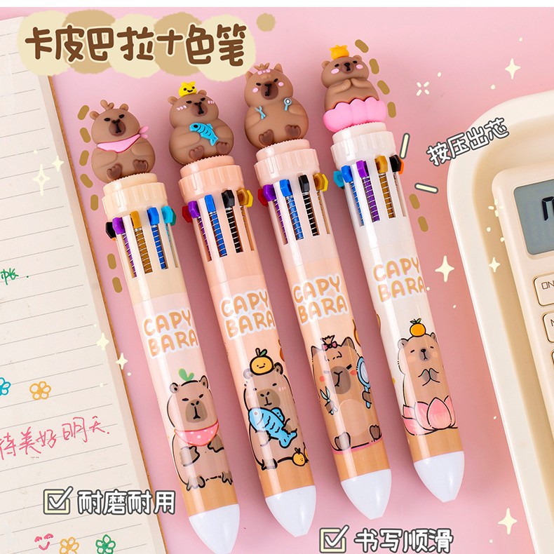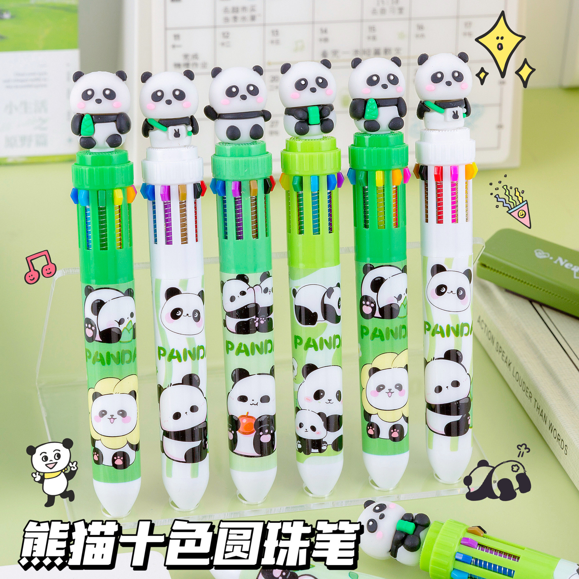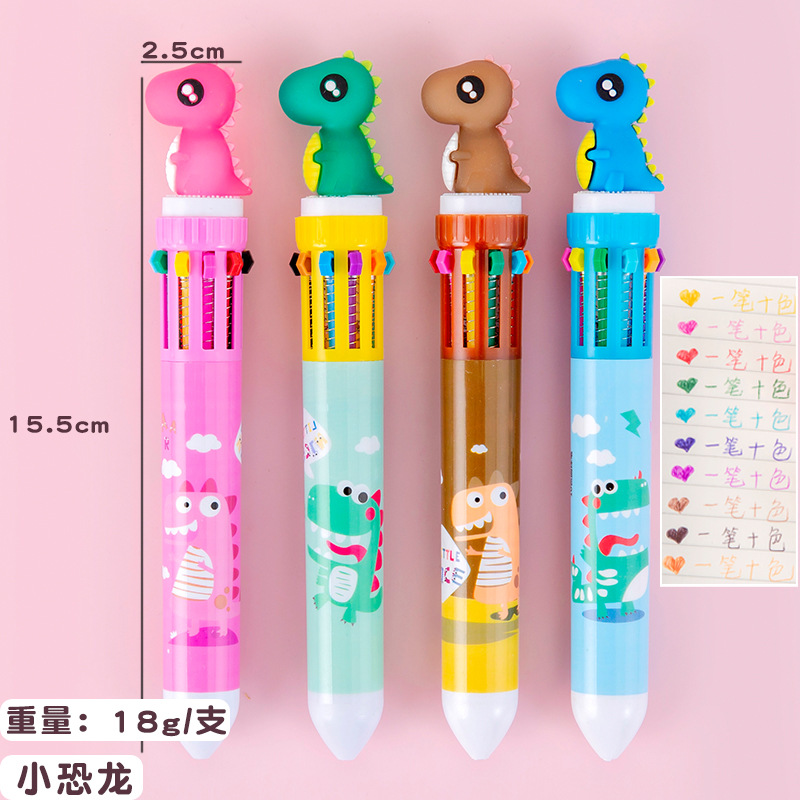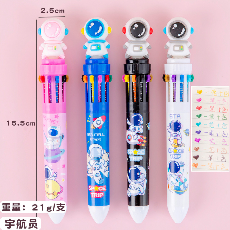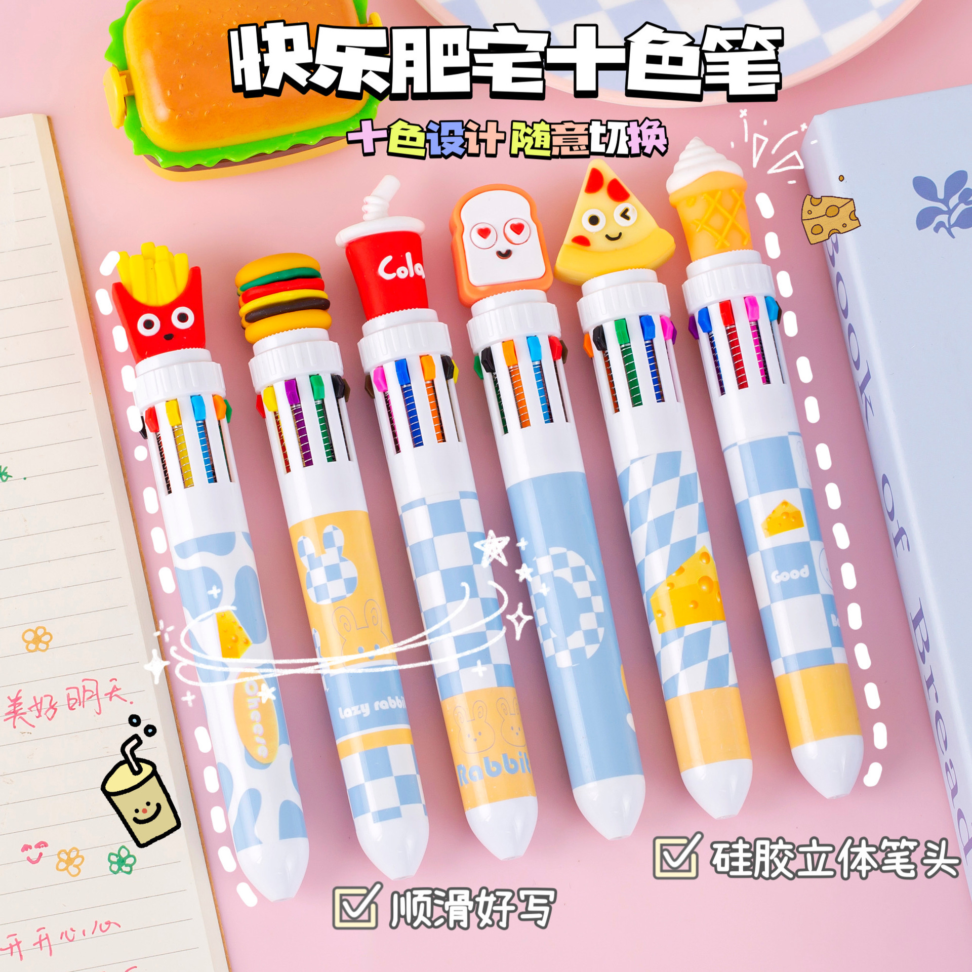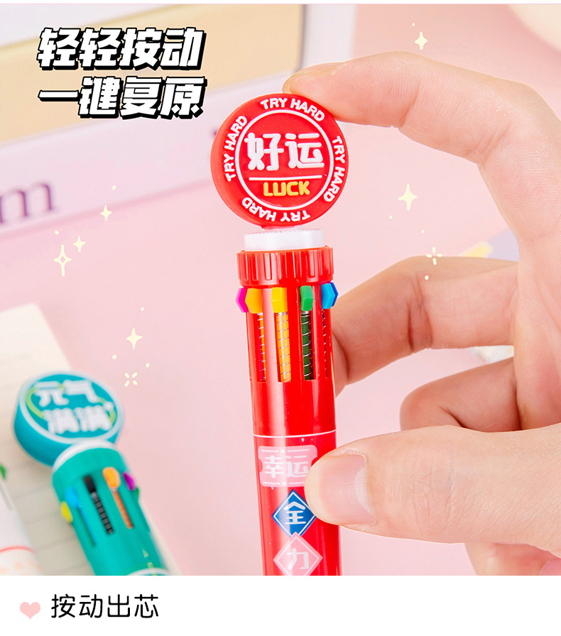 多色圆珠笔卡通学生可爱十色圆珠笔按动式彩色记号多色合一中油笔