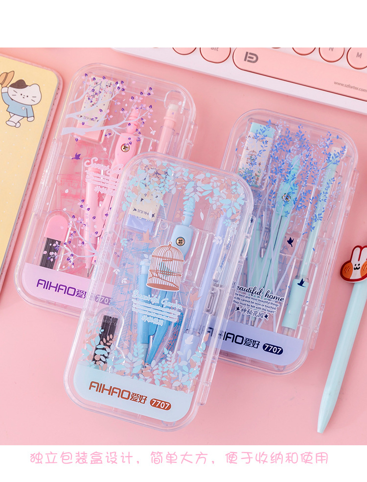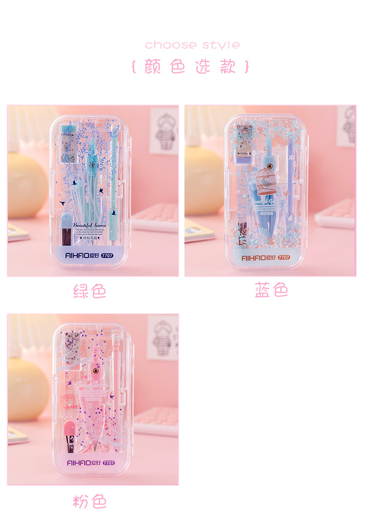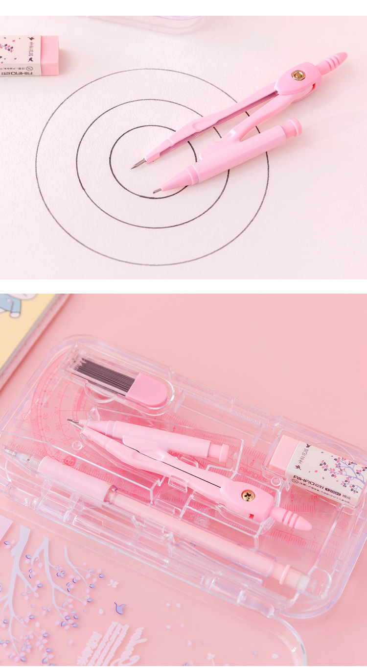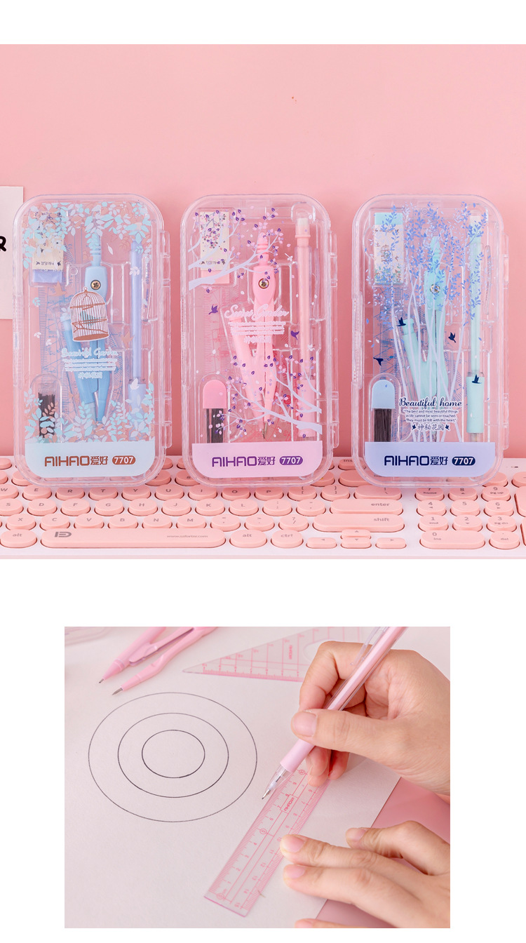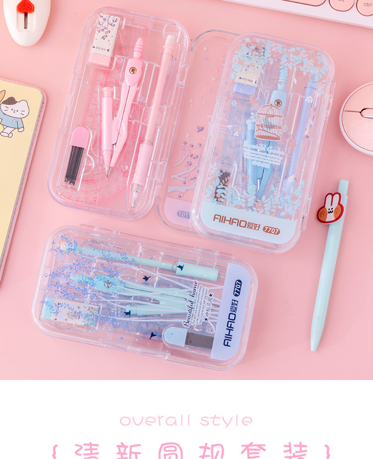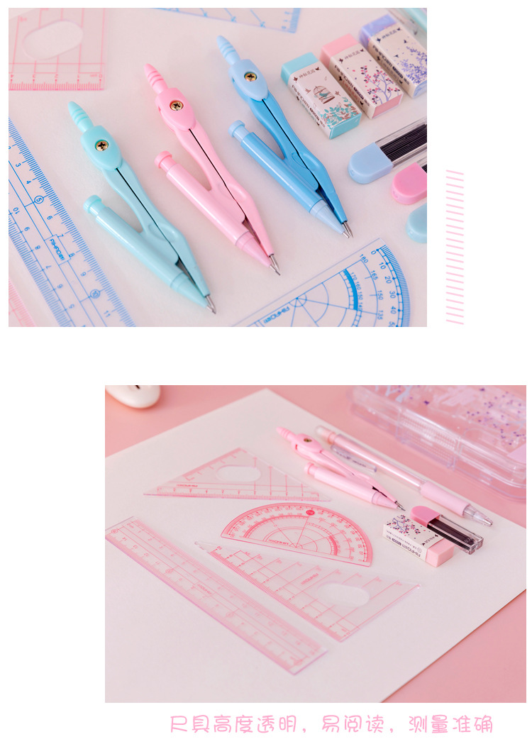 爱好圆规套装小清新自动铅笔橡皮笔芯学生绘图尺子量角器文具T