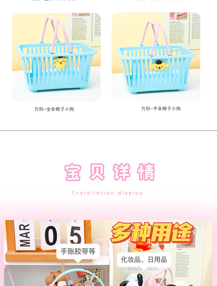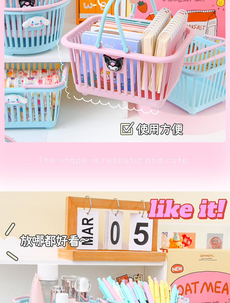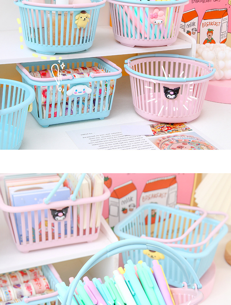 收纳小篮子儿童卡通桌面多功能塑料手提收纳筐创意可爱收纳篮批发