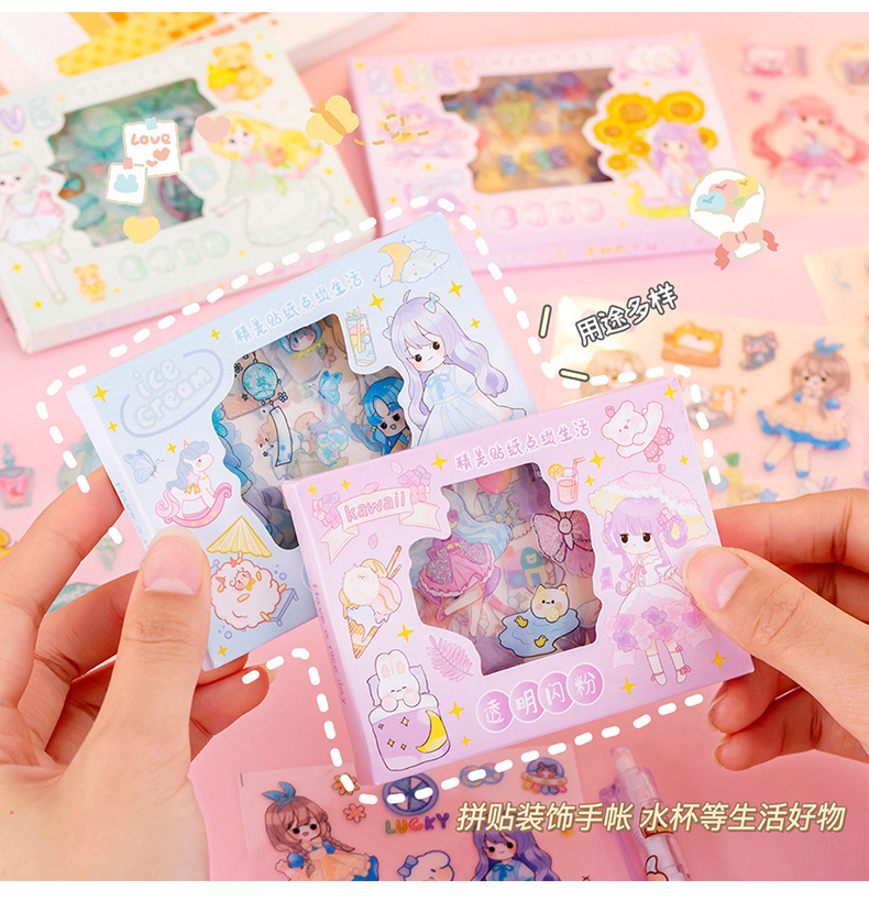 旭凤手帐贴纸盒装套装磨砂防水贴纸可爱礼盒水杯贴画装饰粘贴纸