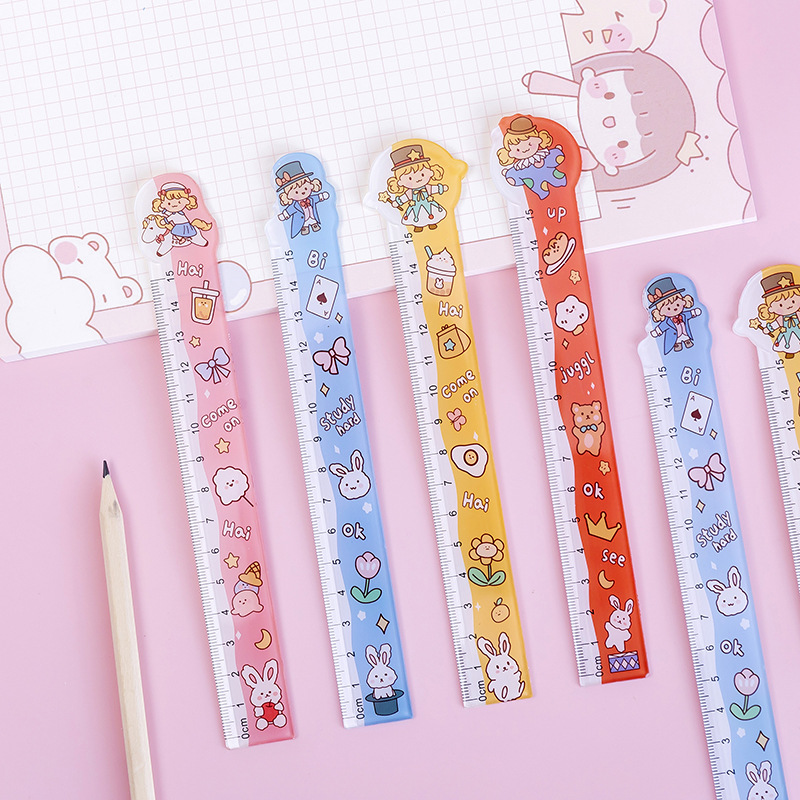创意梦幻女孩尺子 可爱少女心小学生专用直尺15CM透明樱花造型T