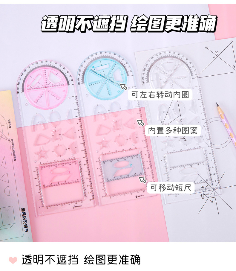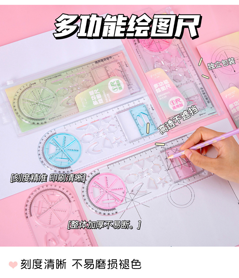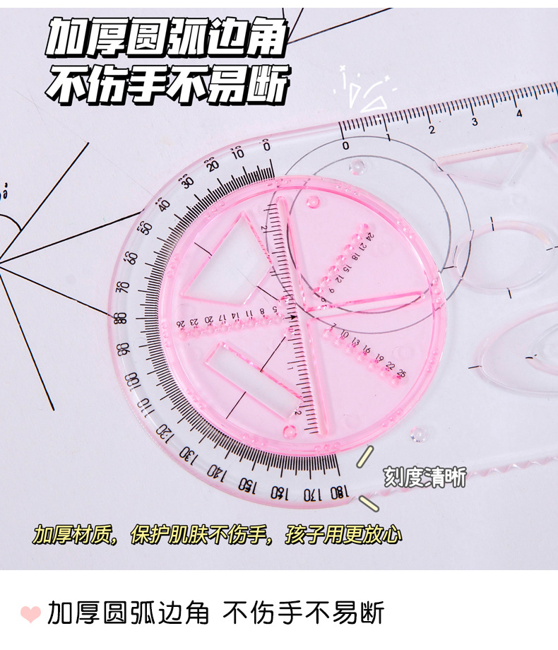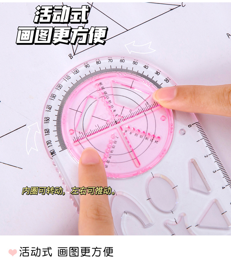 多功能绘图尺子 几何图形中小学画图模板尺 可旋转图形函数尺
