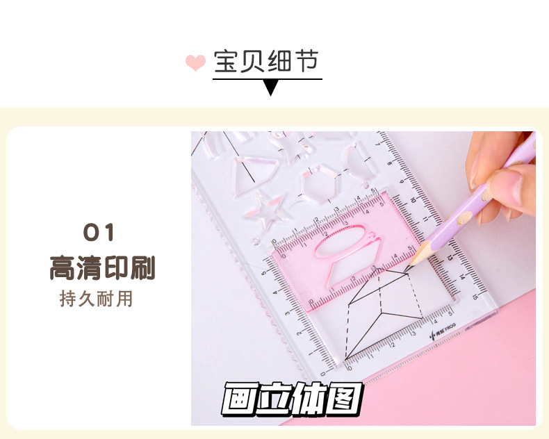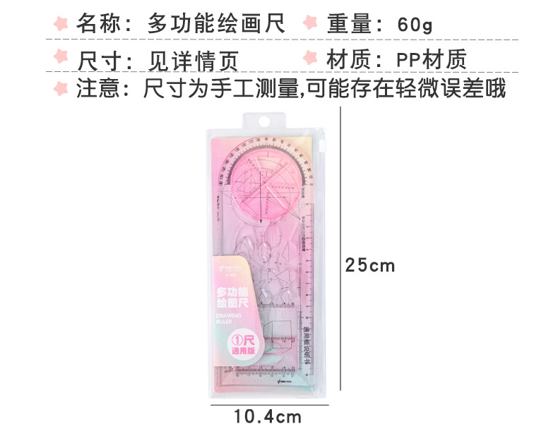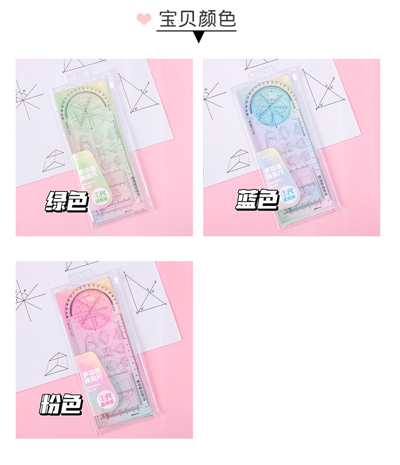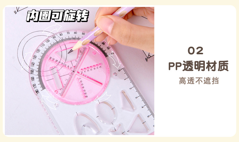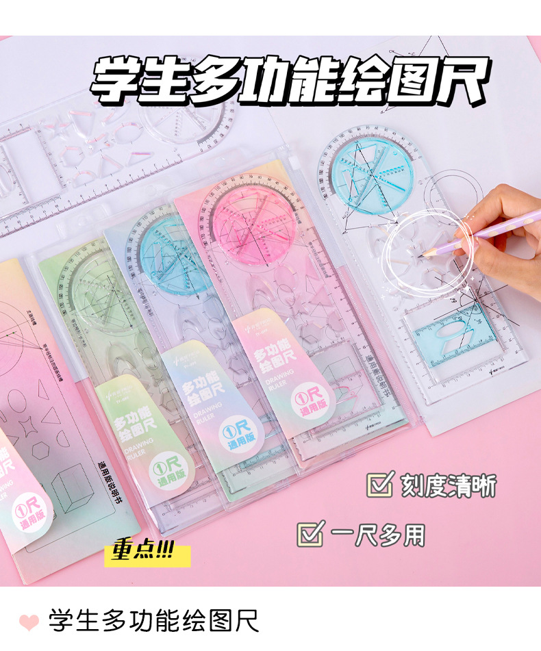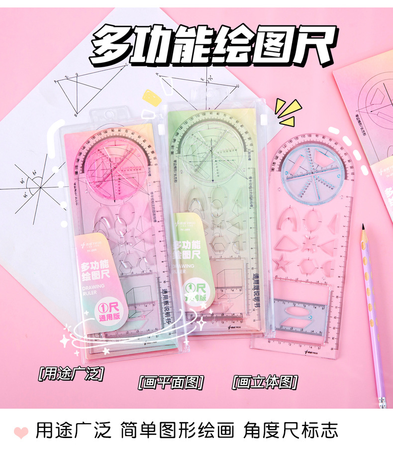 多功能绘图尺子 几何图形中小学画图模板尺 可旋转图形函数尺