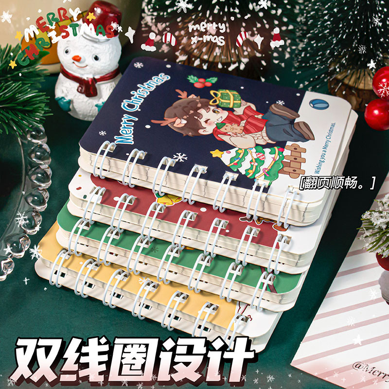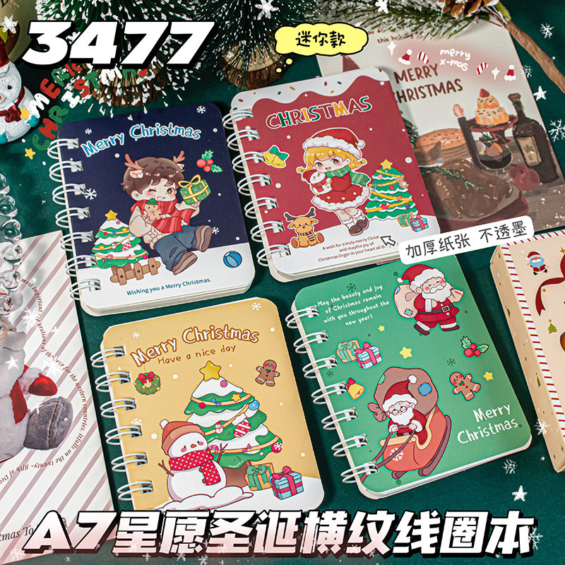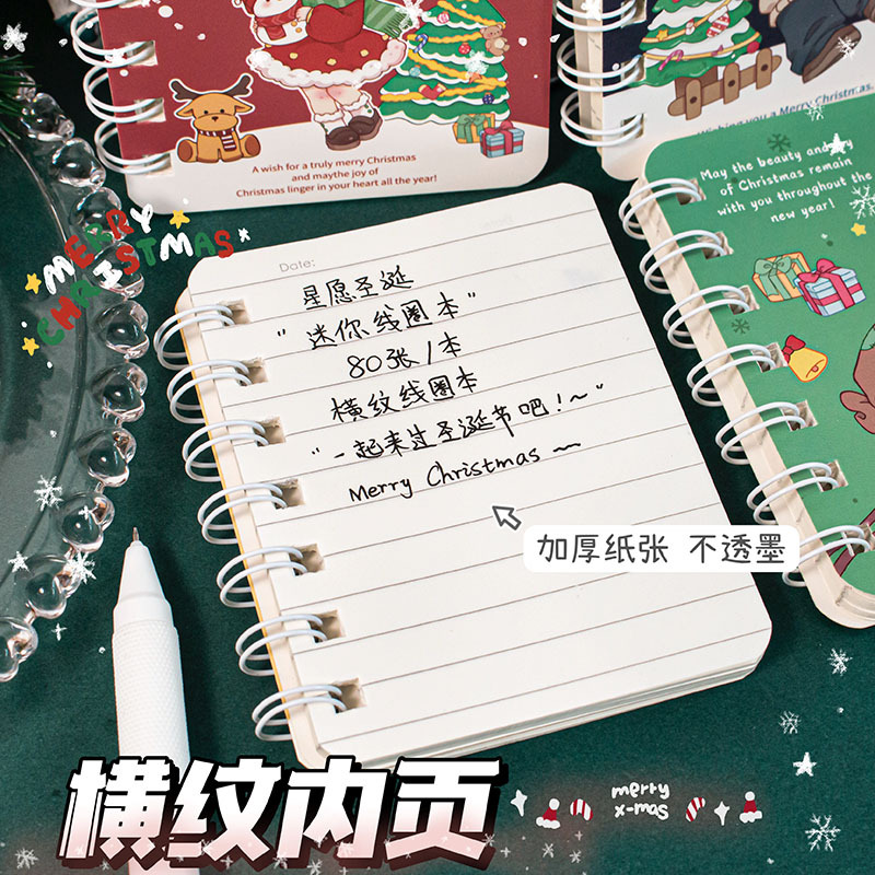 圣诞A7侧翻线圈本可爱迷你便携口袋记事本小本子学生圣诞节小礼品
