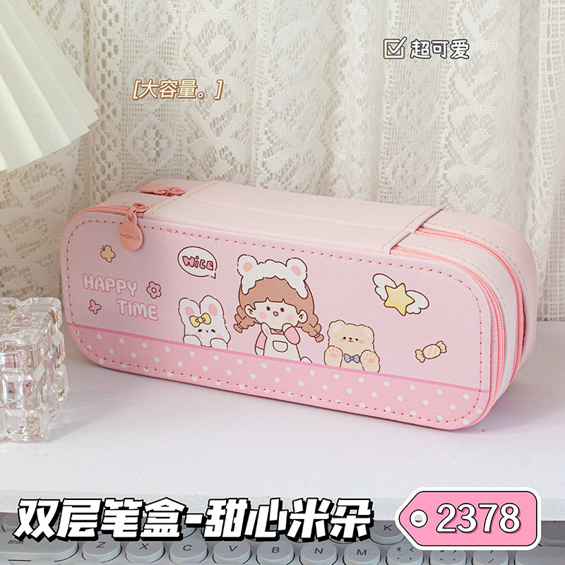 六一双层笔袋学生礼物学习用品收纳大容量文具盒多功能铅笔盒礼品