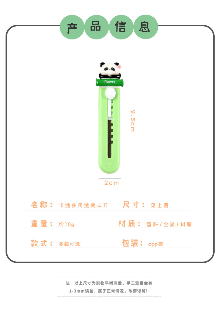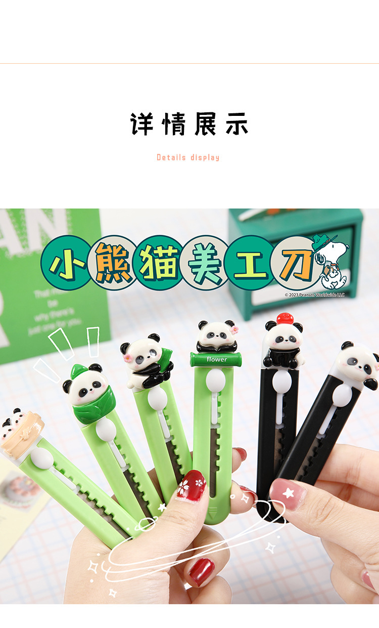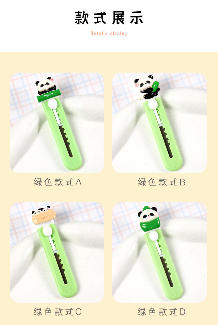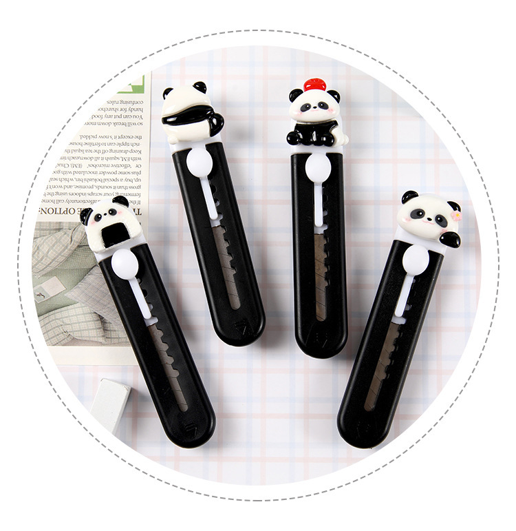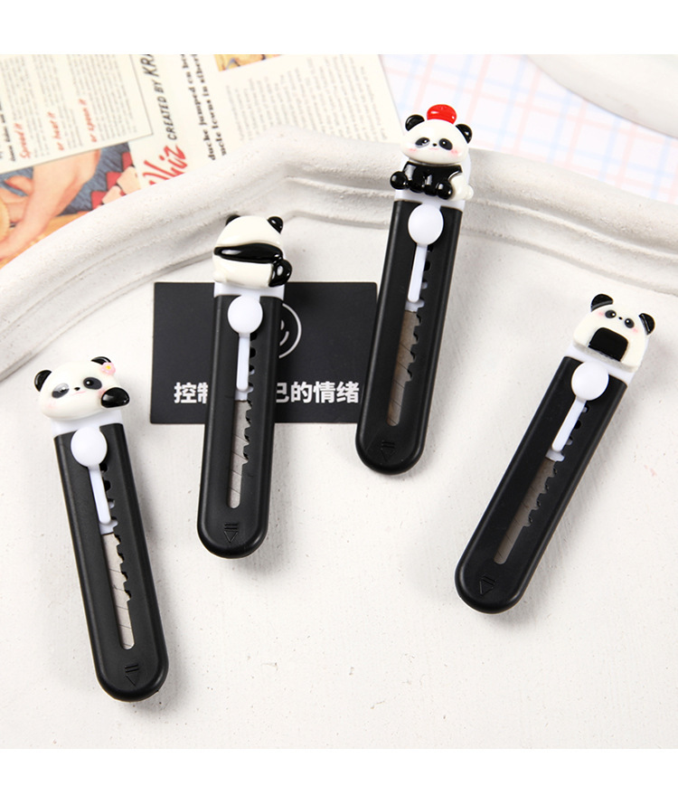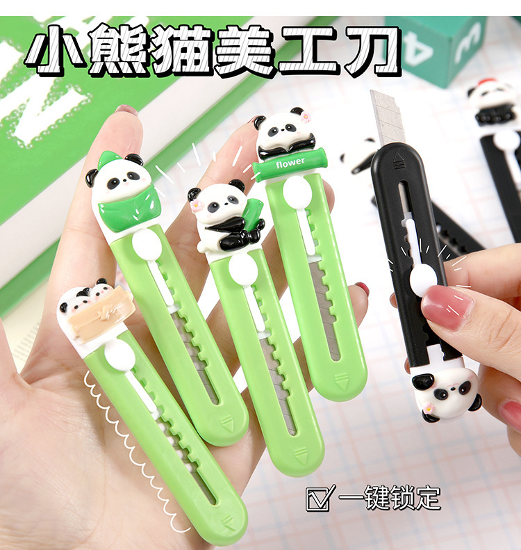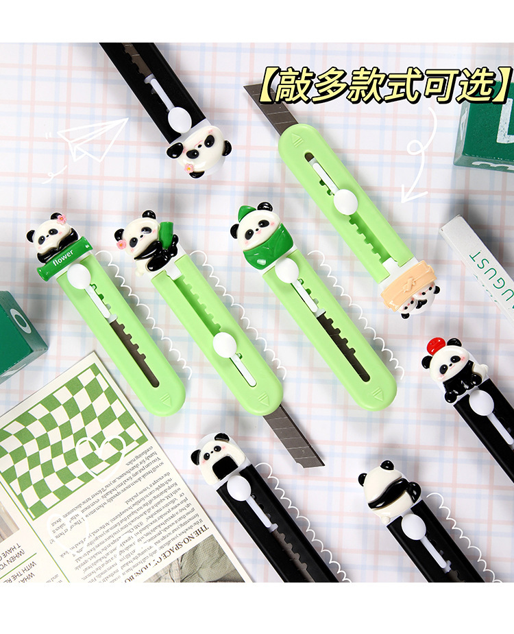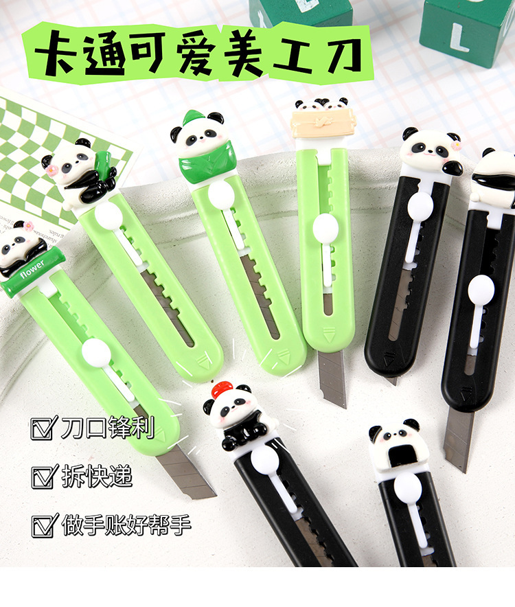 美工刀定制创意卡通熊猫学生用可爱迷你小刀伸缩拆箱快递刀批发