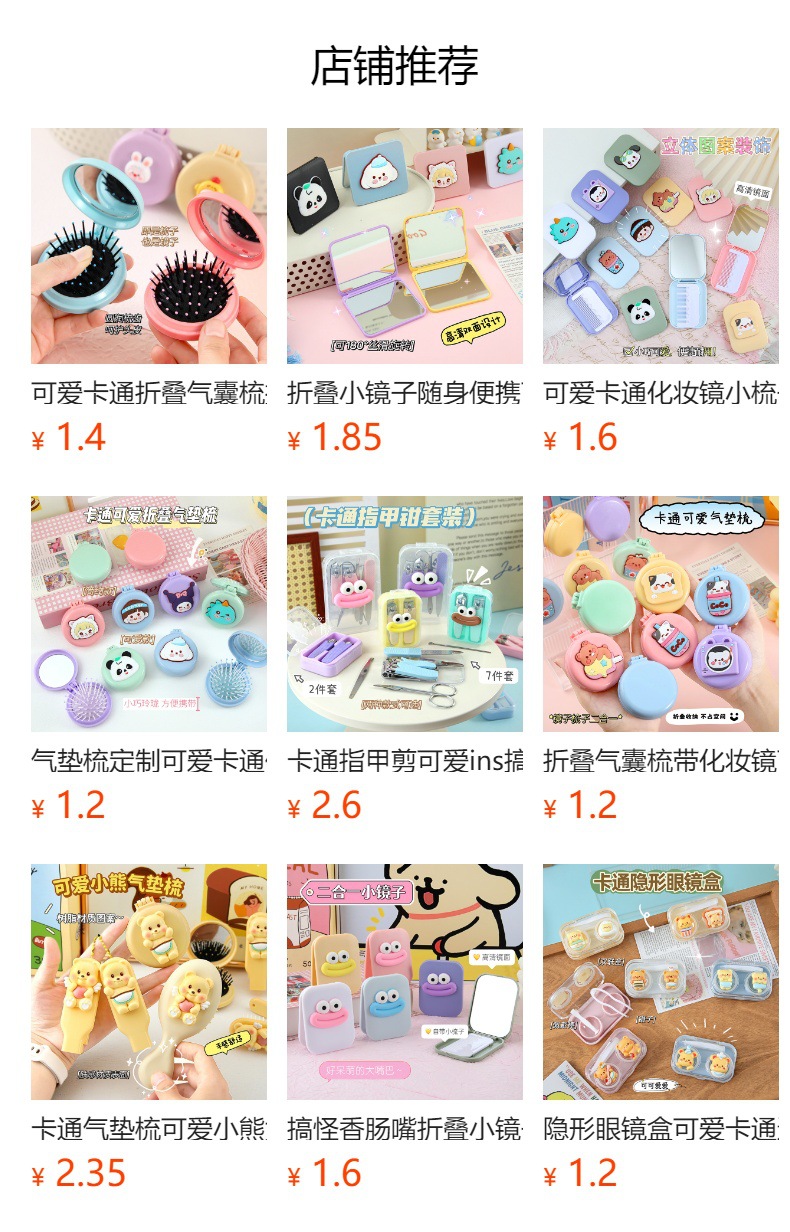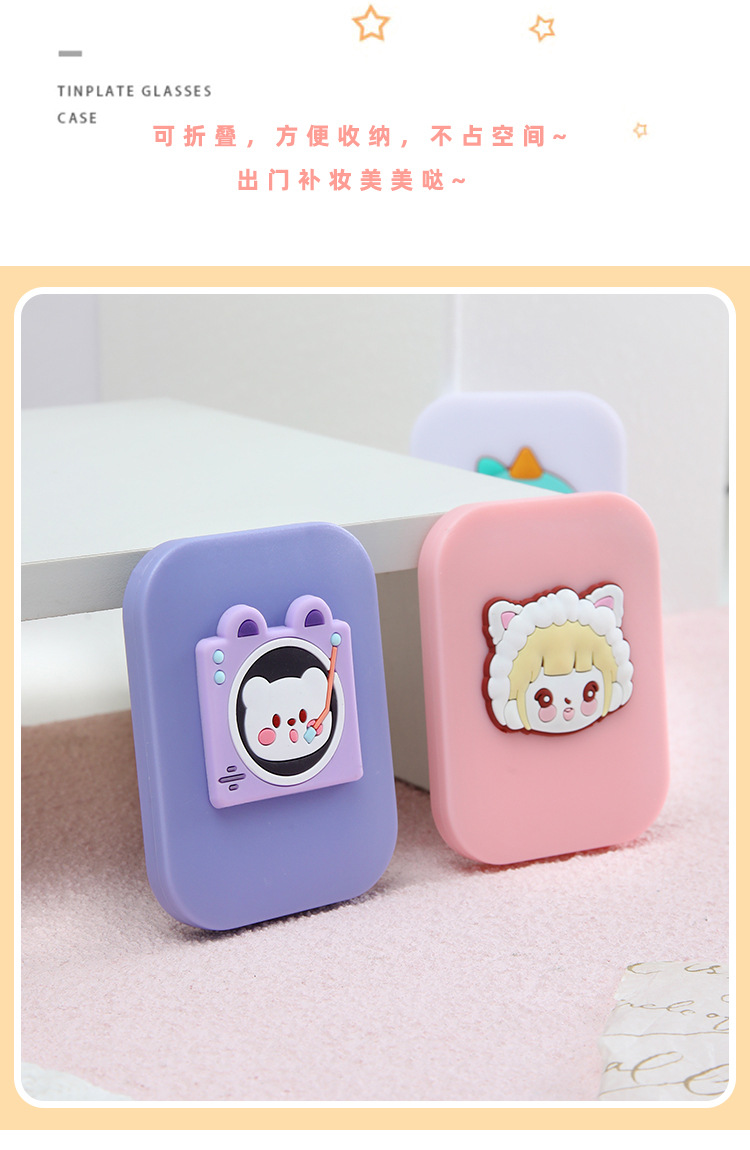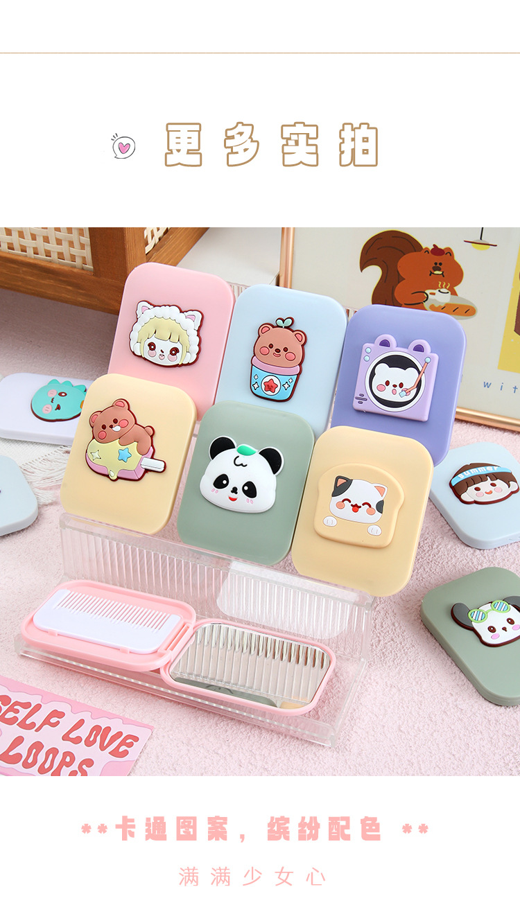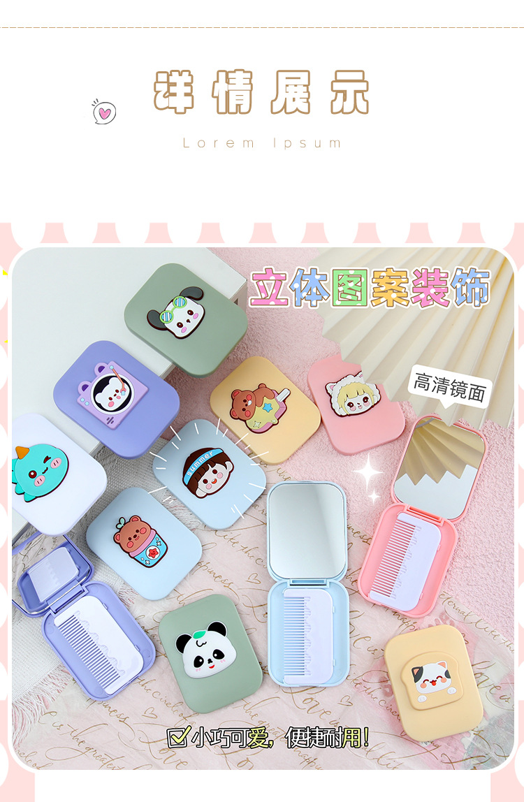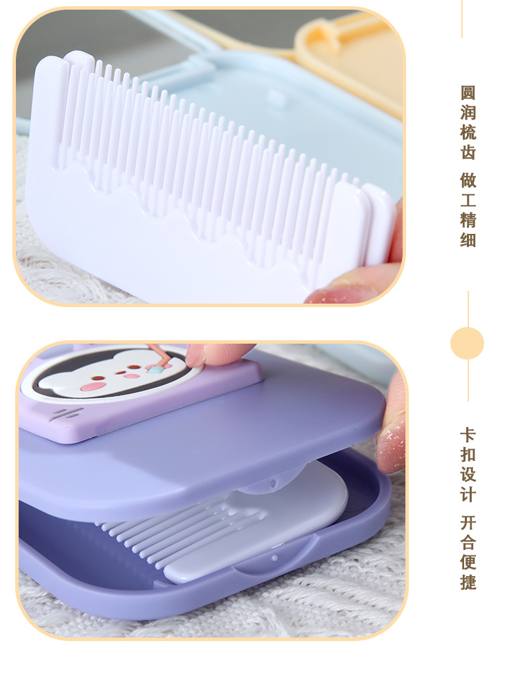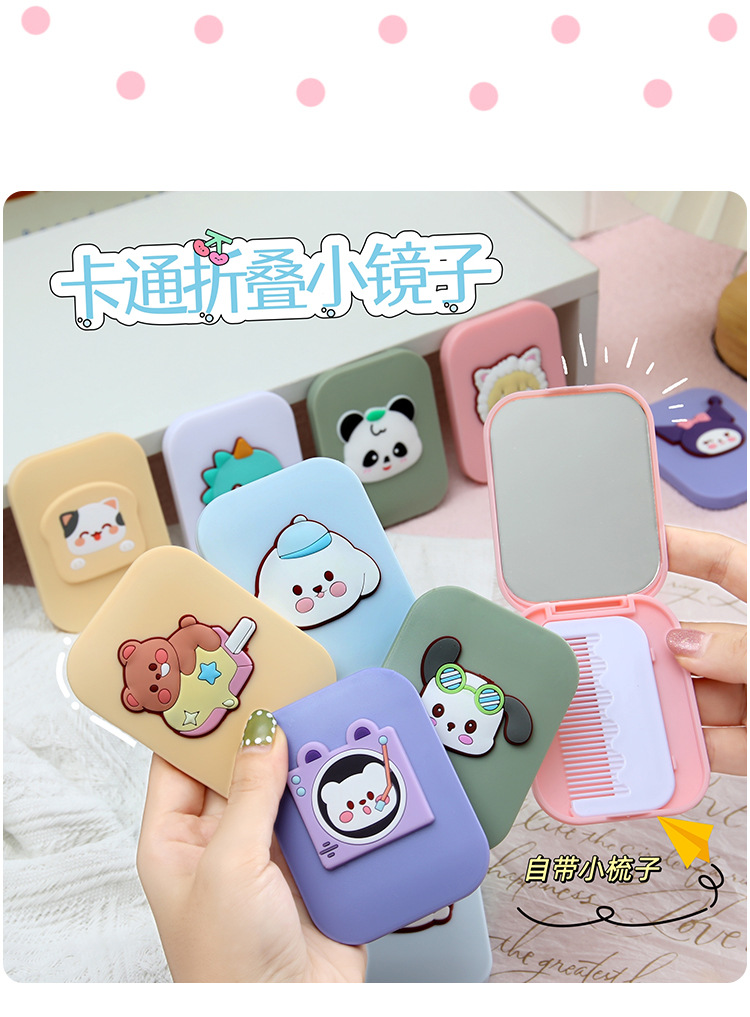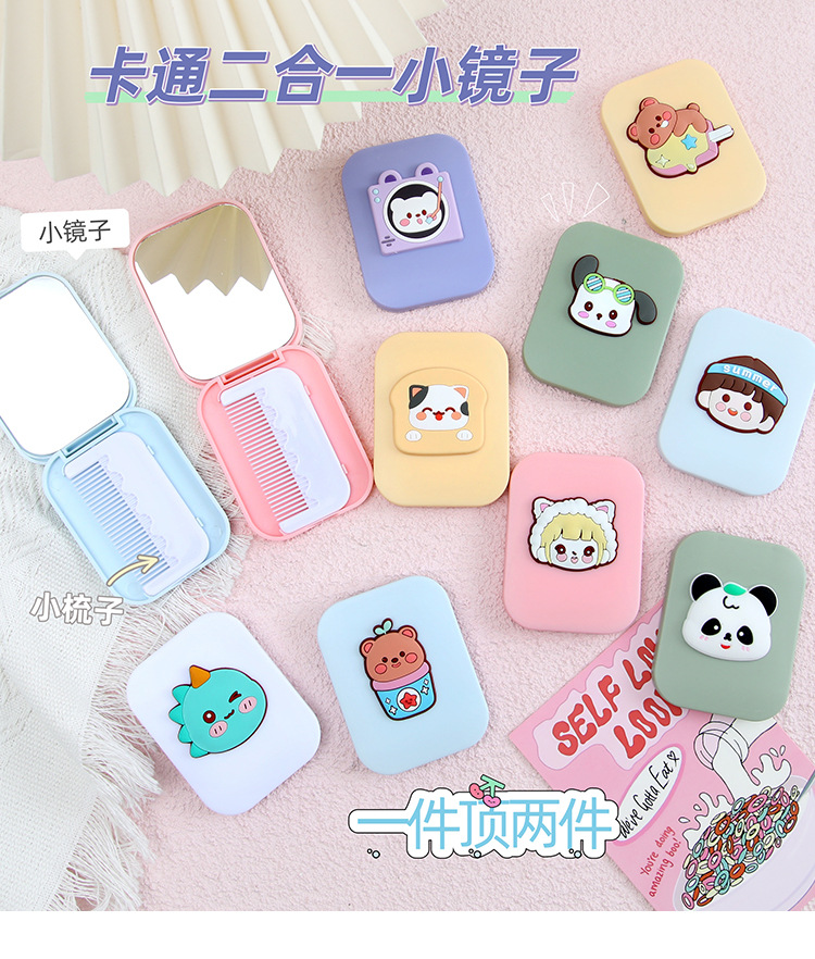 可爱卡通化妆镜梳子二合一高级感学生便携塑料折叠小镜子镜子批发