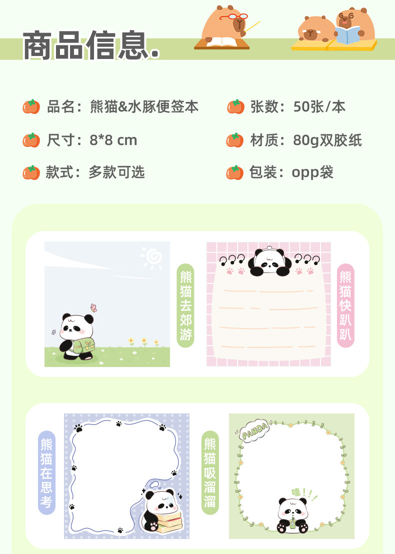 标签本可爱卡通熊猫高颜值彩色便签学生备忘录留言便签纸批发