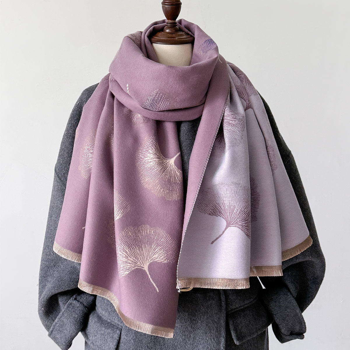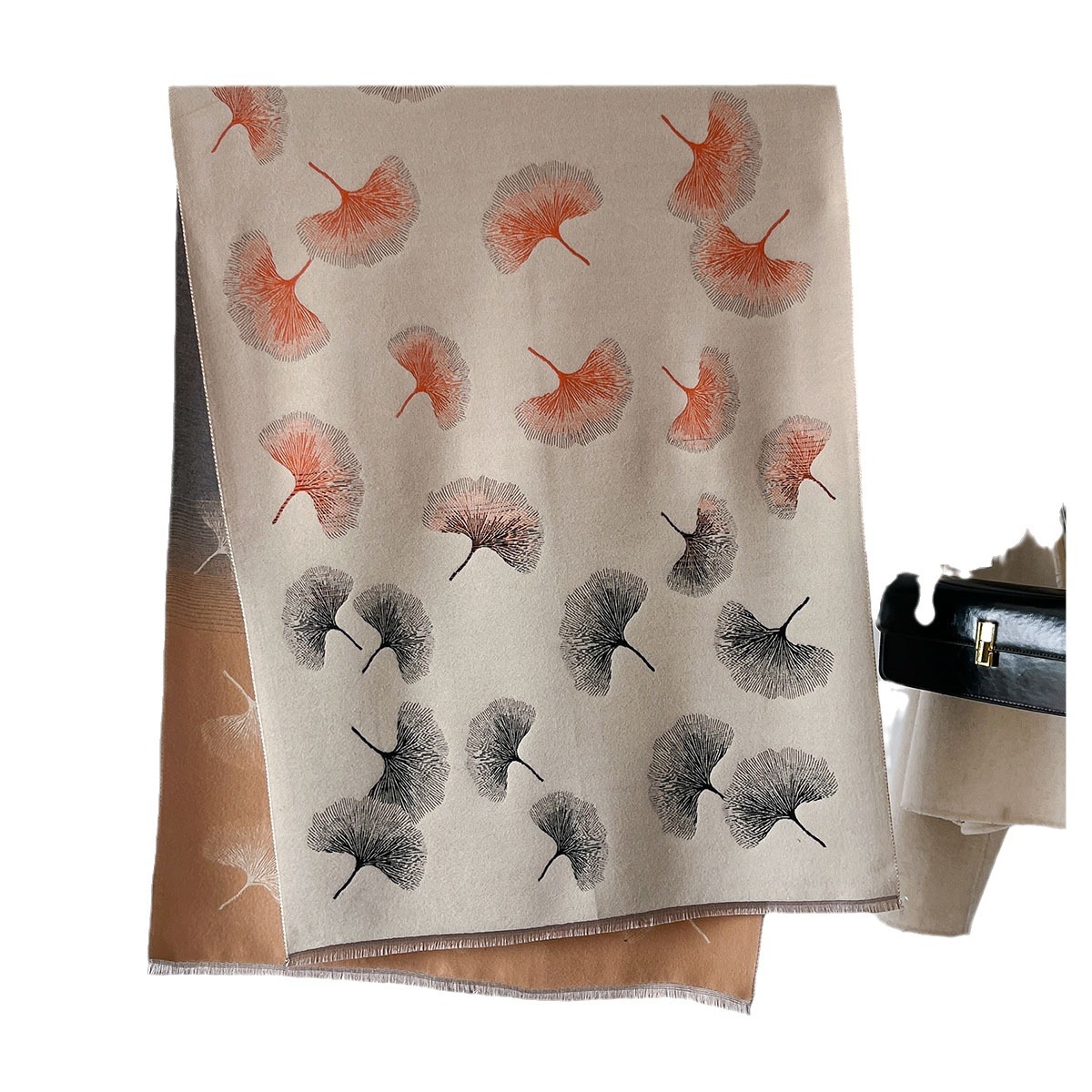 新款印花树叶2024女秋冬披风宽松斗篷外搭办公室围巾披肩洋气百搭