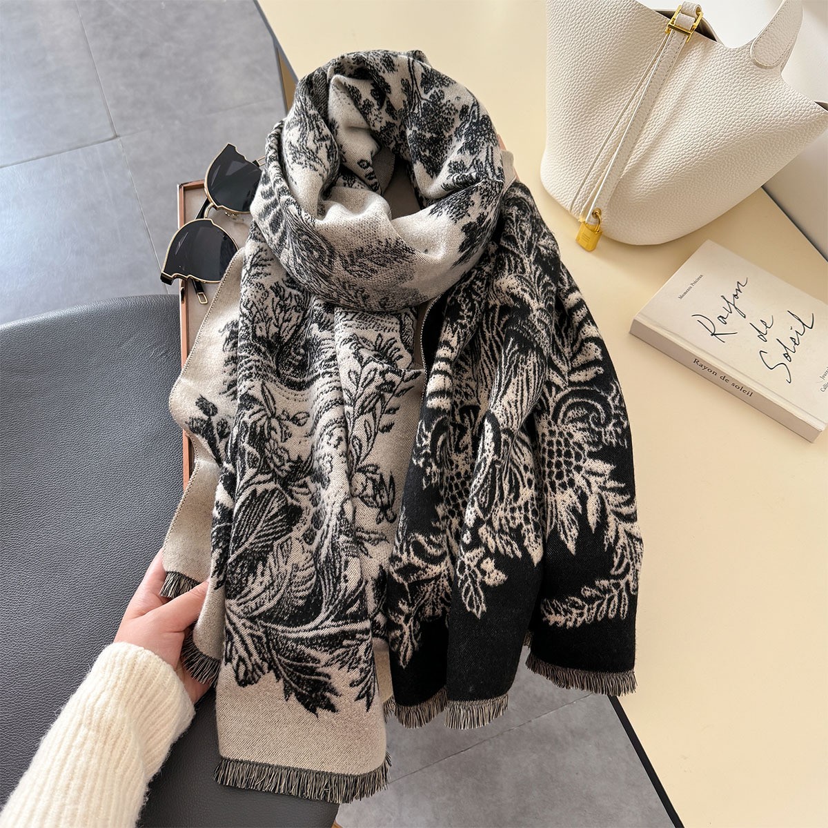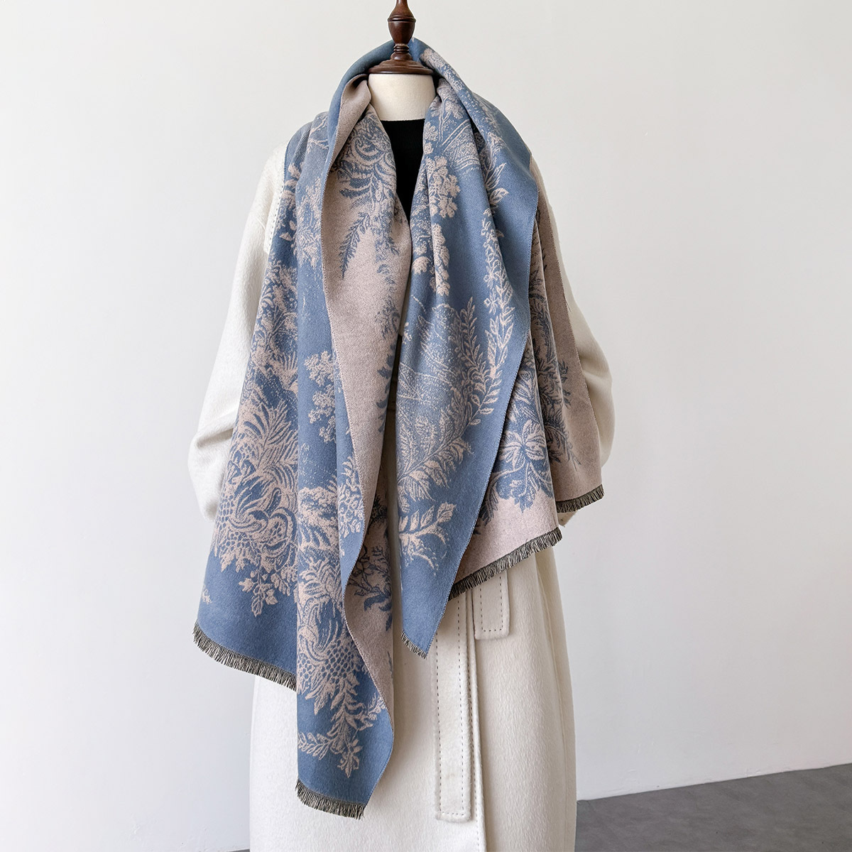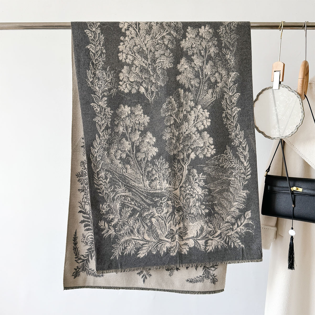 复古新款印花时尚百搭长款氛围感披肩保暖气质双面两用秋冬季围脖