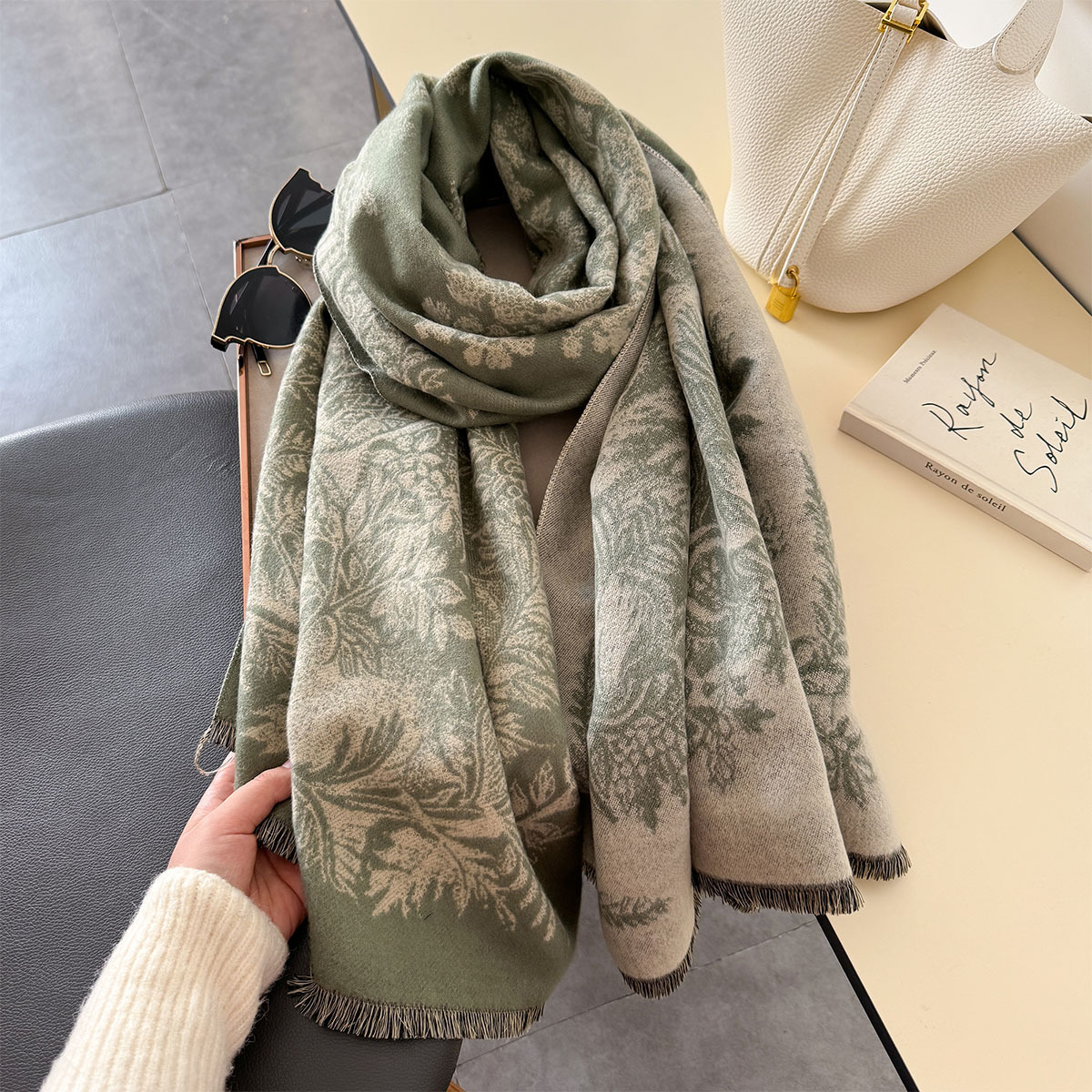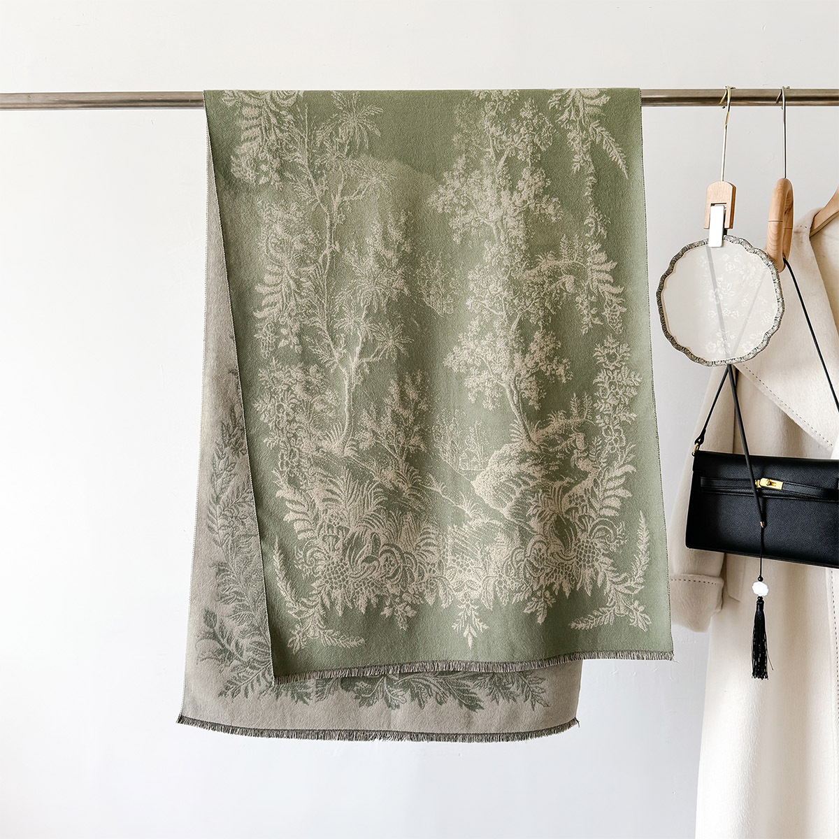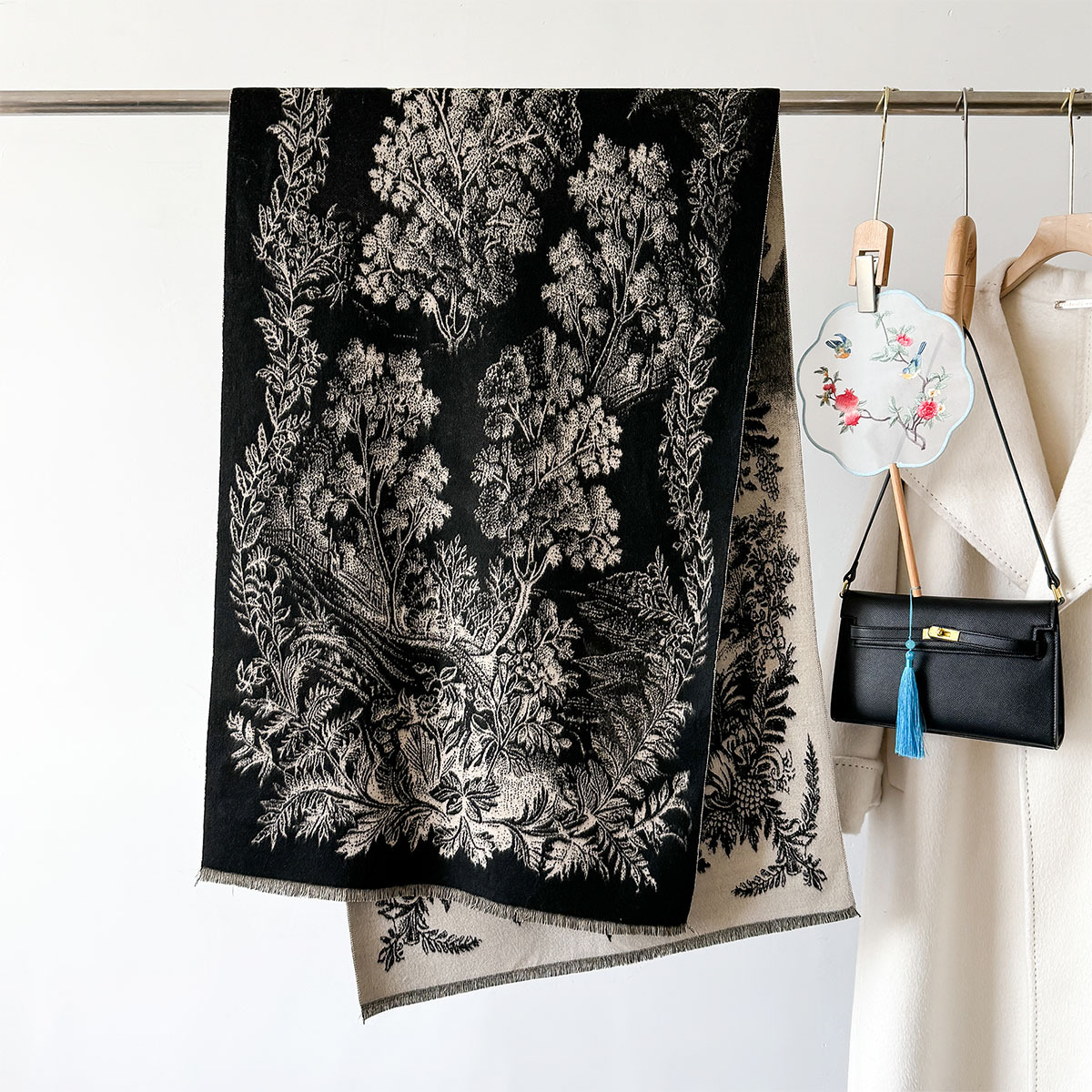 复古新款印花时尚百搭长款氛围感披肩保暖气质双面两用秋冬季围脖