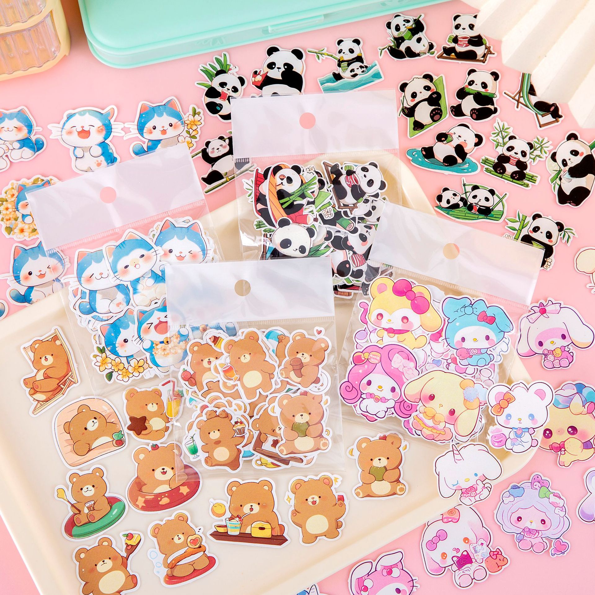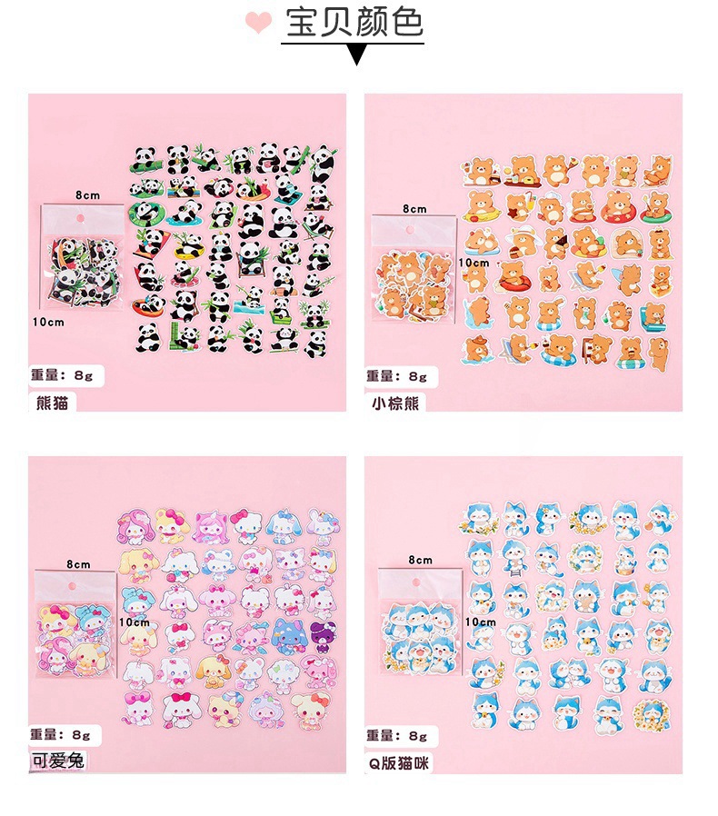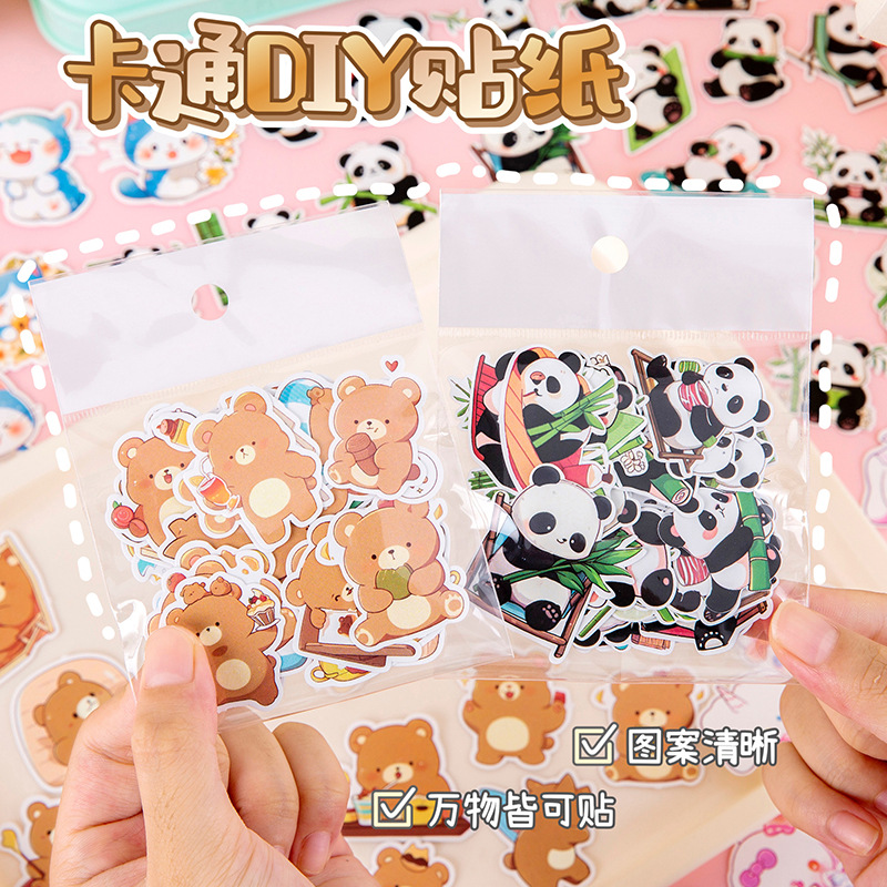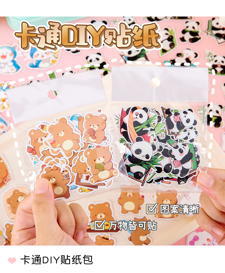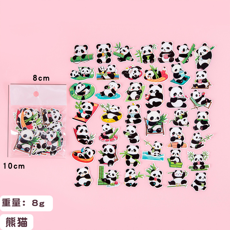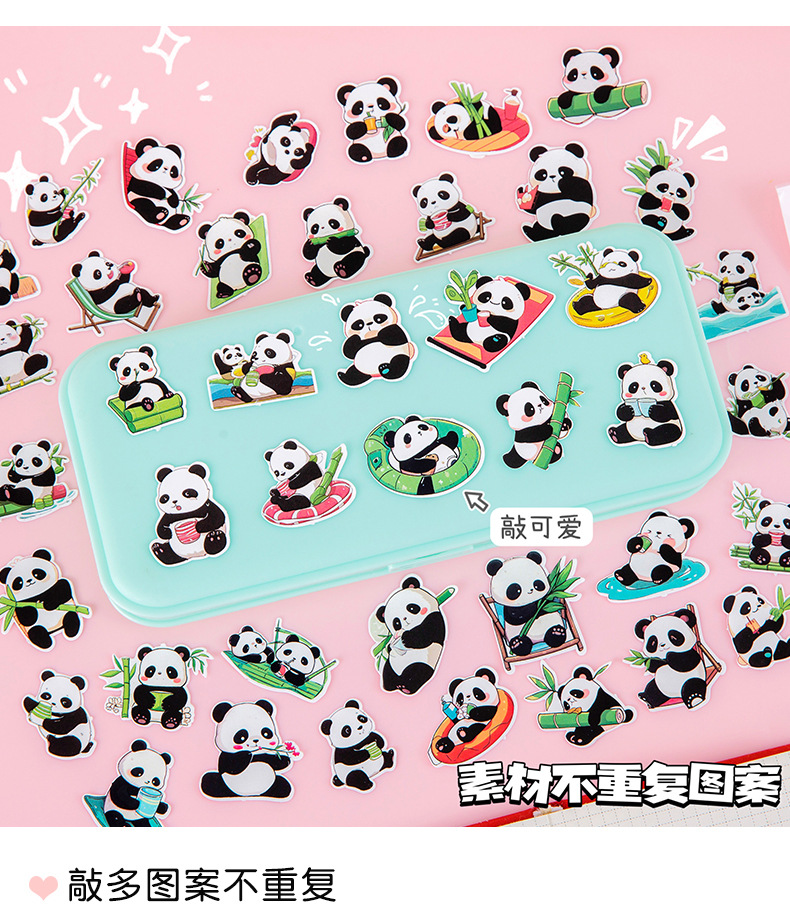 可爱萌宠熊猫贴纸卡通水贴卡通创意DIY装饰贴画手账行李箱咕卡贴