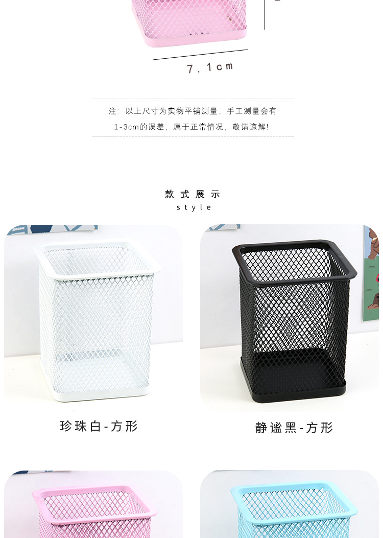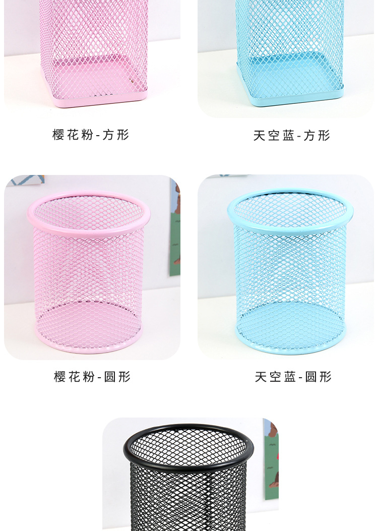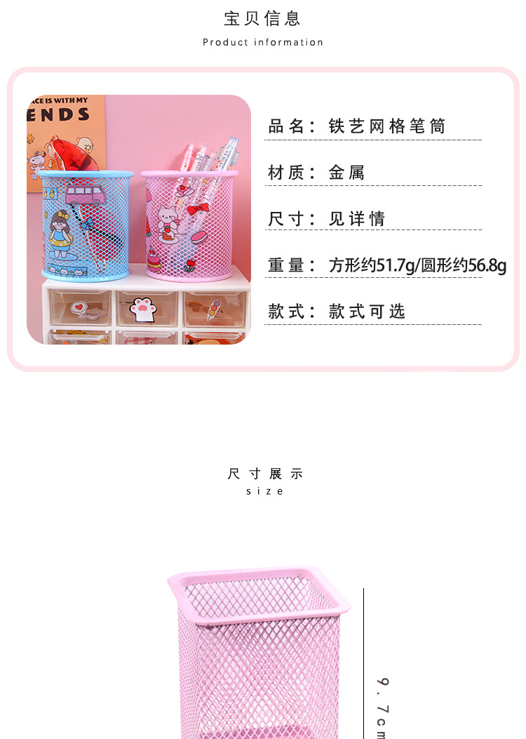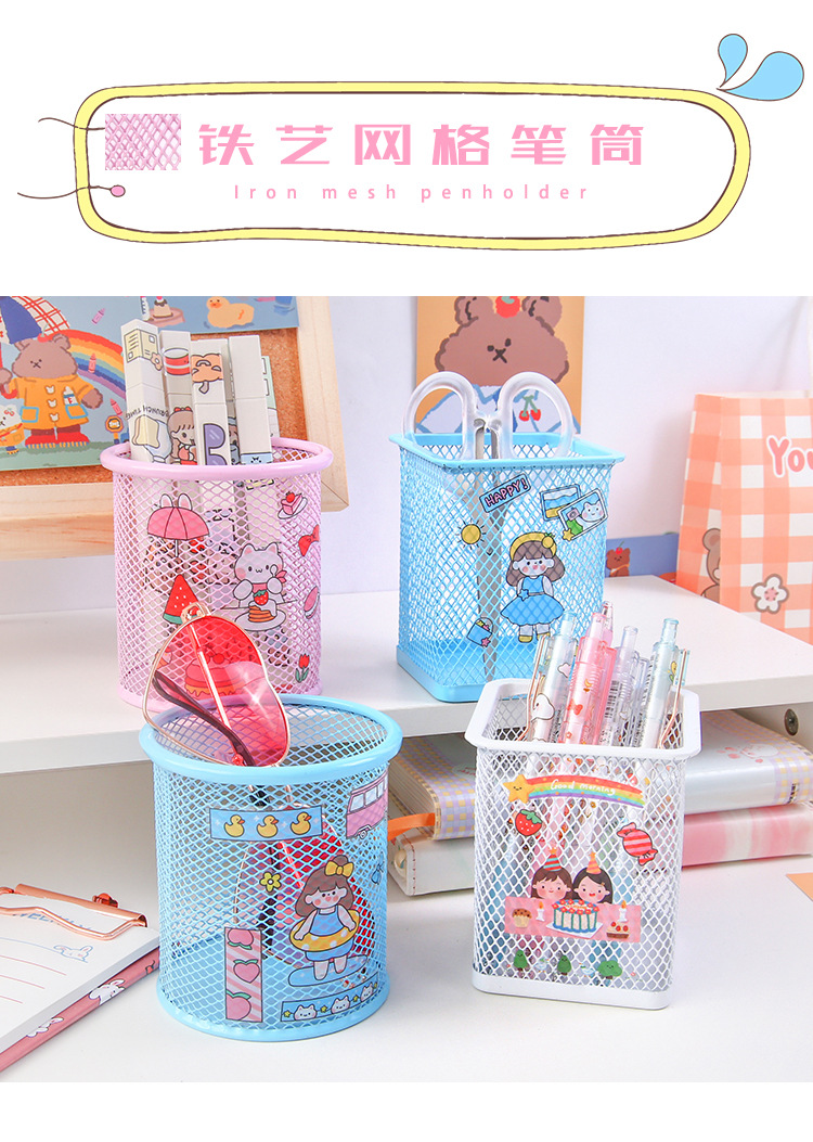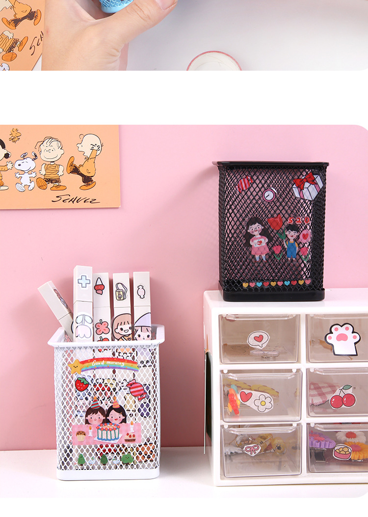 金属笔筒 创意贴纸圆形方形铁艺网格DIY文具手账贴笔桶文具收纳筒