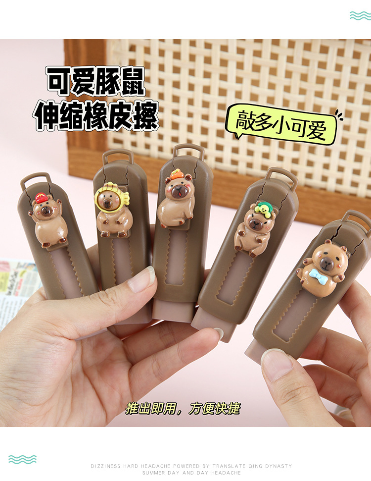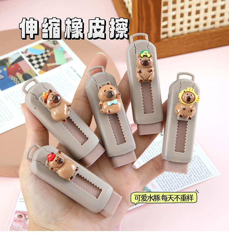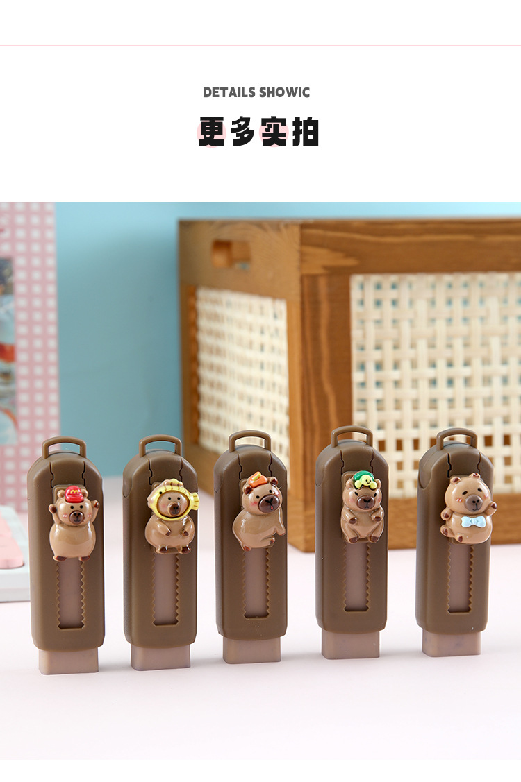 可爱卡皮巴拉推拉橡皮擦擦字干净小学生创意学习文具用品卡通橡皮