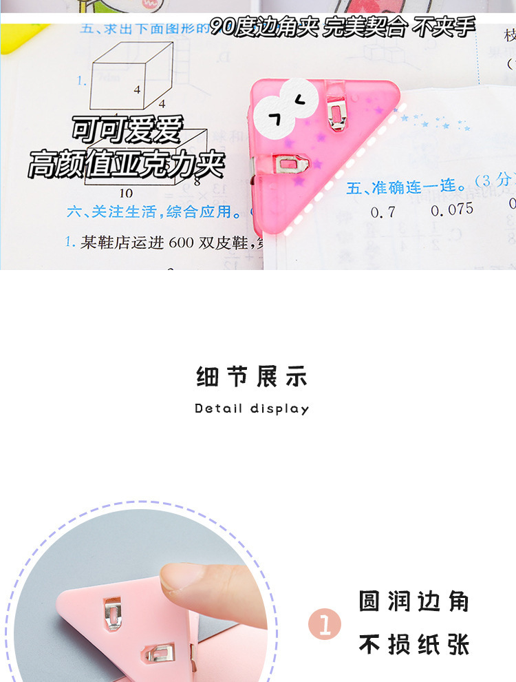 创意彩色三角夹边角夹学生学习文化用品三角保护夹夹子票据夹批发