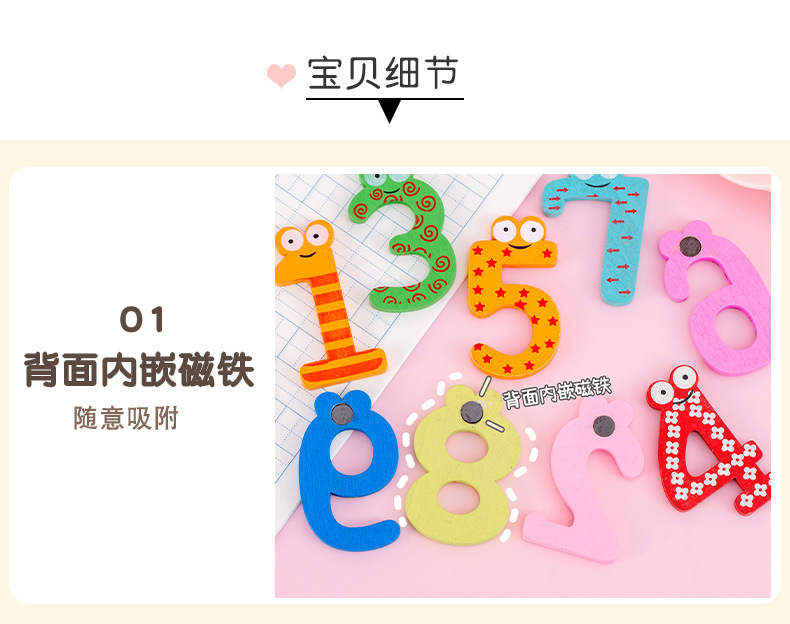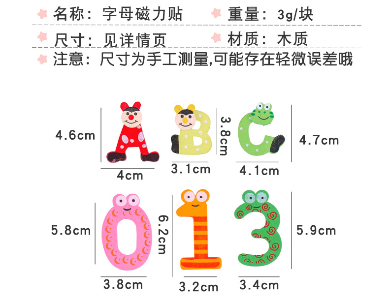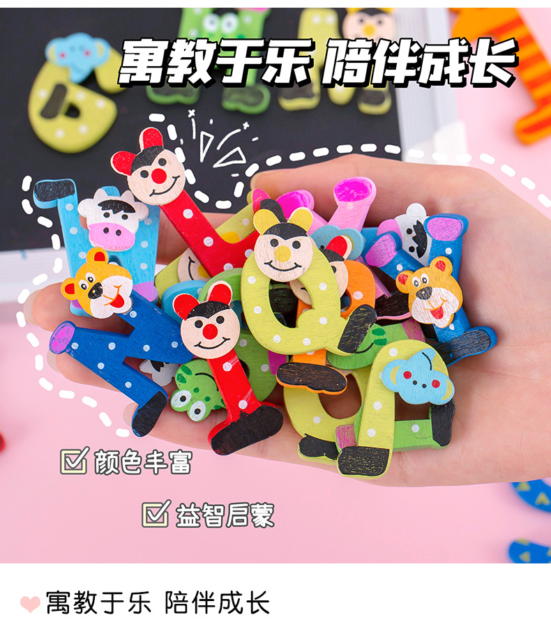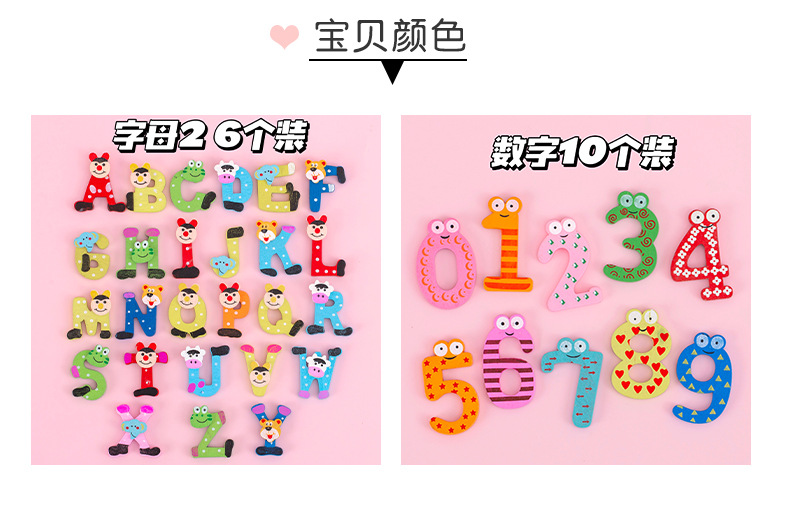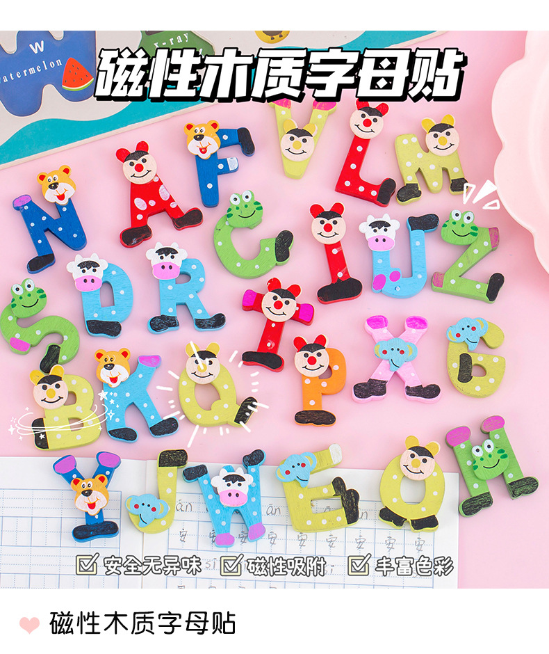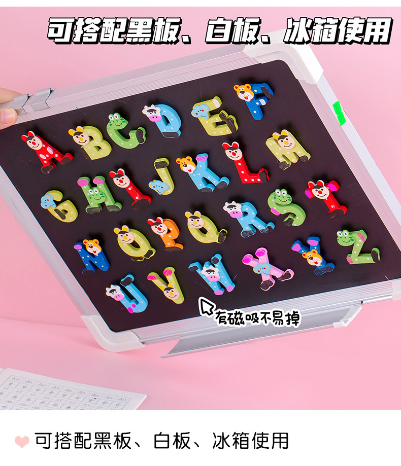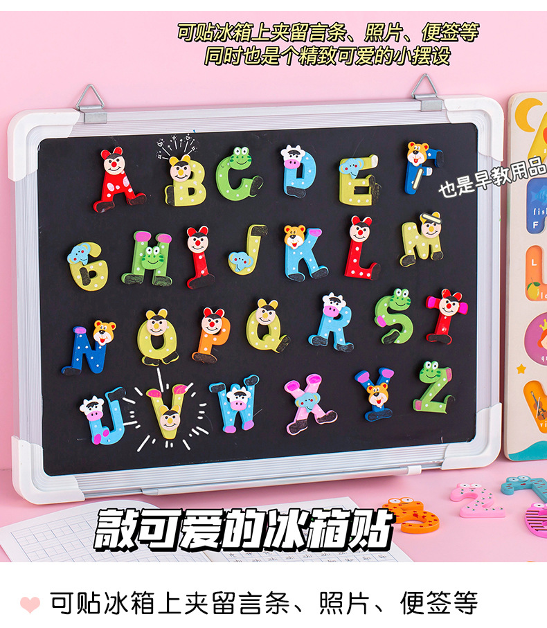彩色带磁铁木质大写字母冰箱贴卡通小写字母贴数字磁性黑板贴套装