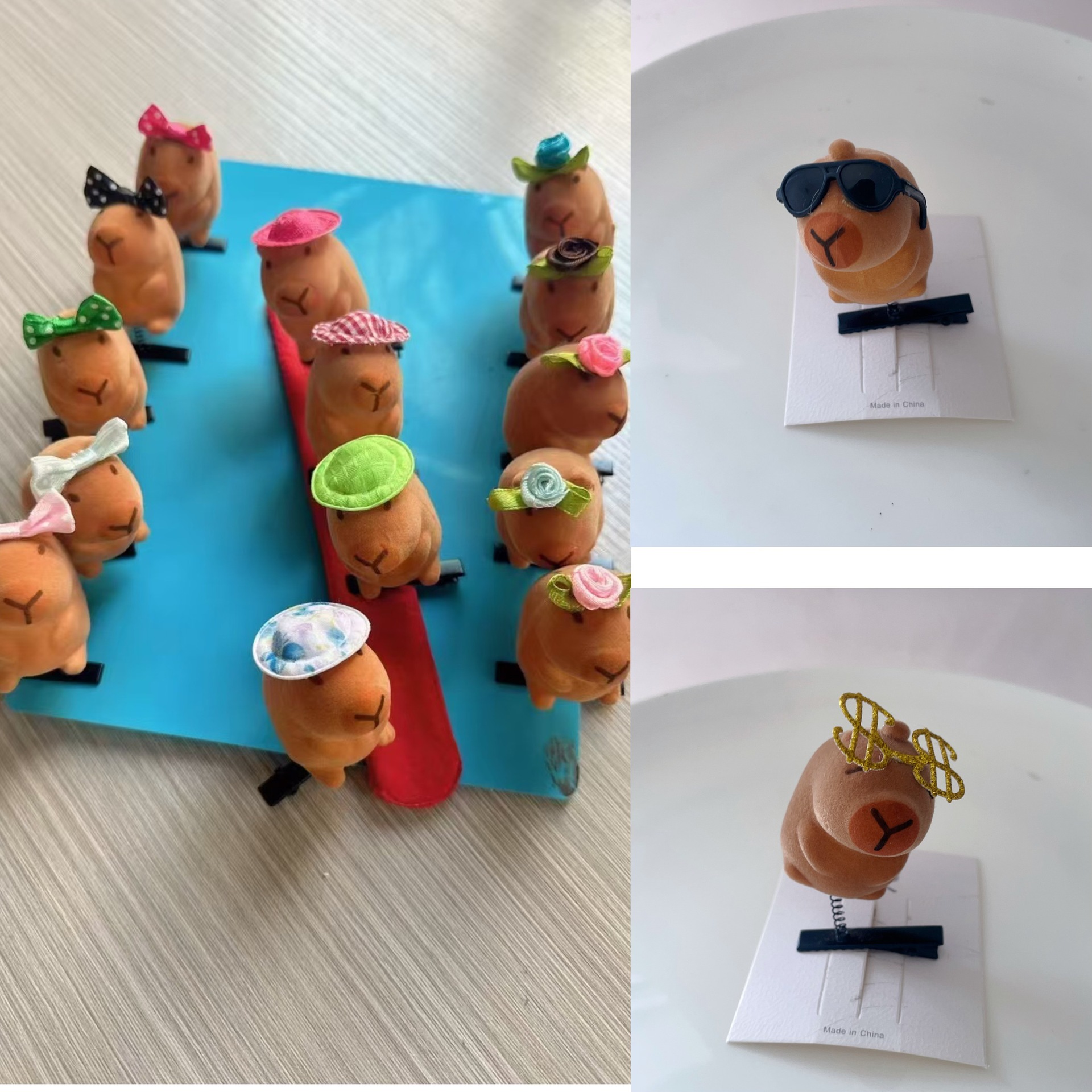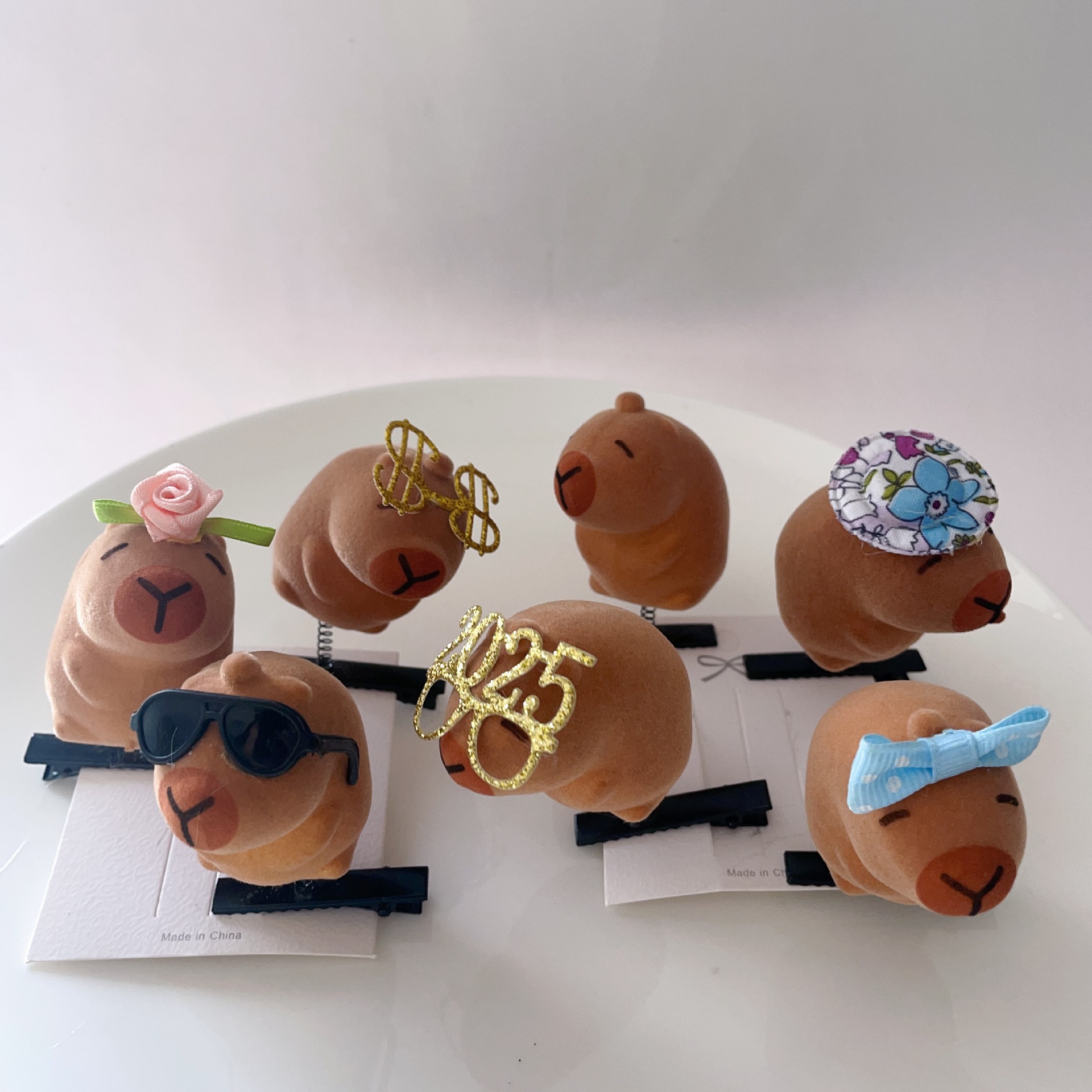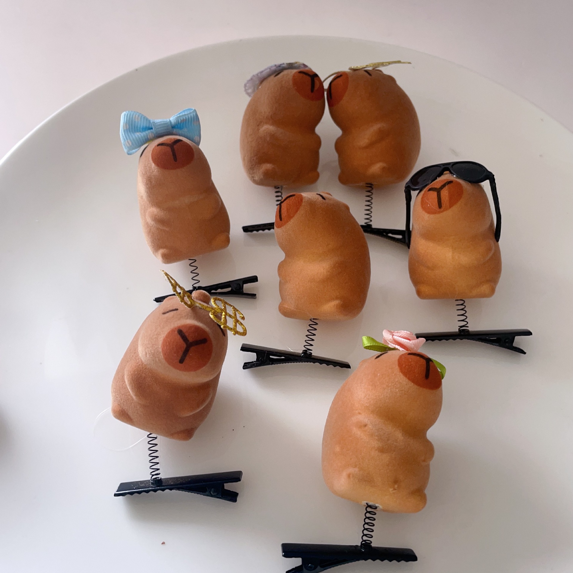 网络爆款卖萌神器卡皮巴拉立体弹簧发夹头饰可爱卡通玩具地摊礼品