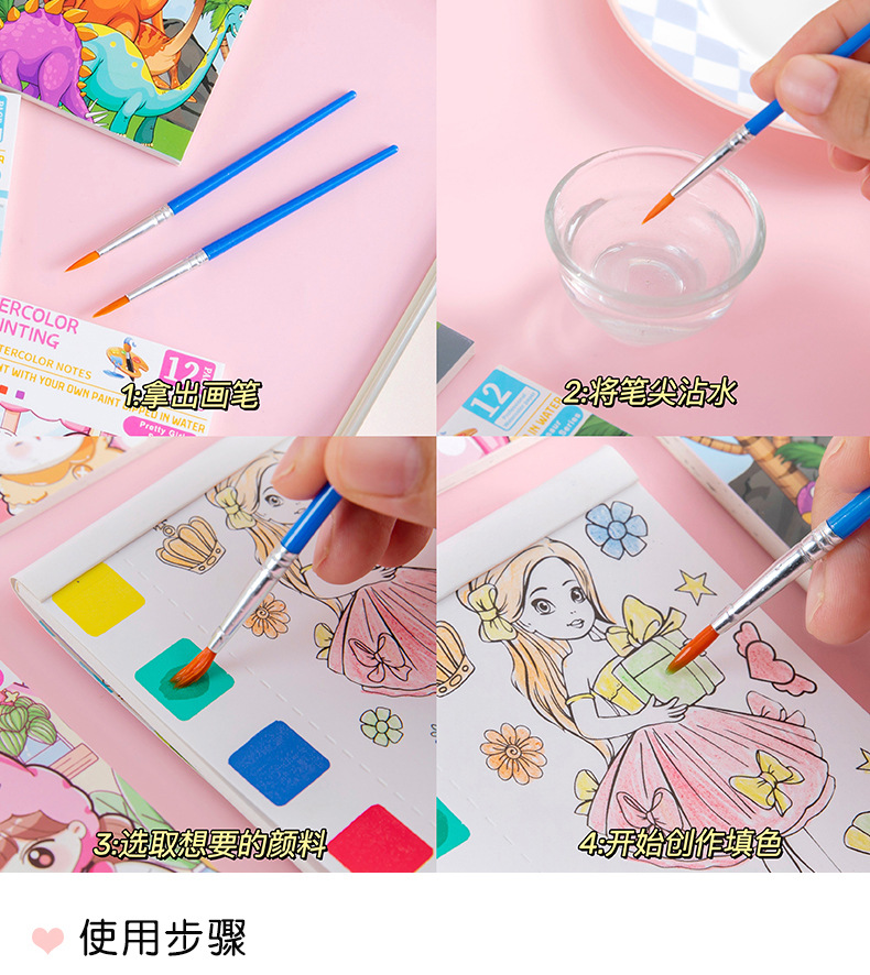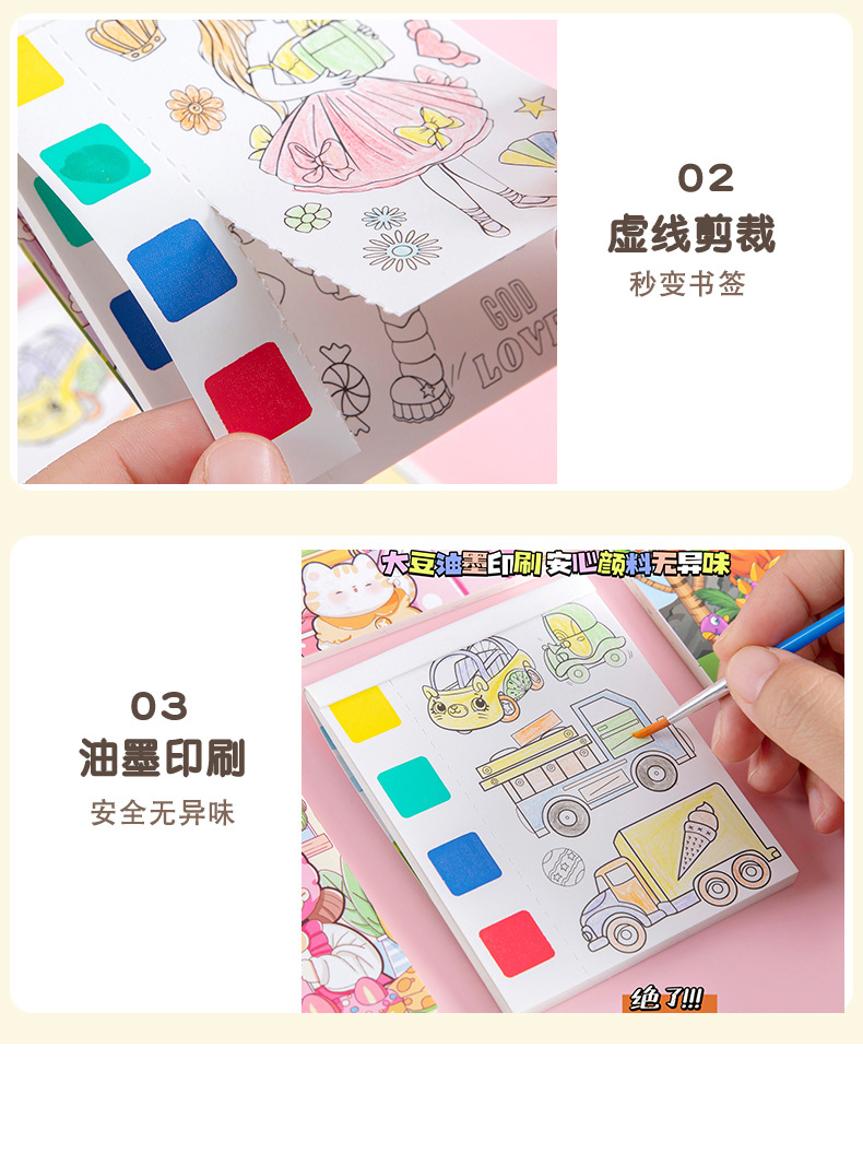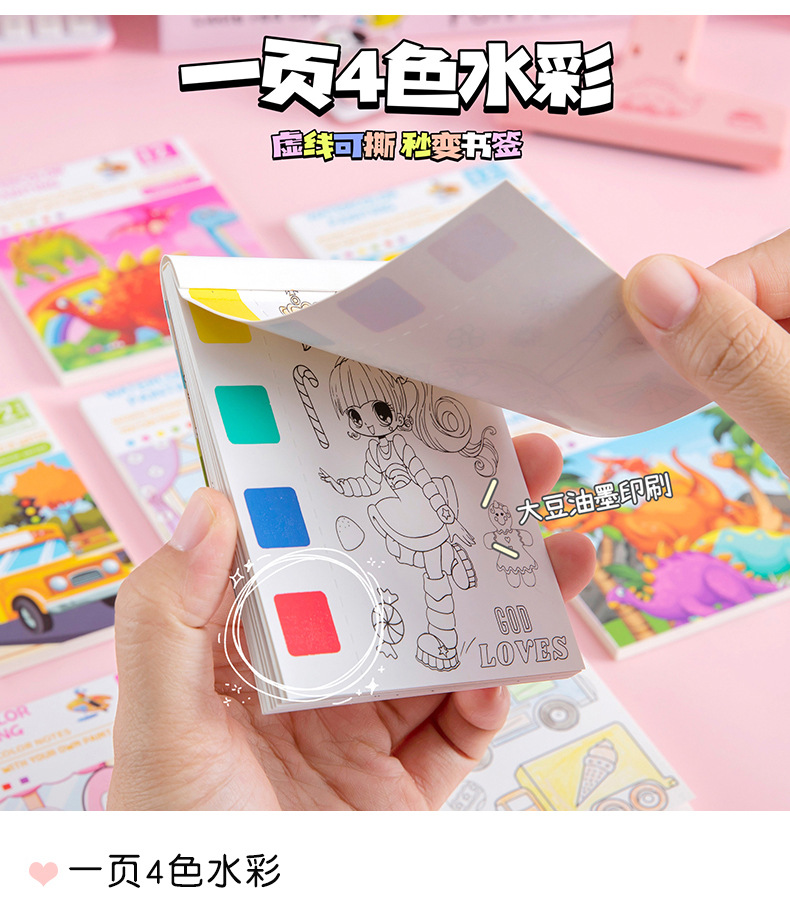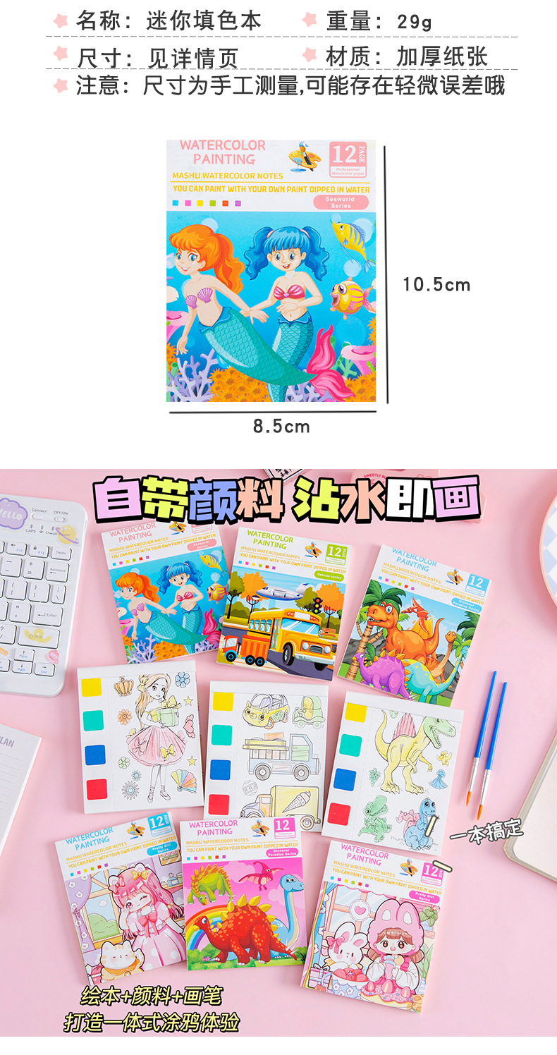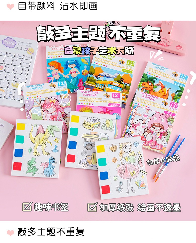 diy益智画画自带颜料手工填色玩具沾水 水彩便签涂鸦儿童绘画涂色