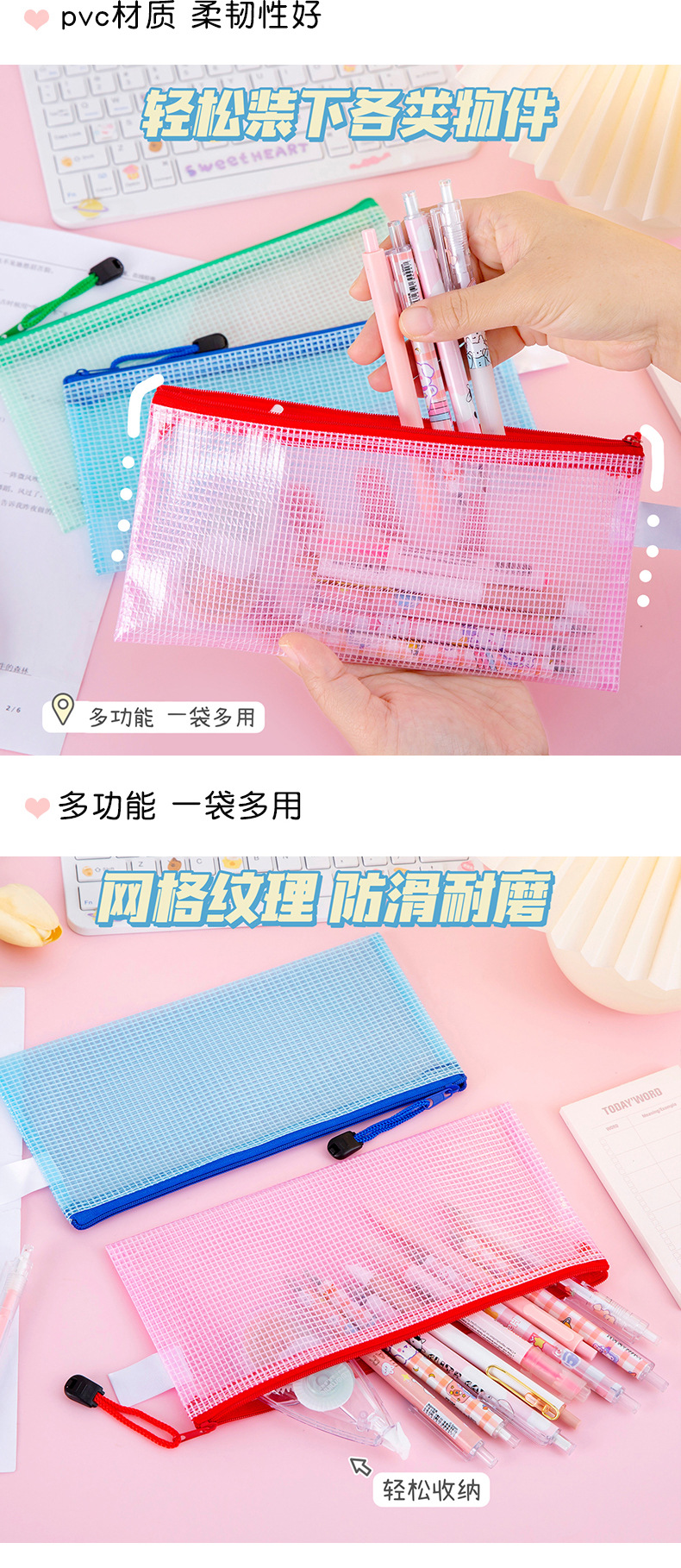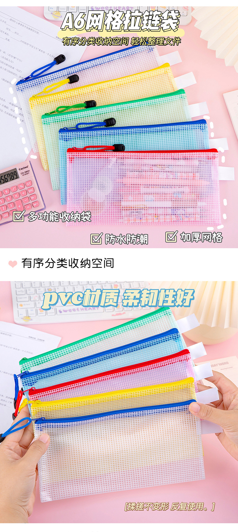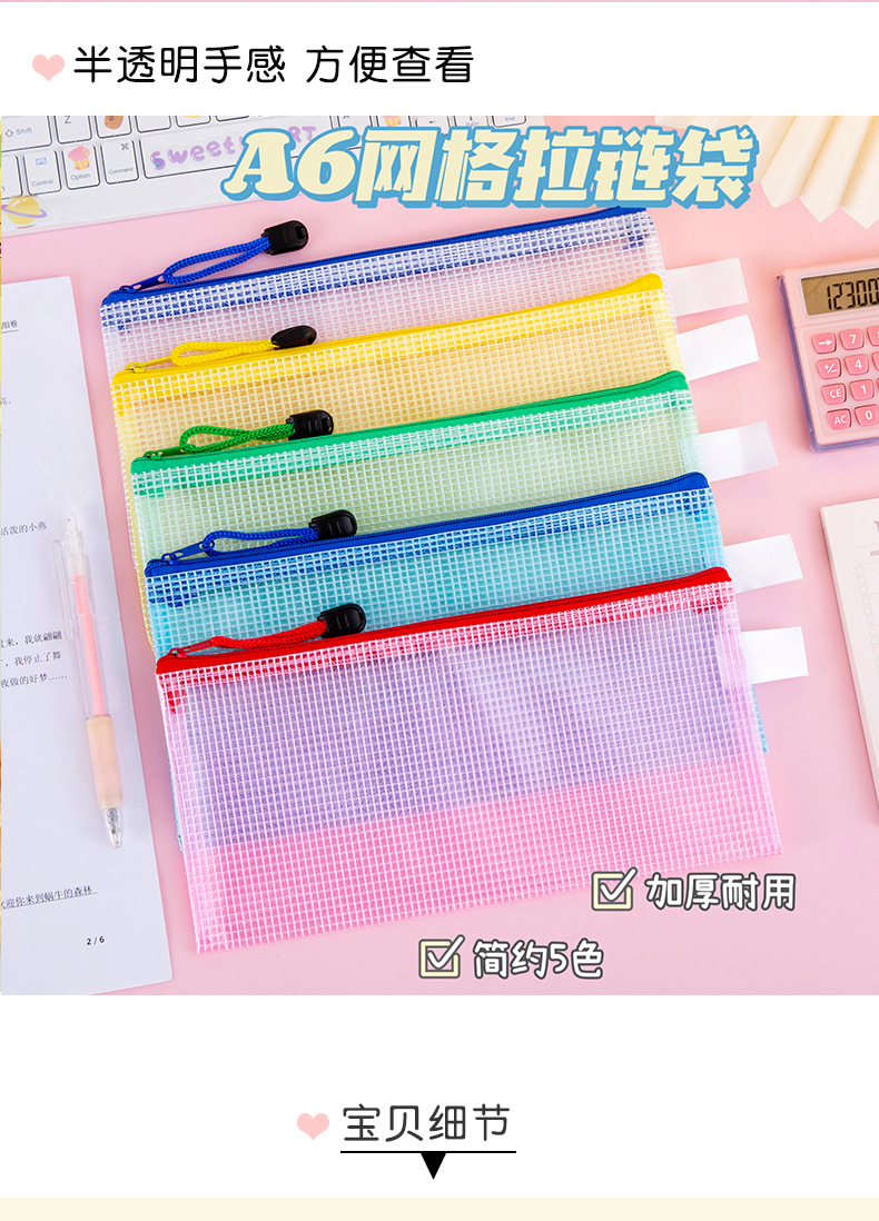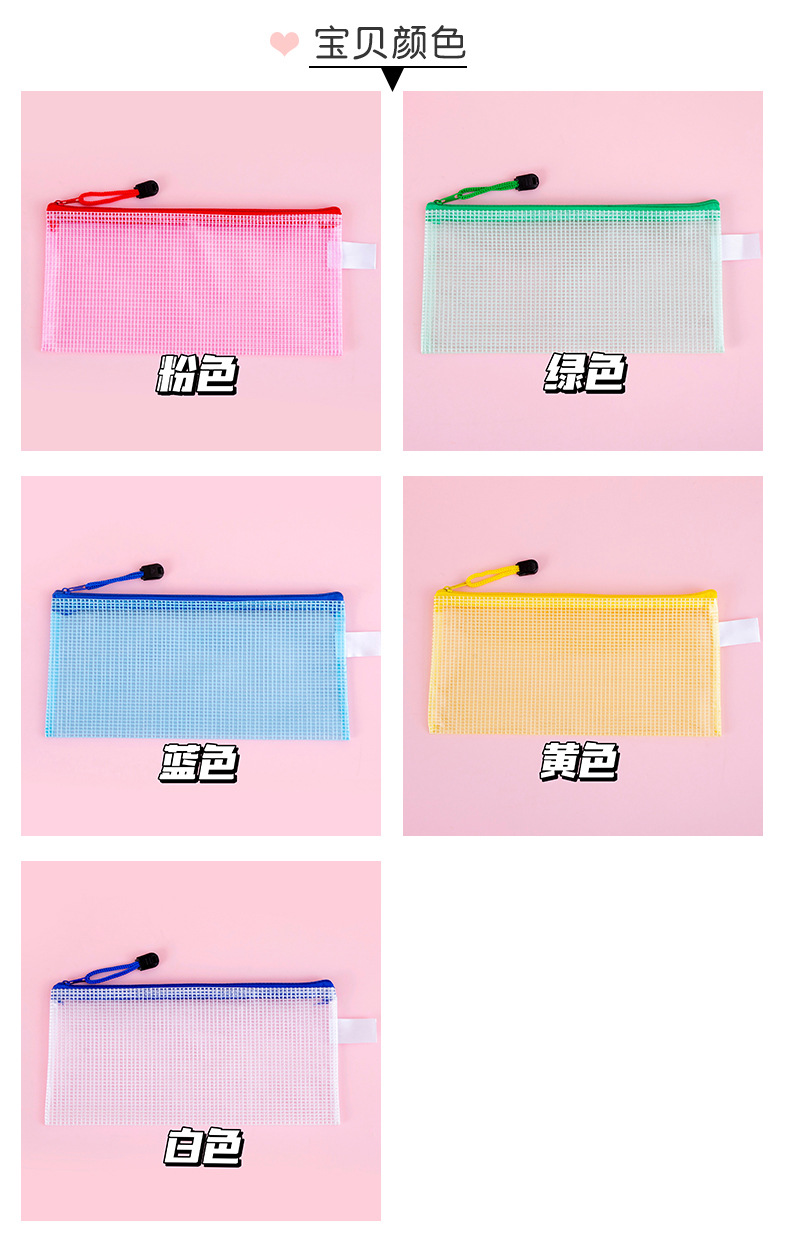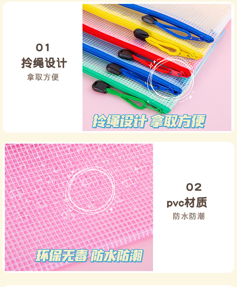 网格文件袋A4 办公透明收纳手提拉链袋学生资料袋文具批发印LOGO