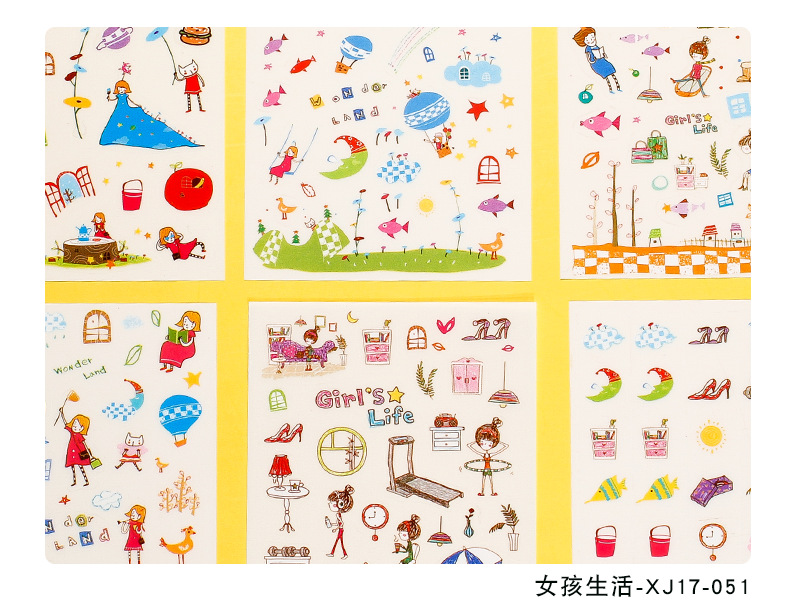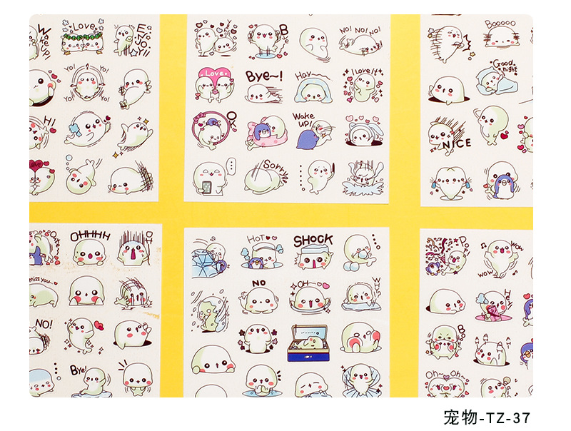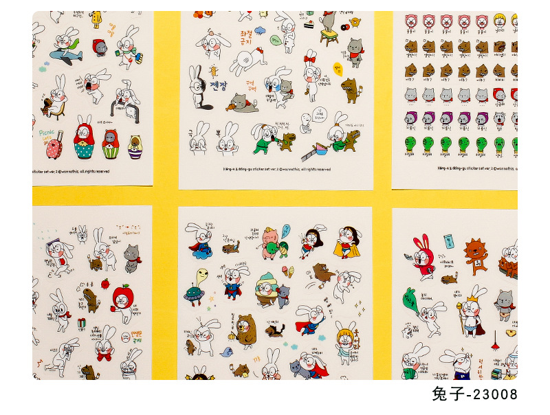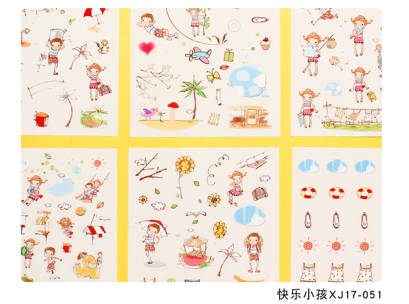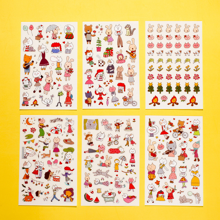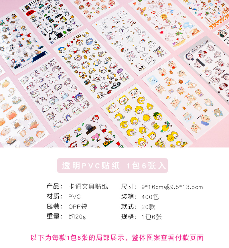 韩国文具贴纸 1包6张入透明PVC卡通学生儿童DIY笔记本手账装饰贴