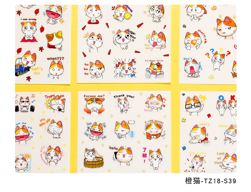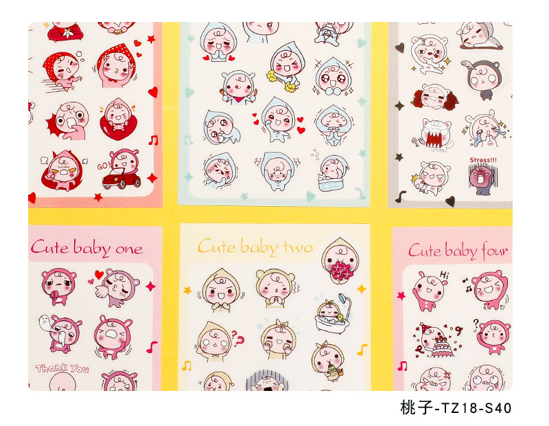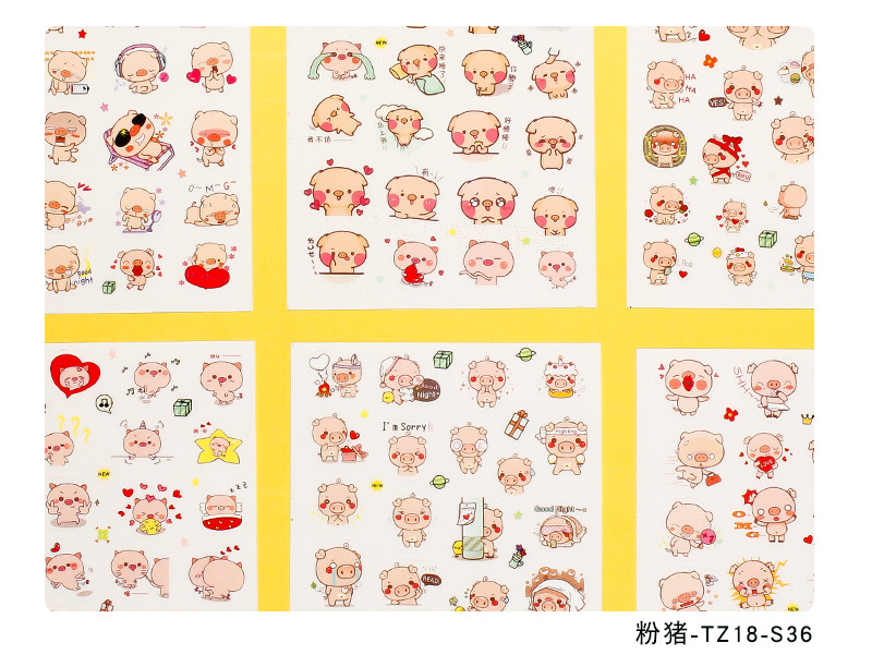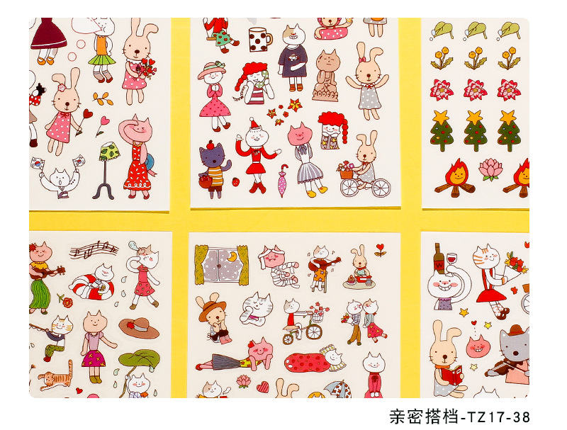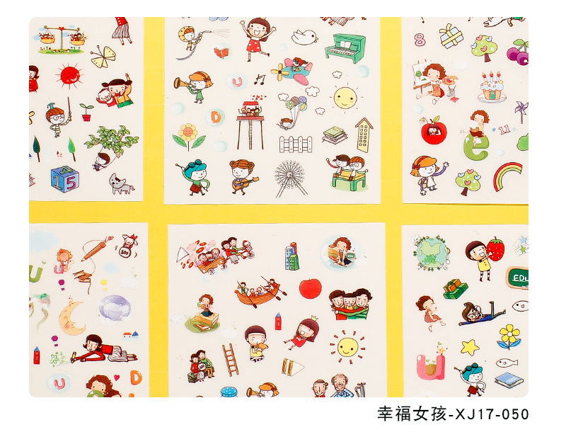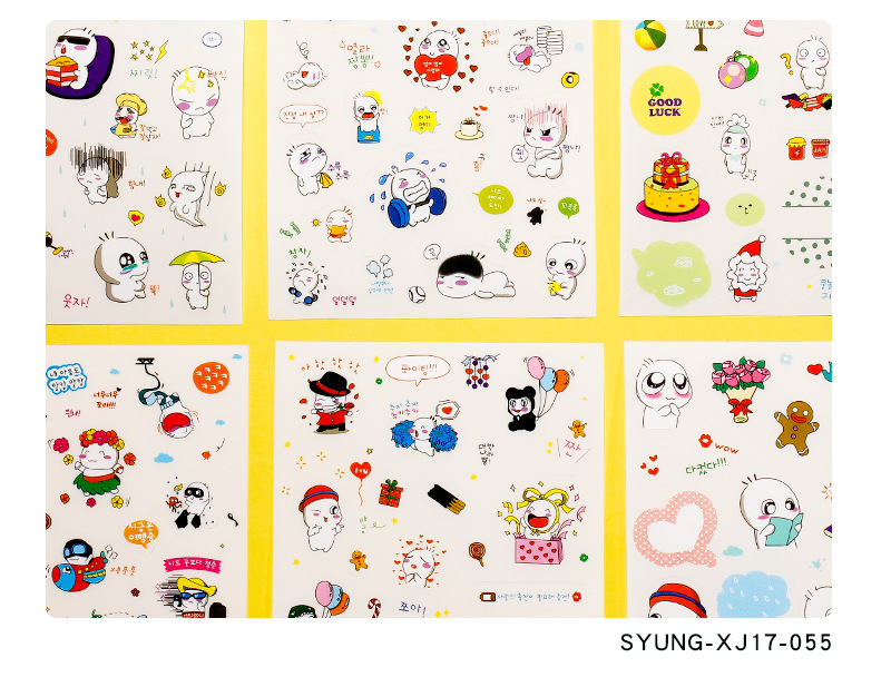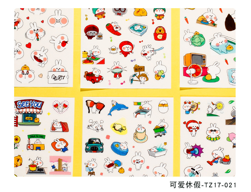 韩国文具贴纸 1包6张入透明PVC卡通学生儿童DIY笔记本手账装饰贴
