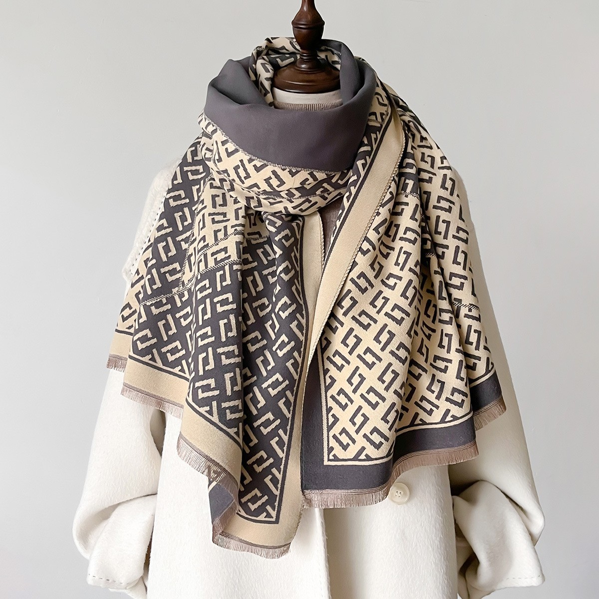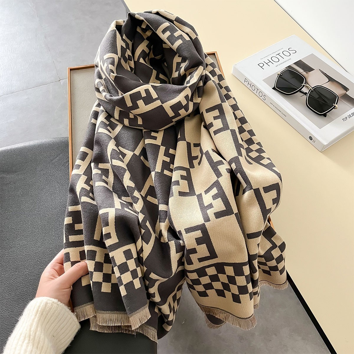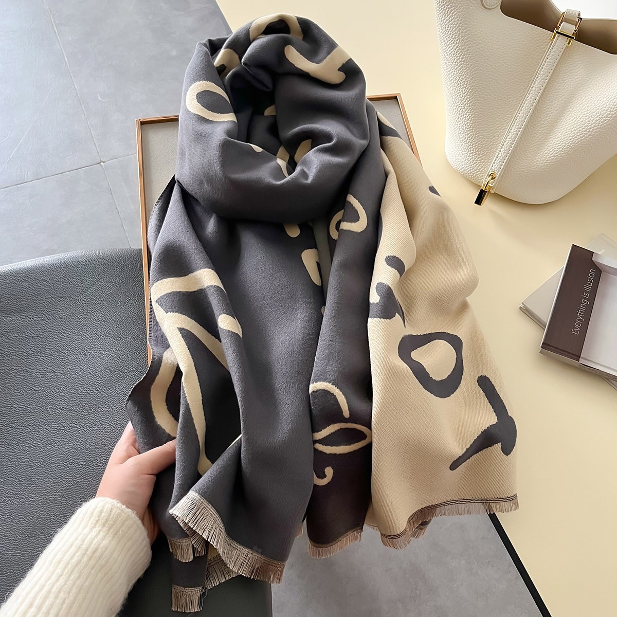 围巾女秋冬季韩版百搭气质双面加厚高级感仿羊绒两用学生围脖披肩