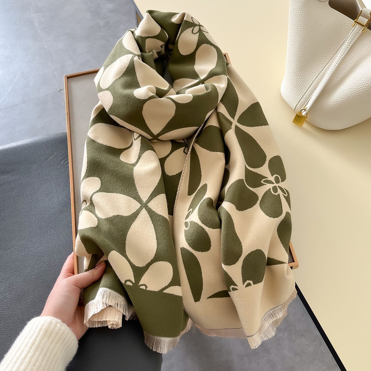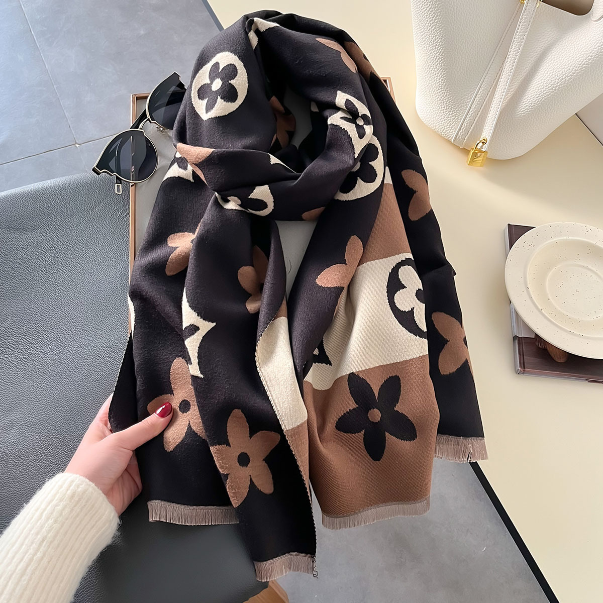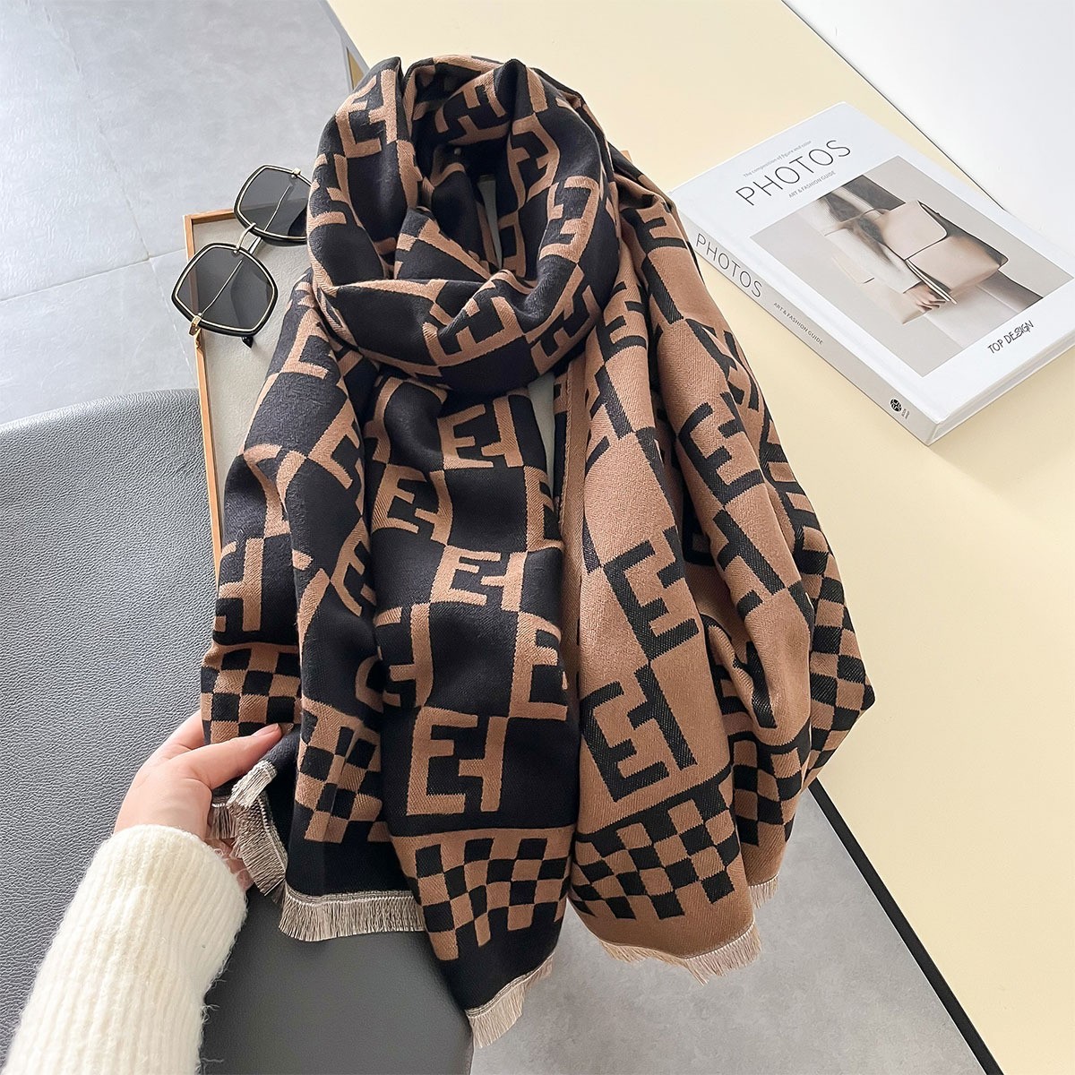 围巾女秋冬季韩版百搭气质双面加厚高级感仿羊绒两用学生围脖披肩