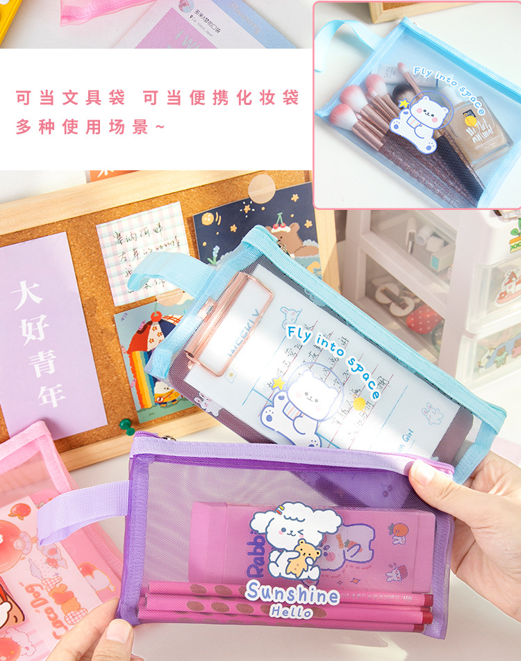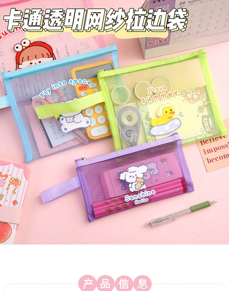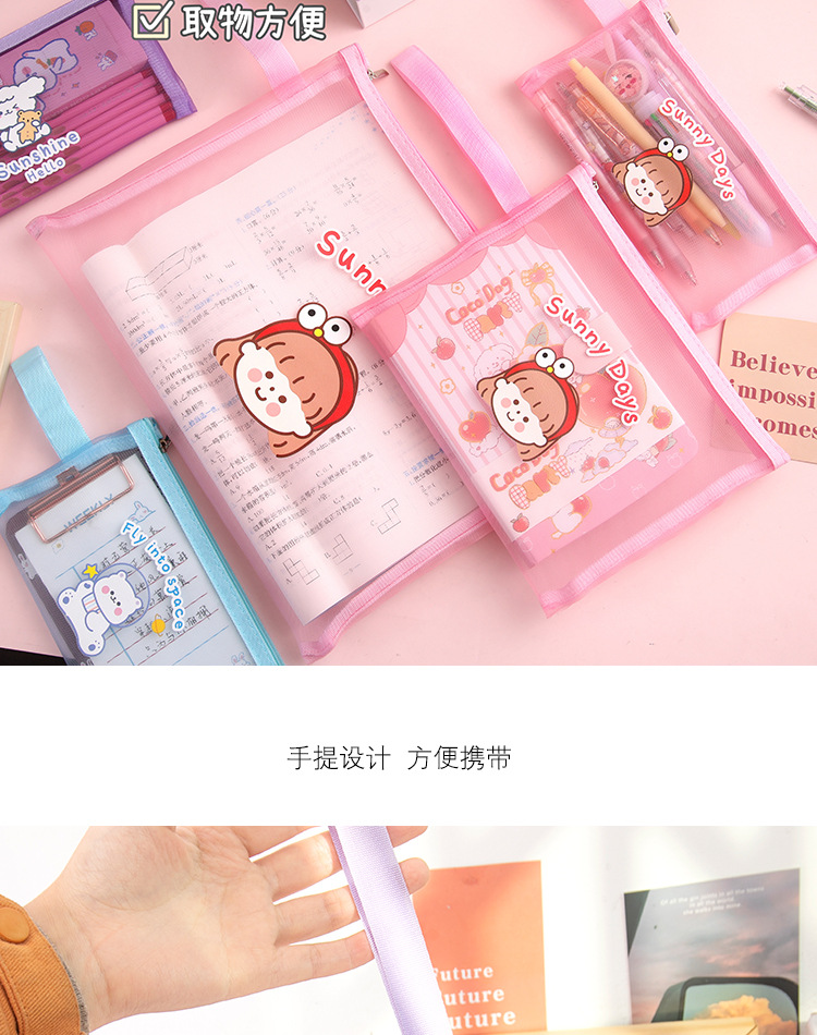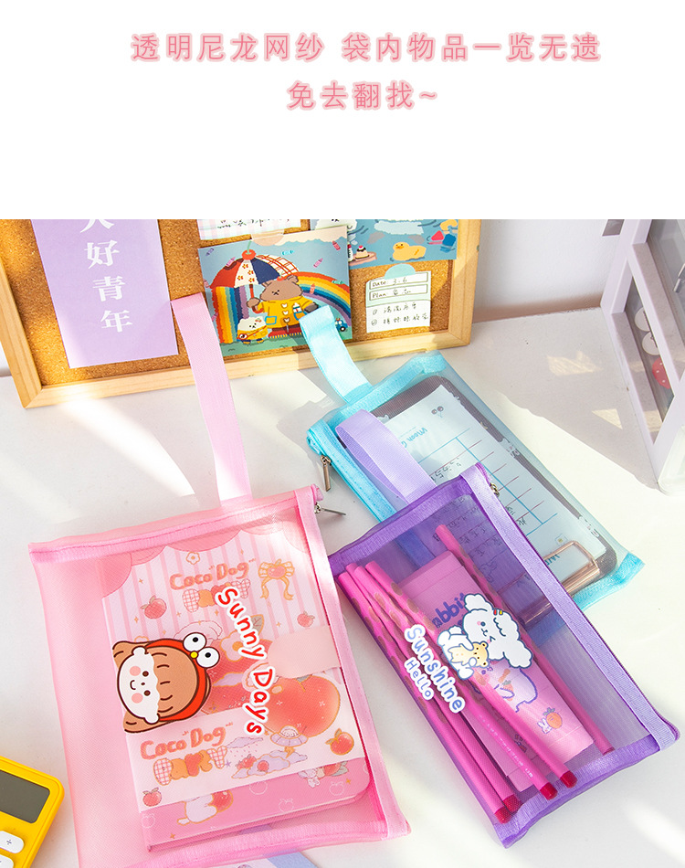科目分类大容量网纱文件袋小黄鸭创意学生A4补习袋分类拉链收纳袋